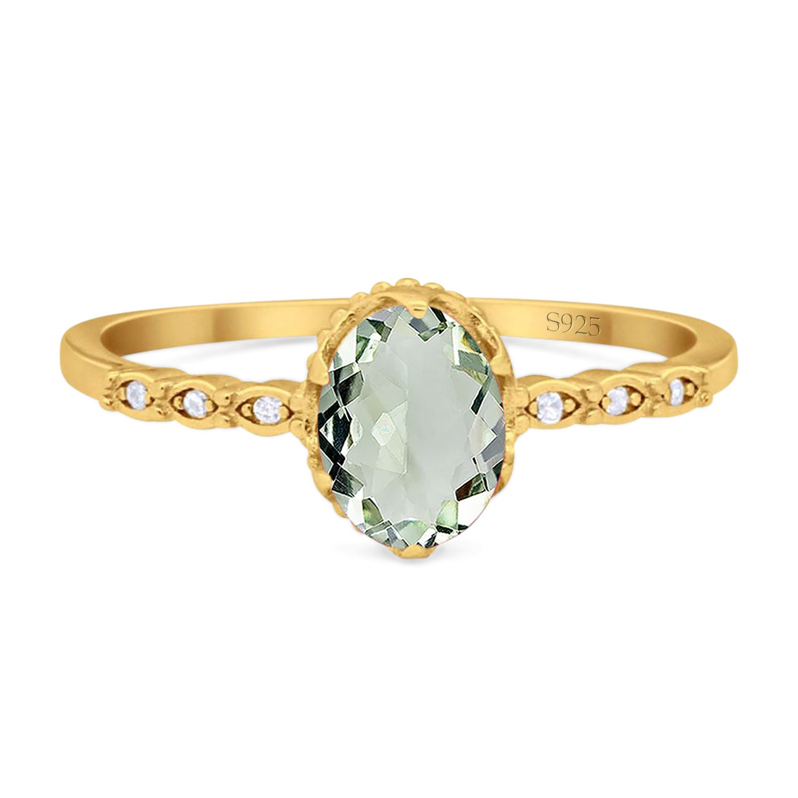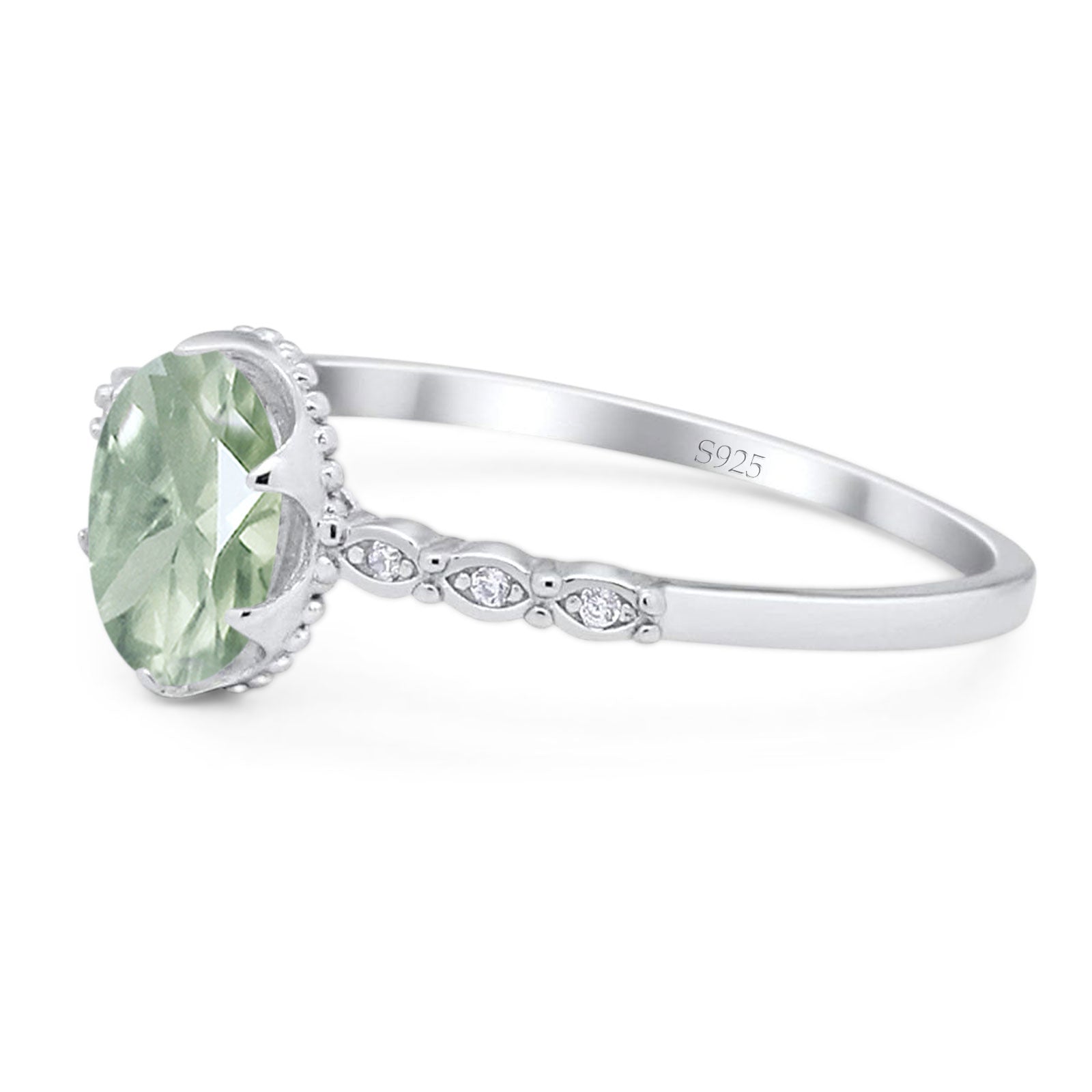 Natural Green Amethyst Prasiolite Engagement Ring