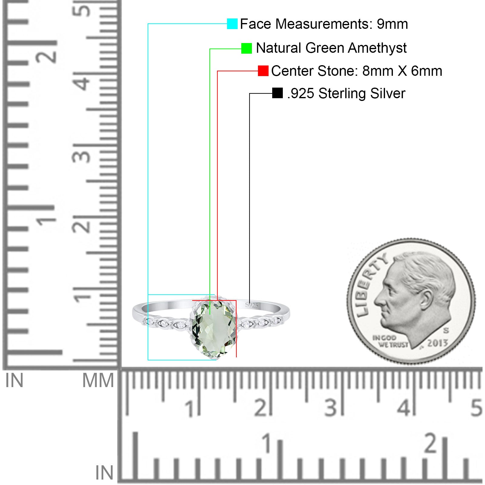 Center Stone Measurements: 8mmx6mm.