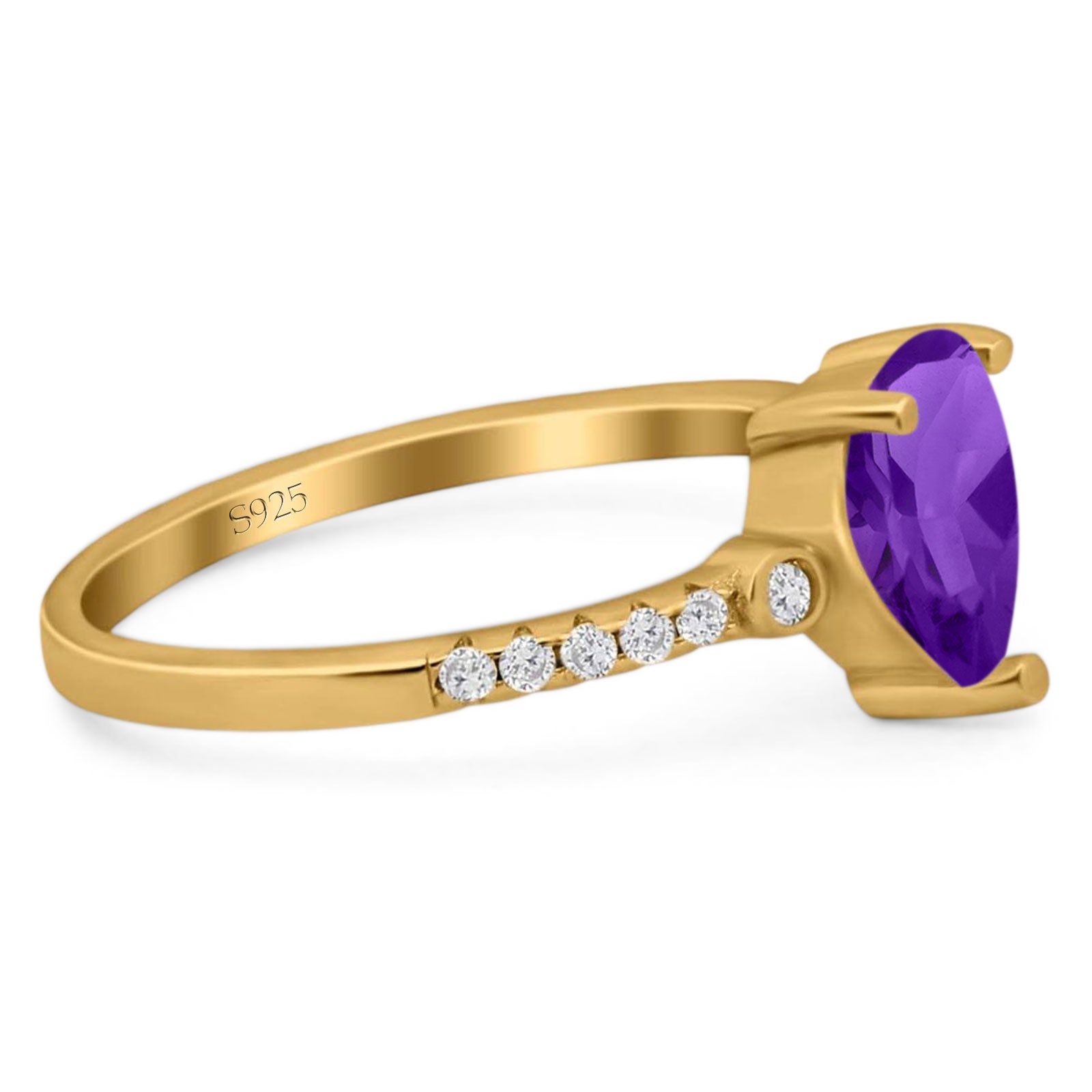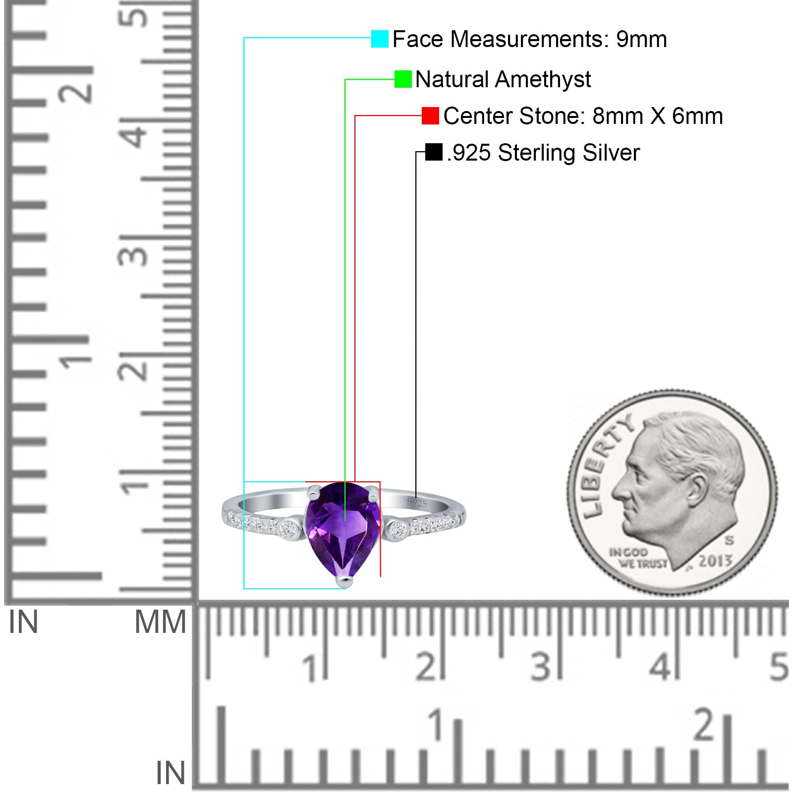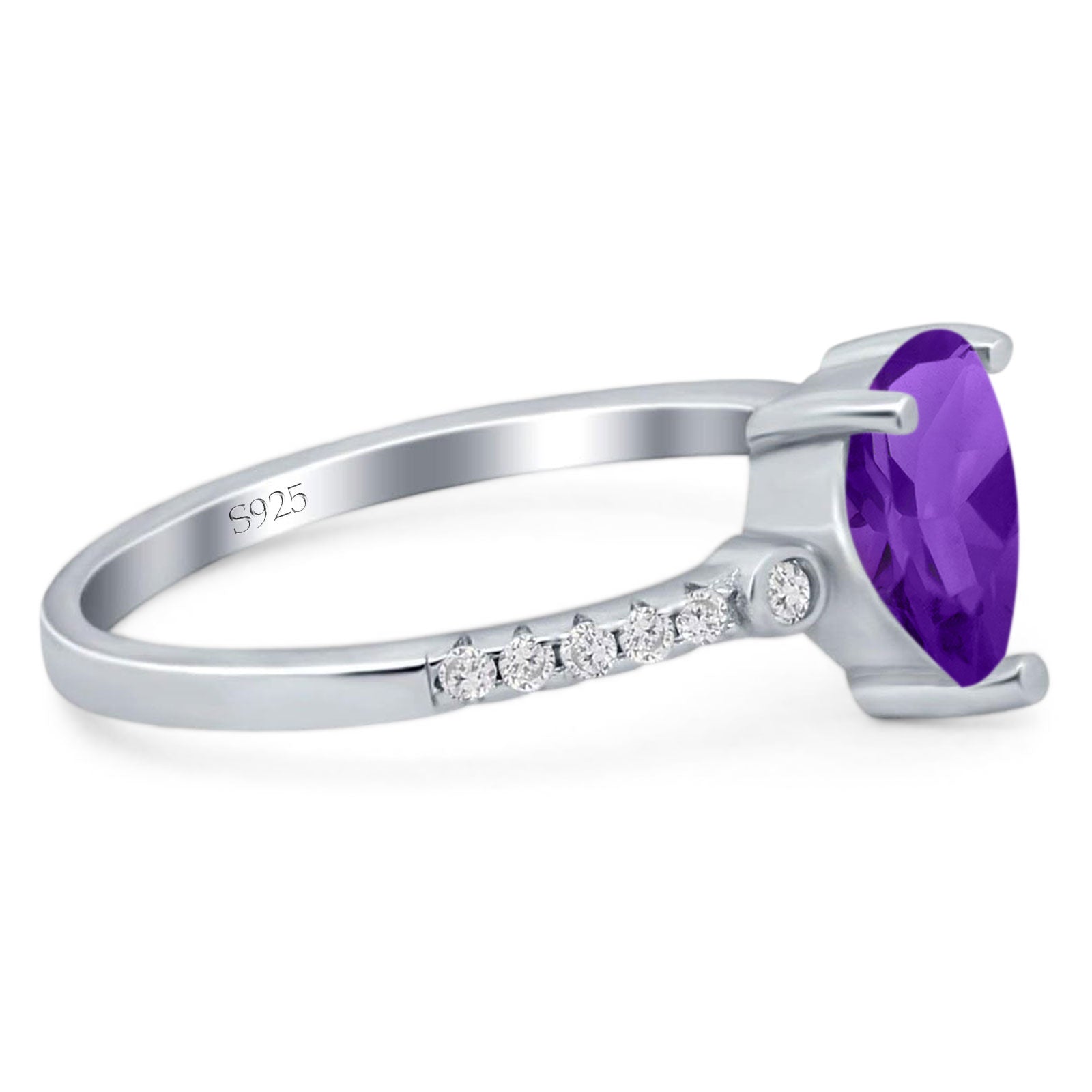 Vintage Style Pear Teardrop Natural Amethyst Wedding Ring 925 Sterling Silver