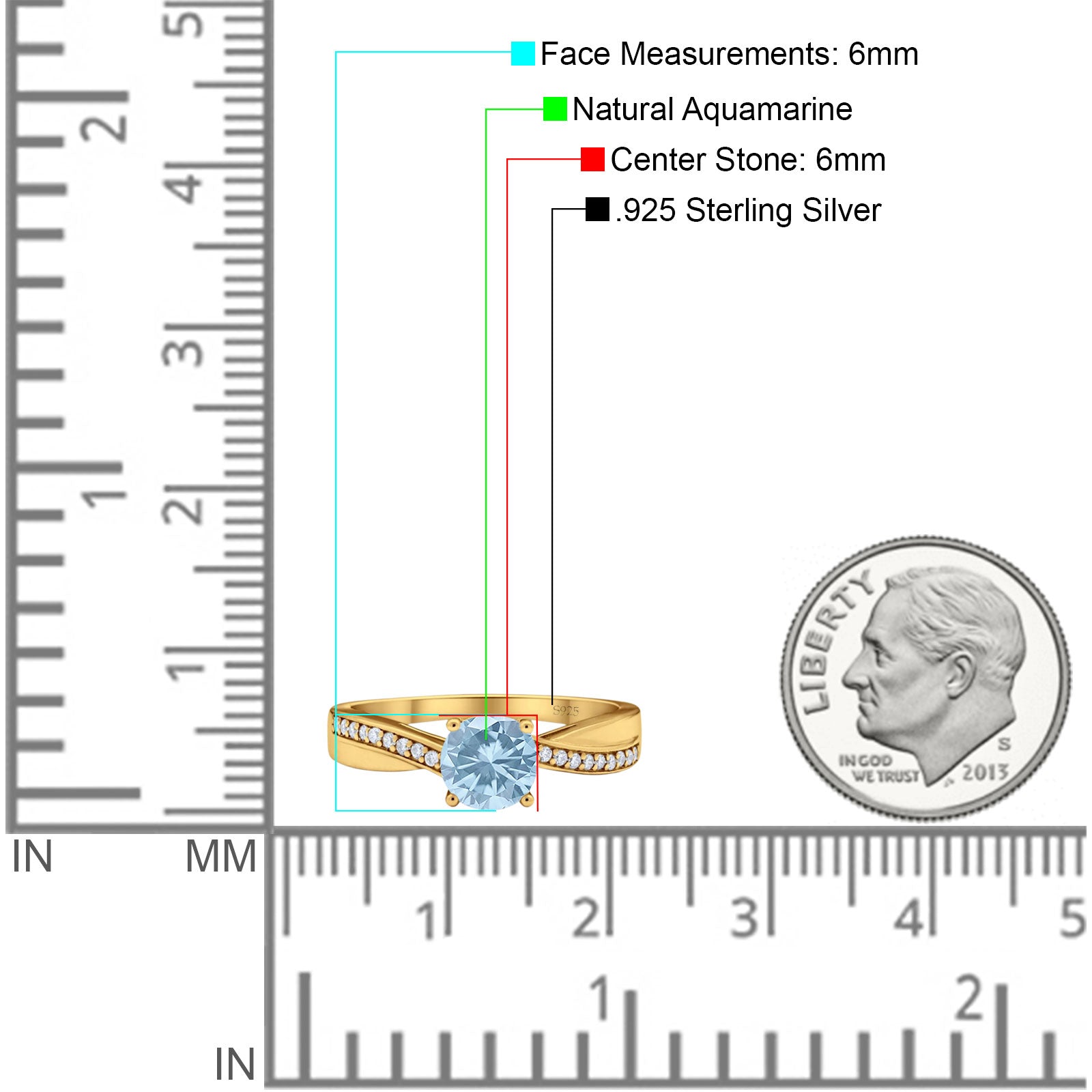 Vintage Style Round Natural Aquamarine Twisted Ring 925 Sterling Silver