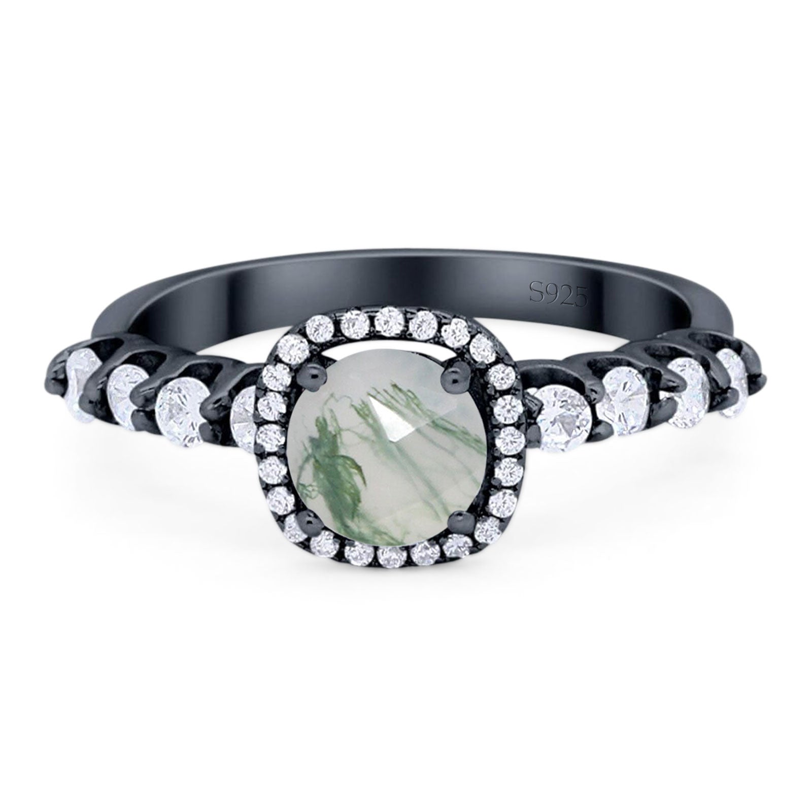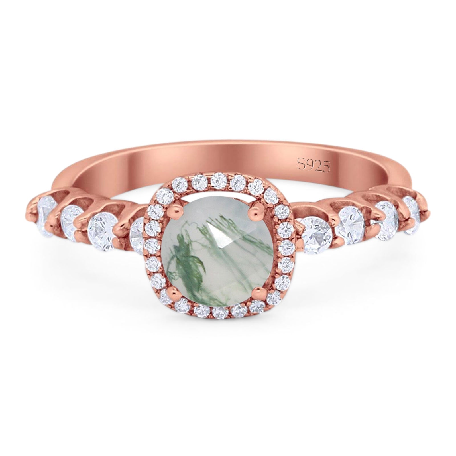 Natural Green Moss Agate Engagement Ring
