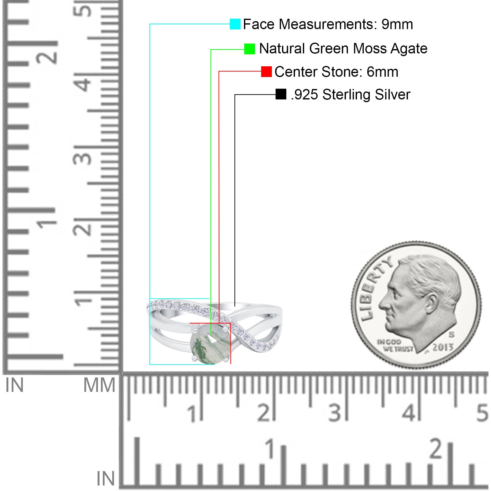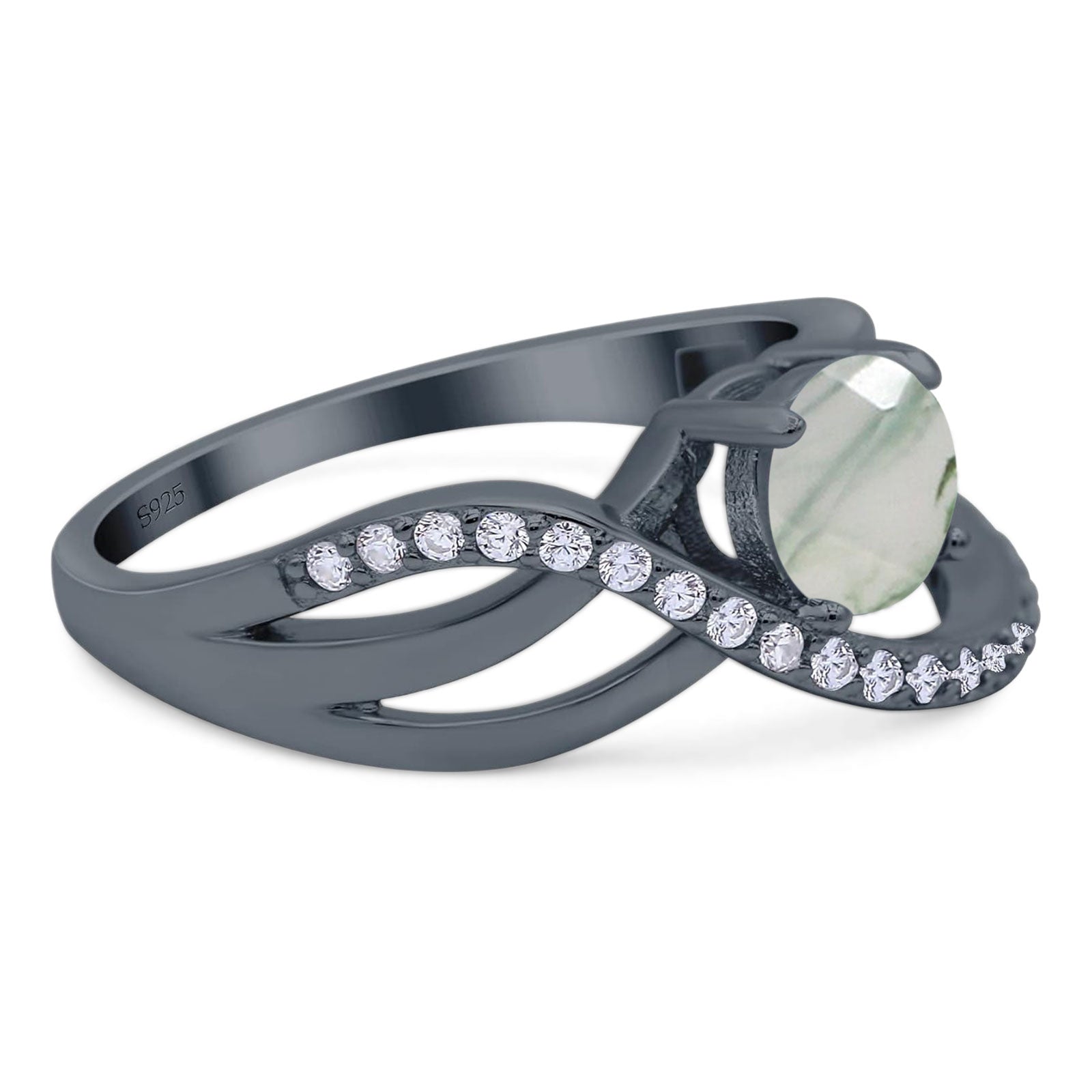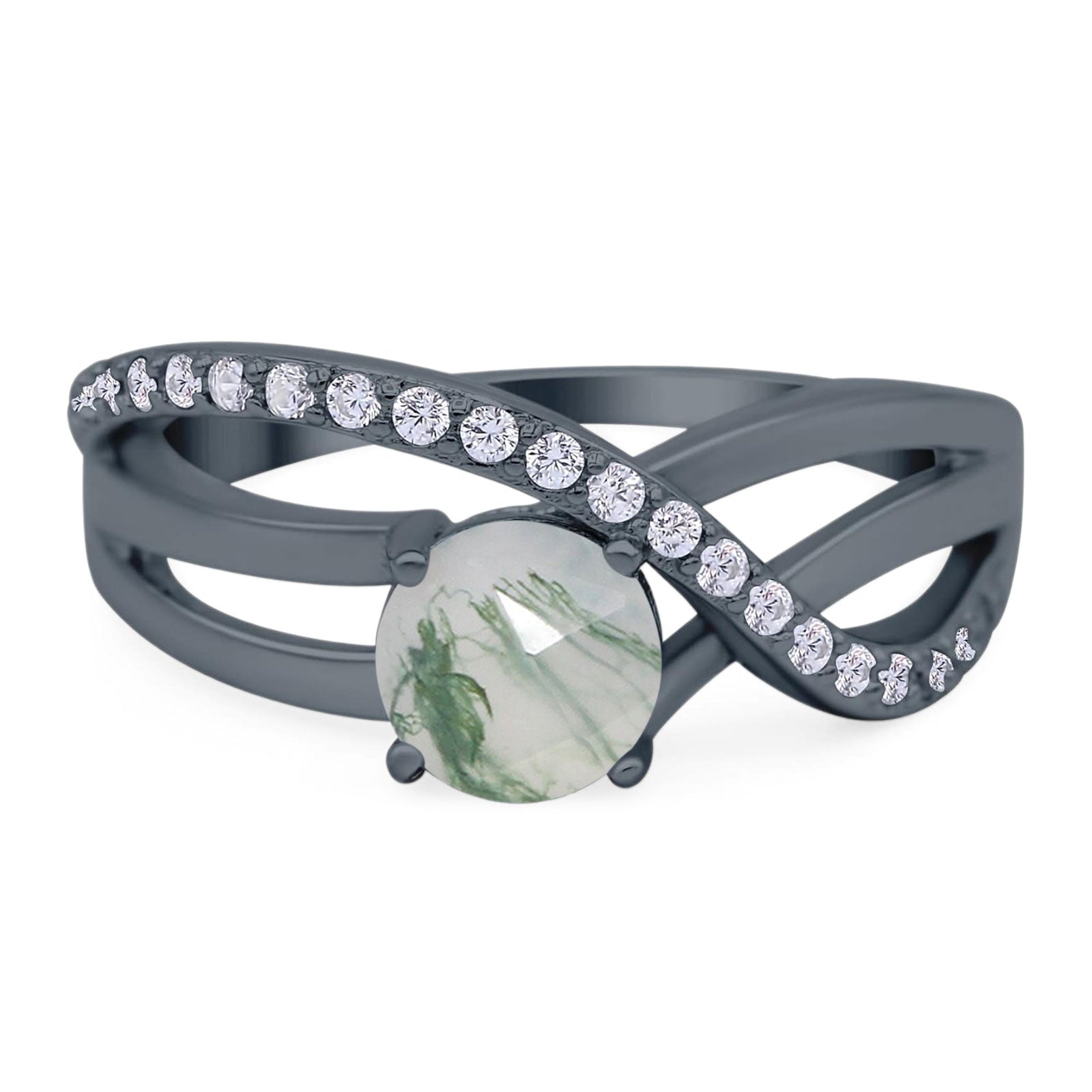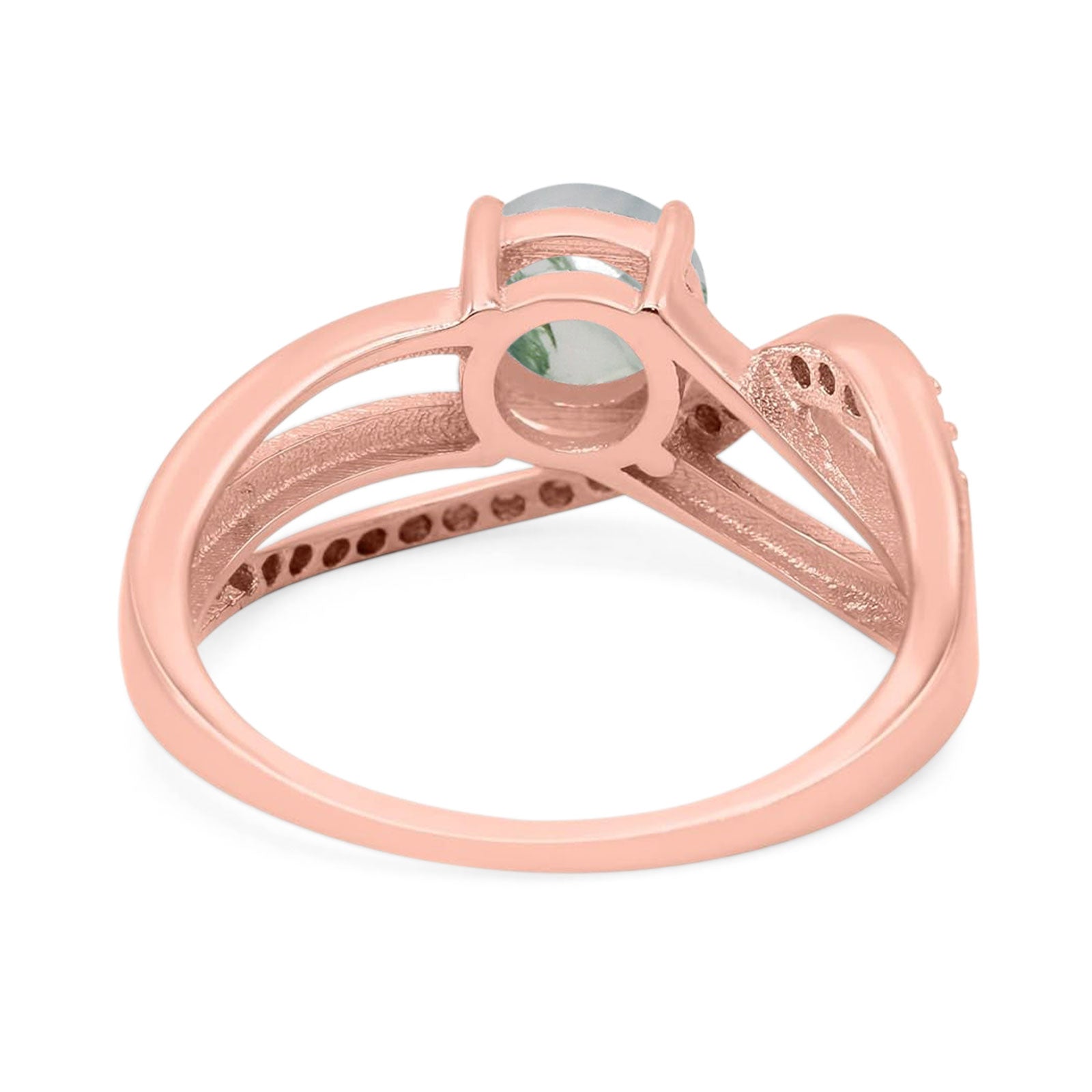 Vintage Style Round Natural Green Moss Agate Twisted Ring 925 Sterling Silver