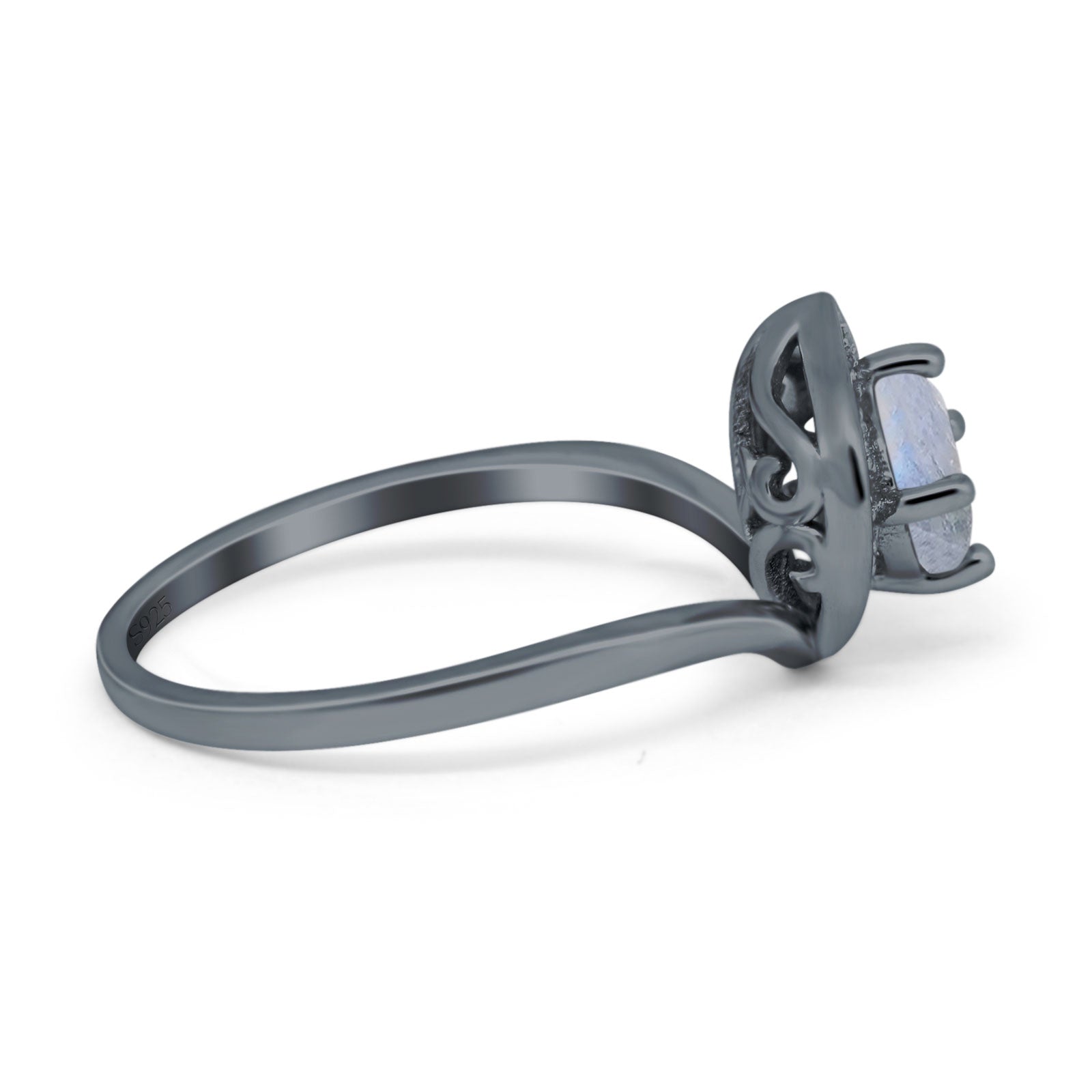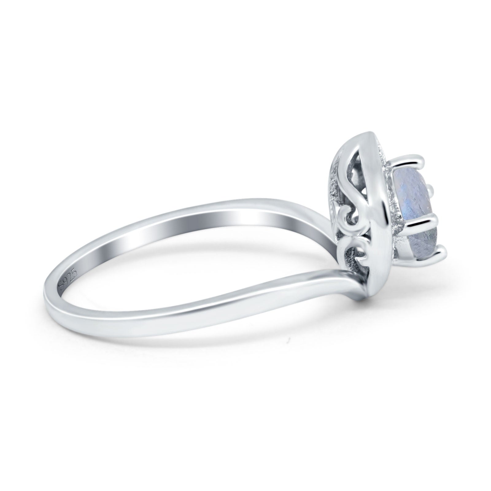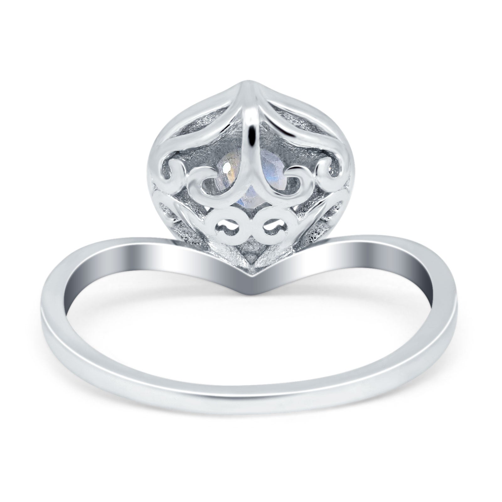Minimalist 8mm Lab Created White Opal Heart Ring 925 Sterling Silver