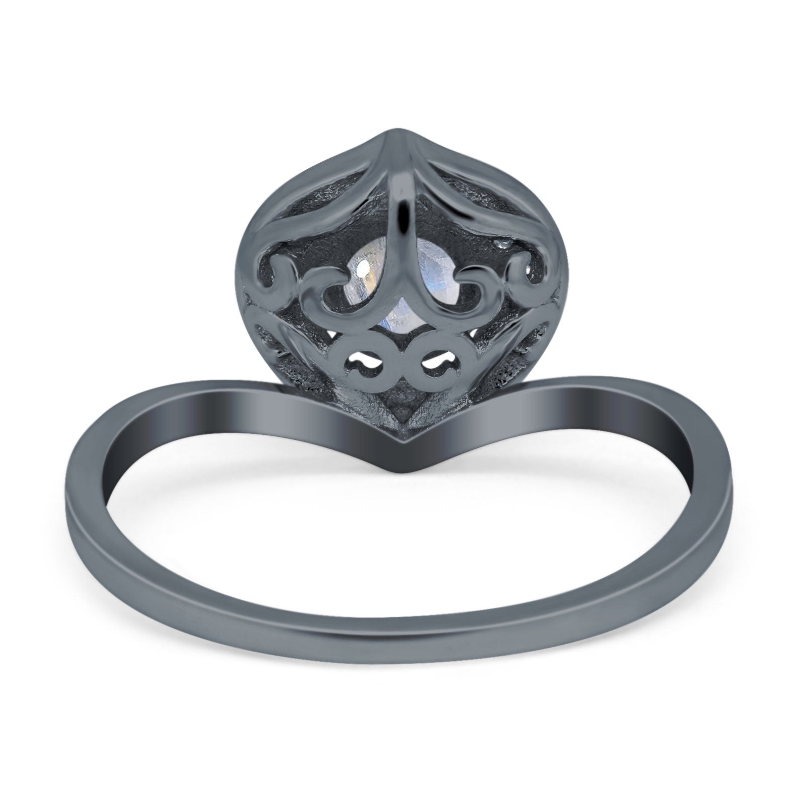 Minimalist 8mm Black Onyx Heart Ring 925 Sterling Silver