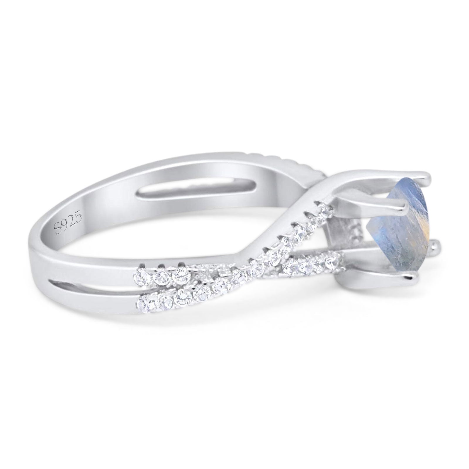 Minimalist 8mm Lab Created White Opal Heart Ring 925 Sterling Silver