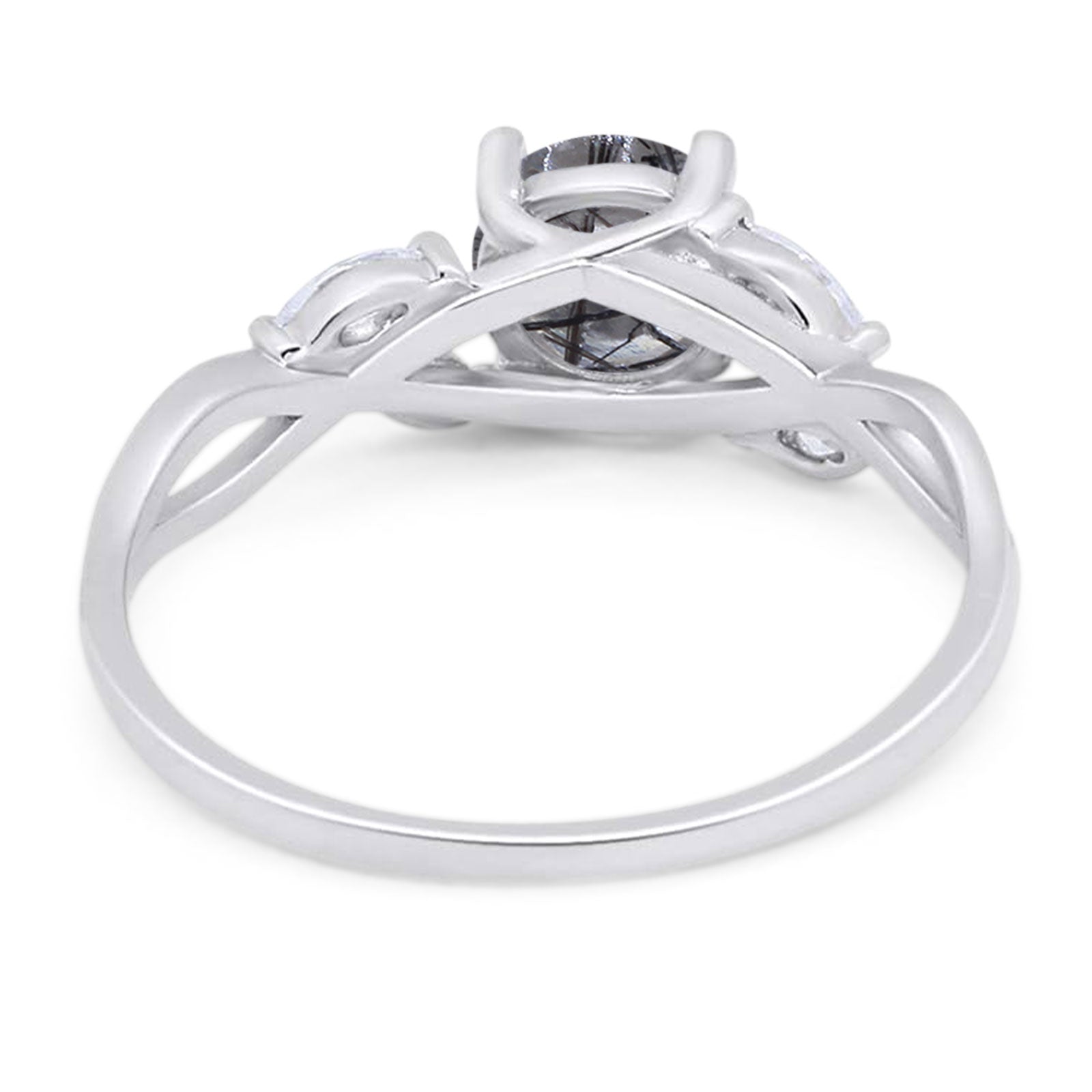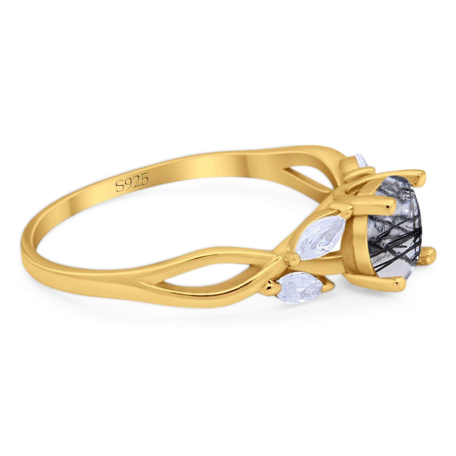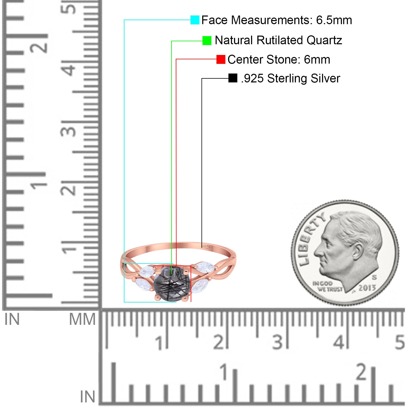 Vintage Style Round Natural Rutilated Quartz Twisted Ring 925 Sterling Silver