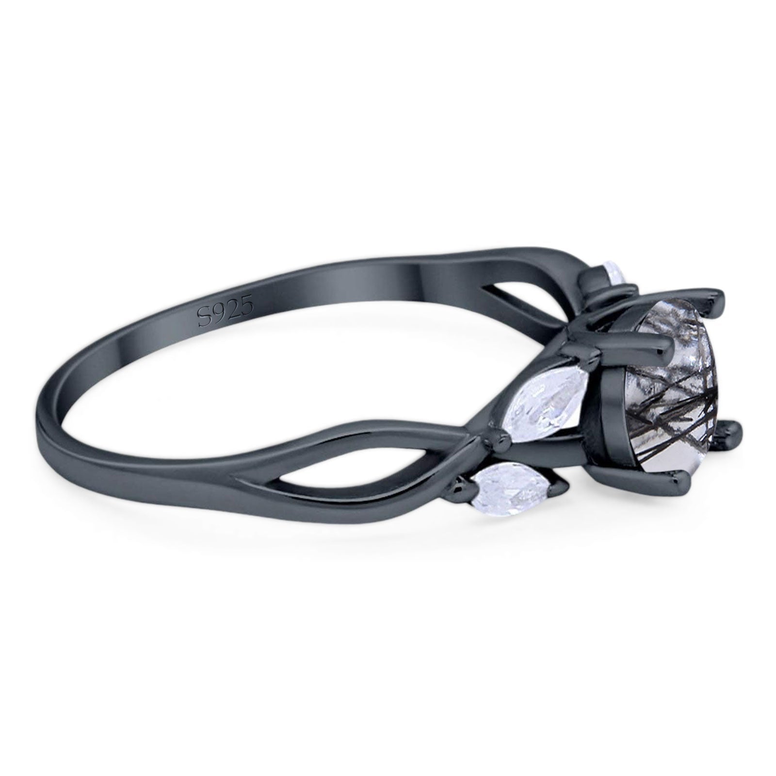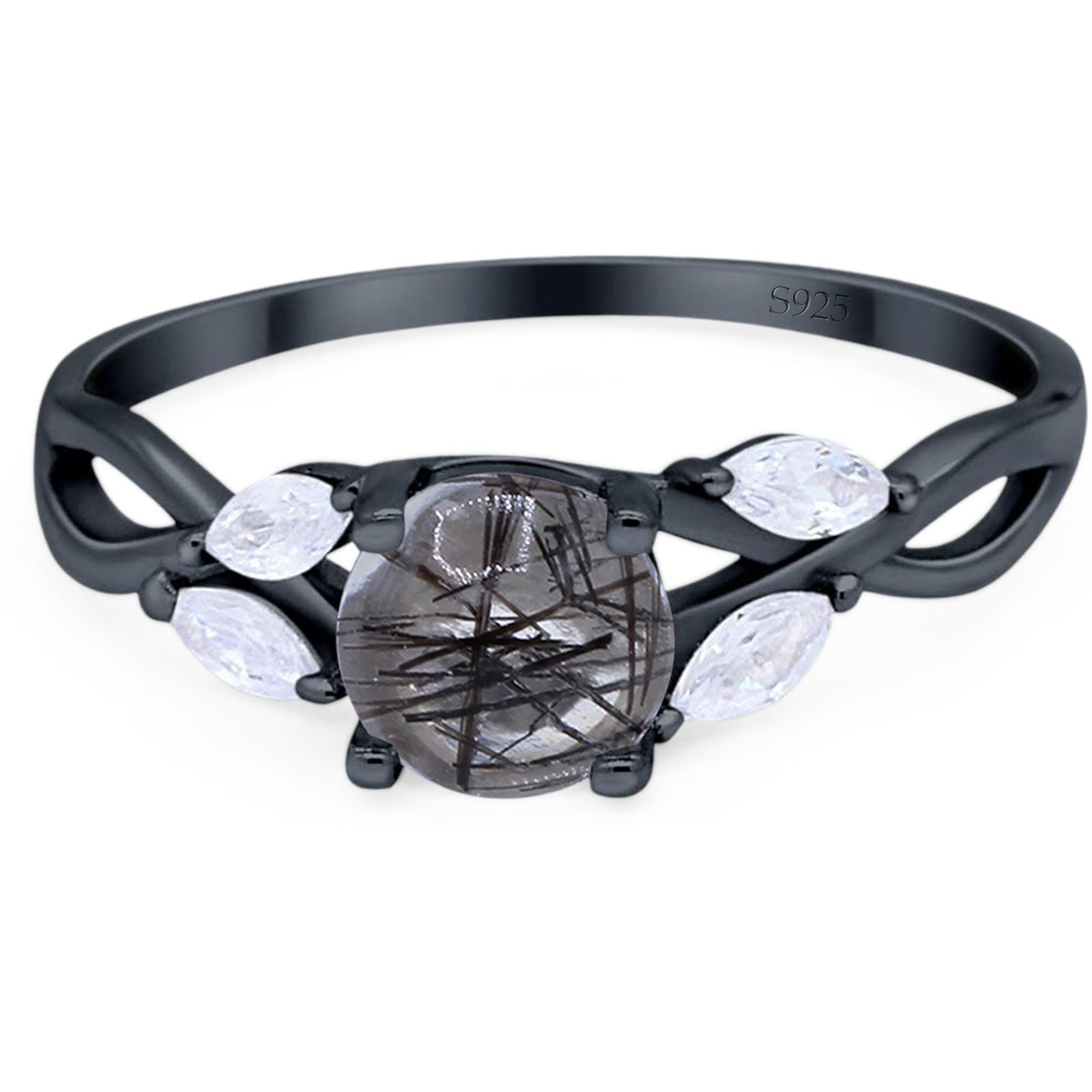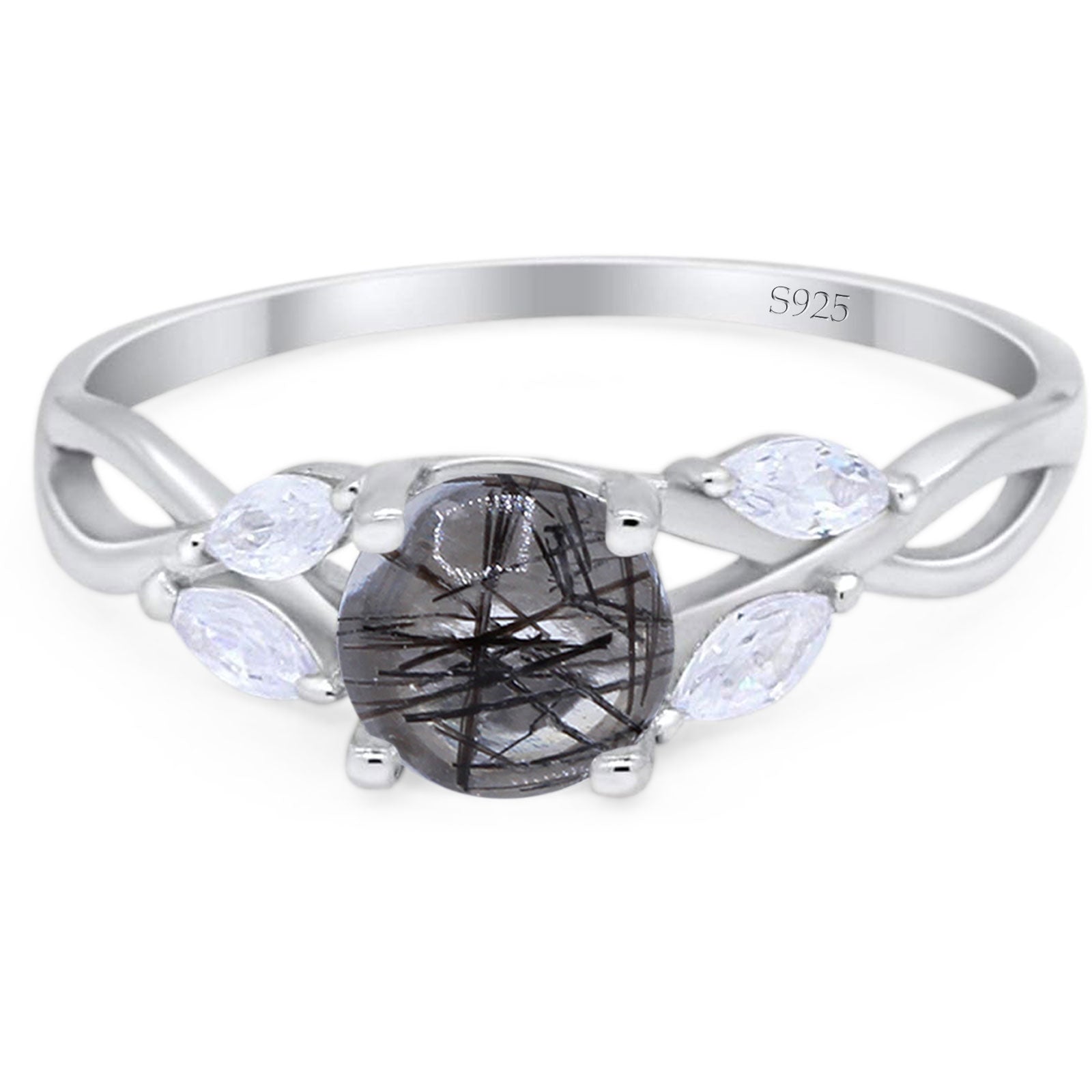 Vintage Style Round Natural Rutilated Quartz Twisted Ring 925 Sterling Silver
