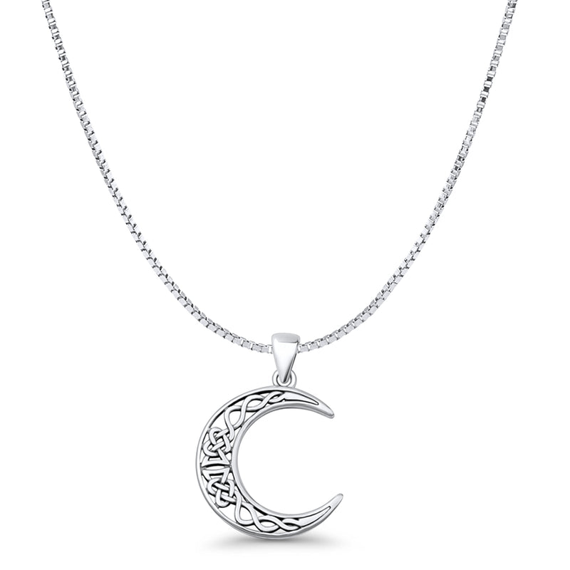 Celtic Moon Pendant Box Chain Necklace Oxidized 925 Sterling Silver
