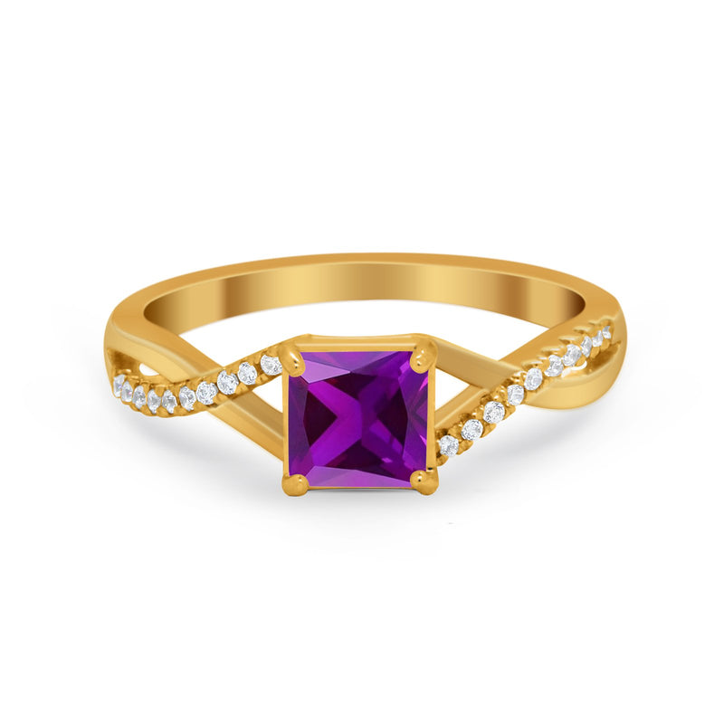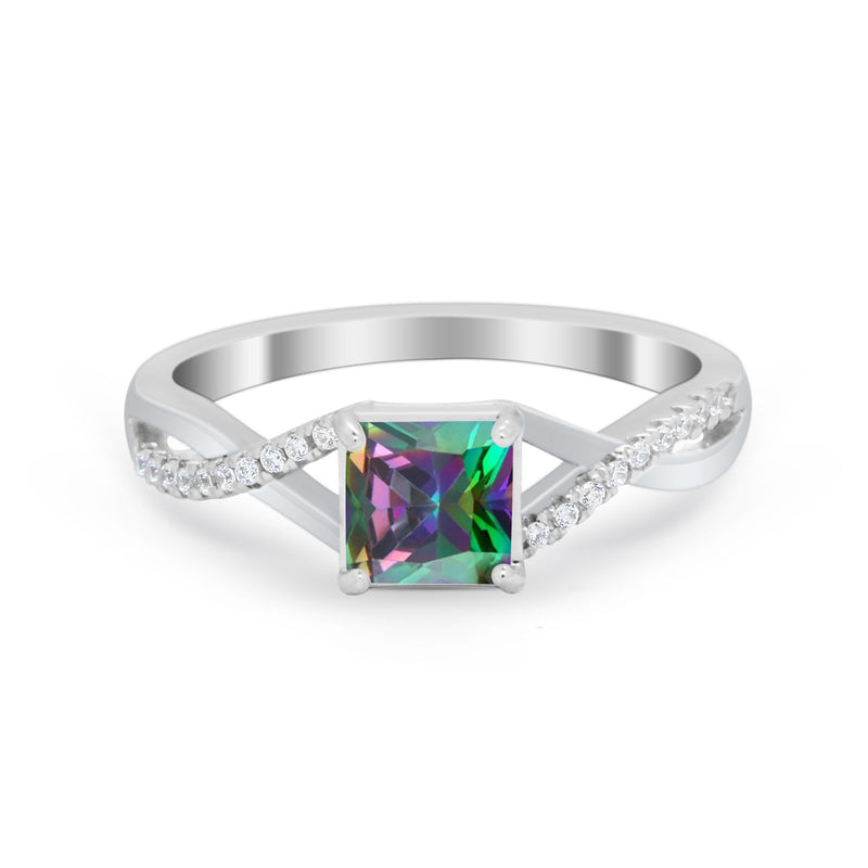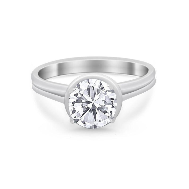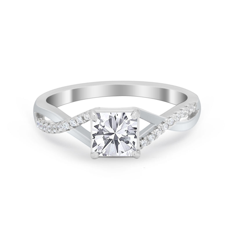 Princess Cut Wedding Ring Round Simulated Cubic Zirconia 925 Sterling Silver