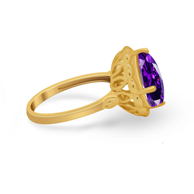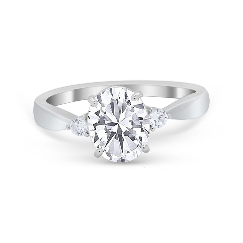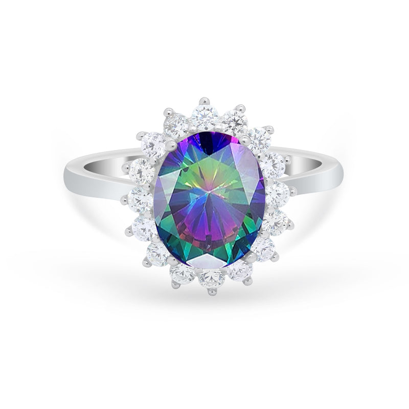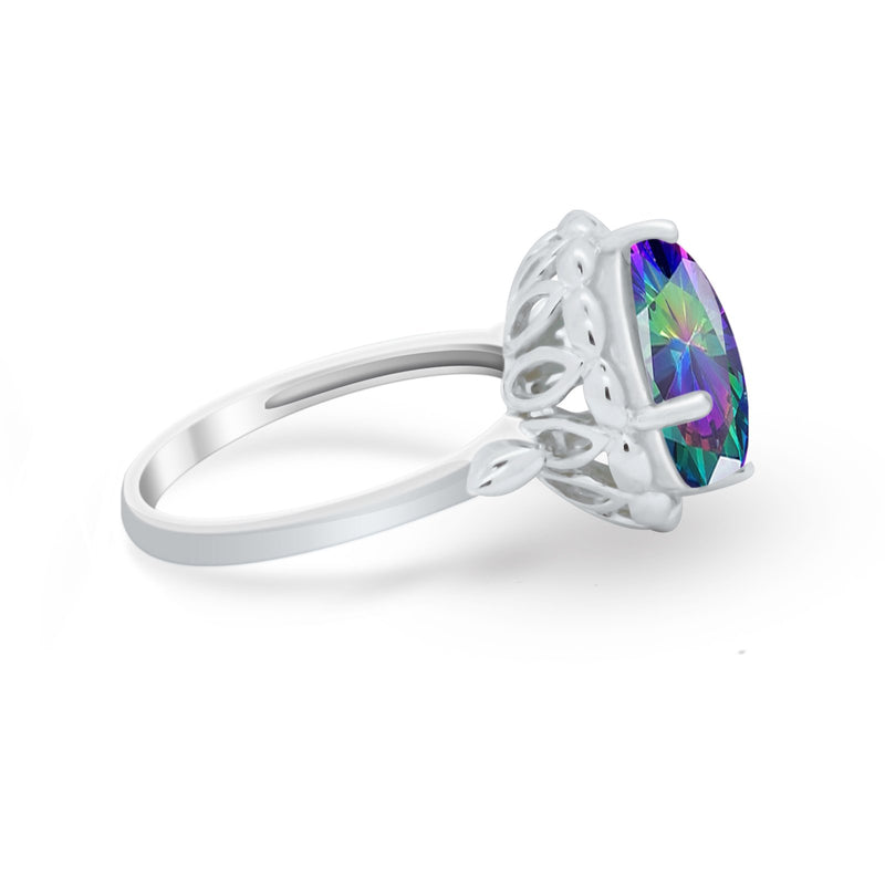 Floral Oval Wedding Ring Round Simulated Cubic Zirconia 925 Sterling Silver