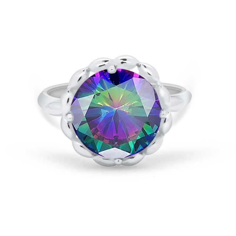 Item Specifications: Metal Type: Sterling Silver. Metal Stamp or Hallmark: .925 Metal Purity: 92.5% Sterling. Gemstone Creation Method: Simulated. Face Measurements From South To North: 12mm(0.47") Gemstone Creation Method: Simulated. Center Stone Measurements: 8mmApproximate Center Stone Carat Weight: 2.04 Carat