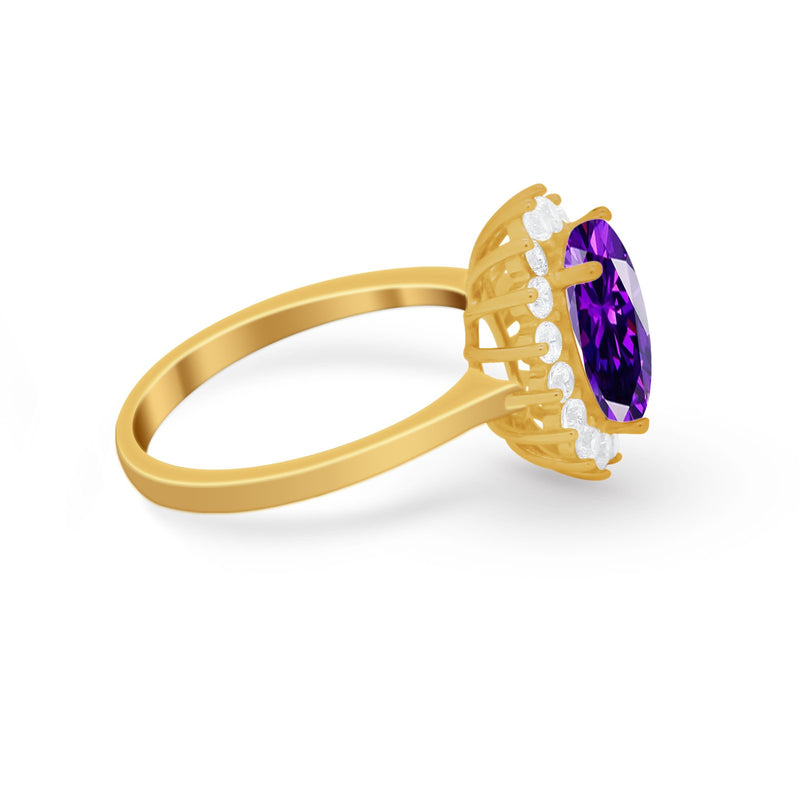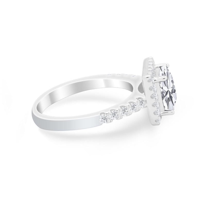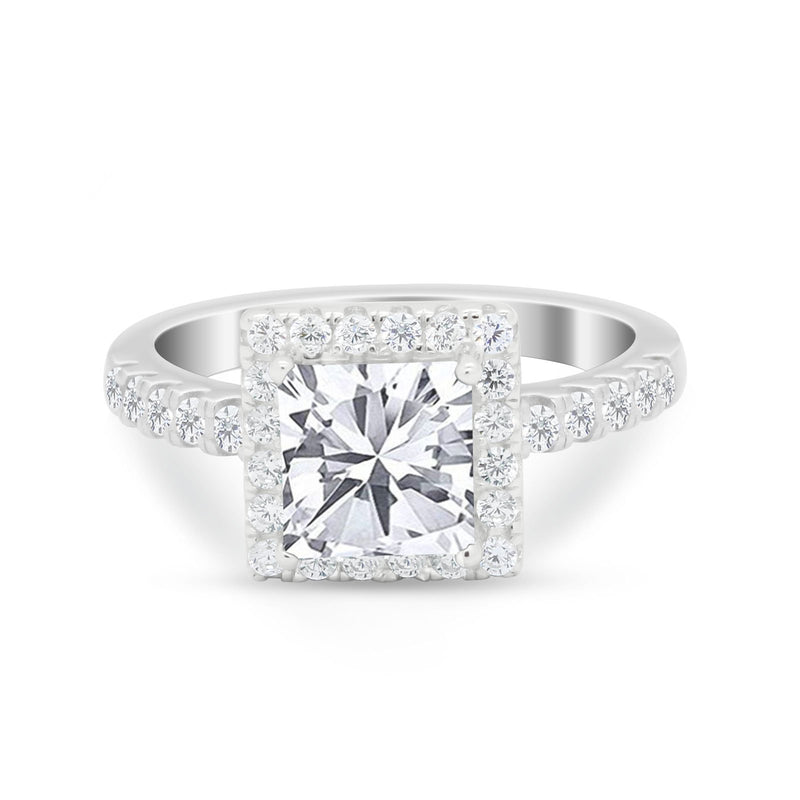 Halo Princess Cut Wedding Ring Simulated Cubic Zirconia 925 Sterling Silver