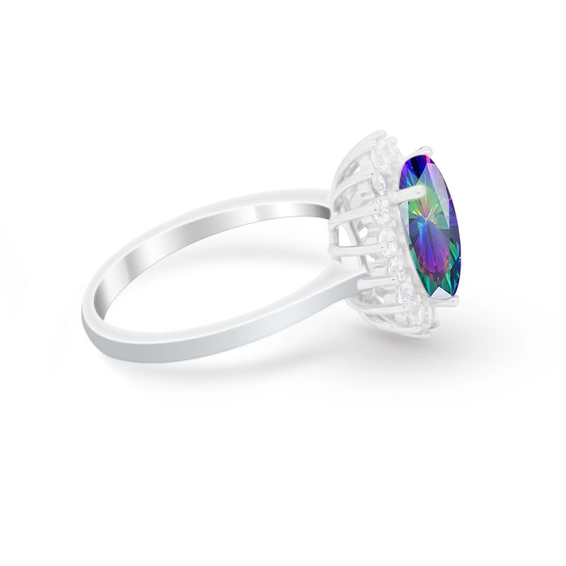 Art Deco Halo Wedding Engagement Cocktail Large Stone Cubic Zirconia Ring 925 Sterling Silver Choose Color