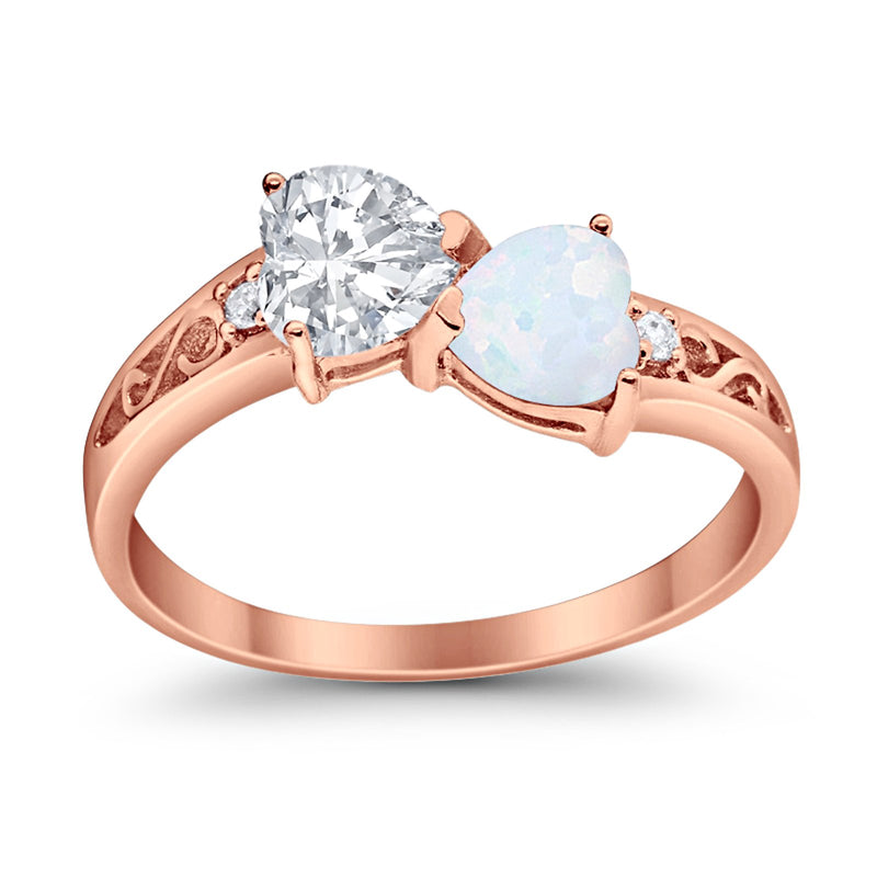 Heart Filigree Ring Round Cubic Zirconia 925 Sterling Silver Created White Opal