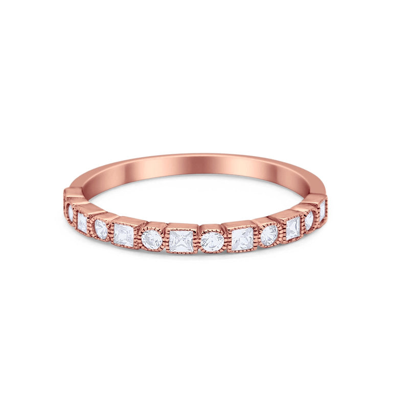 Art Deco Full Eternity Stackable Wedding Ring Round 925 Sterling Silver