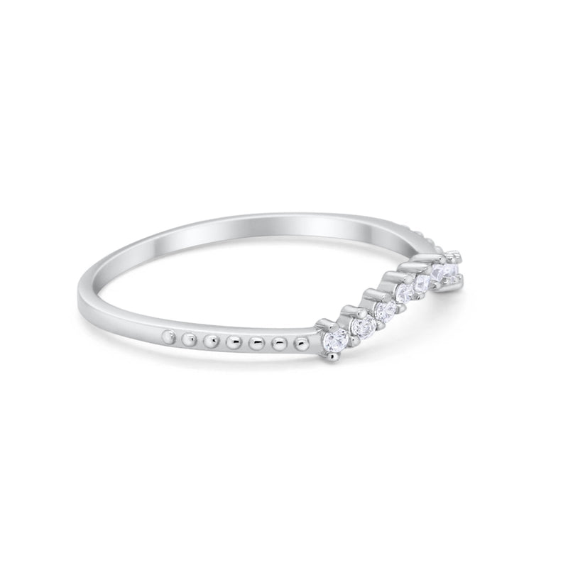 Art Deco Curved Wedding Band Round Cubic Zirconia 925 Sterling Silver Band Ring