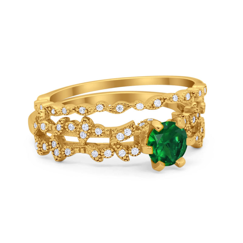 Two Piece Art Deco Engagement Ring Wedding Band Bridal Set Round Cubic Zirconia 925 Sterling Silver
