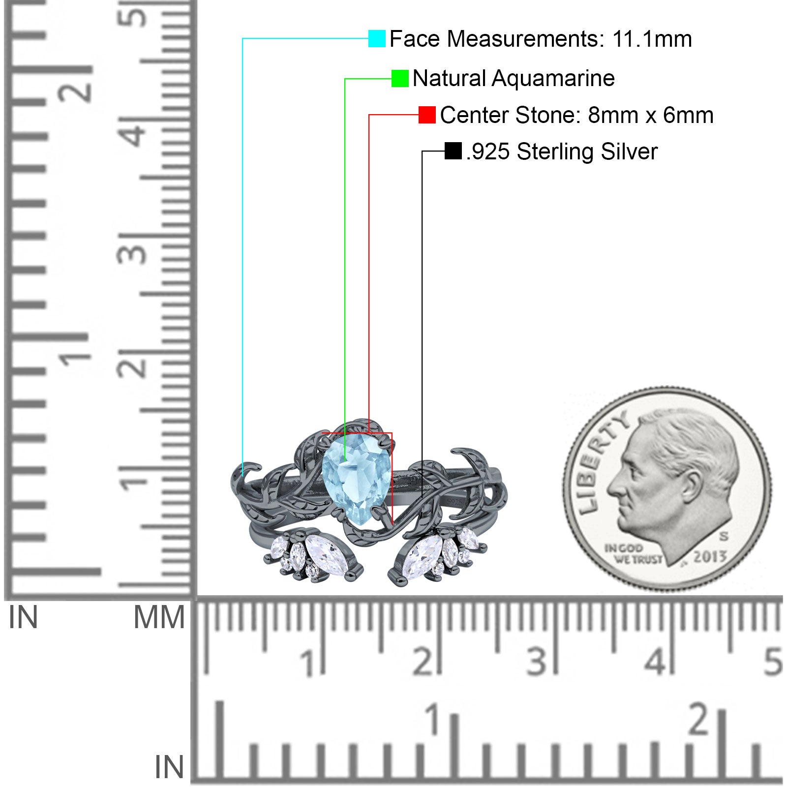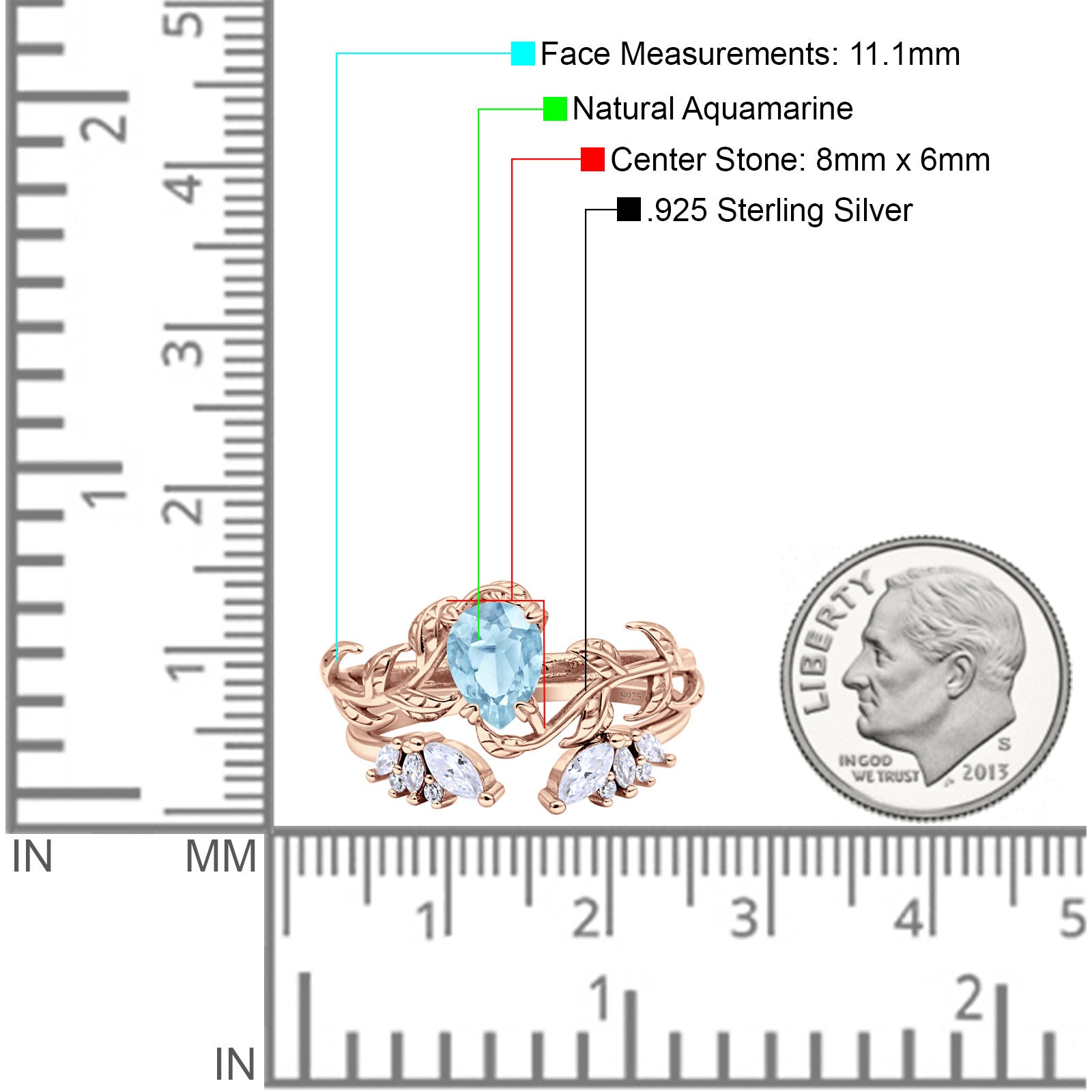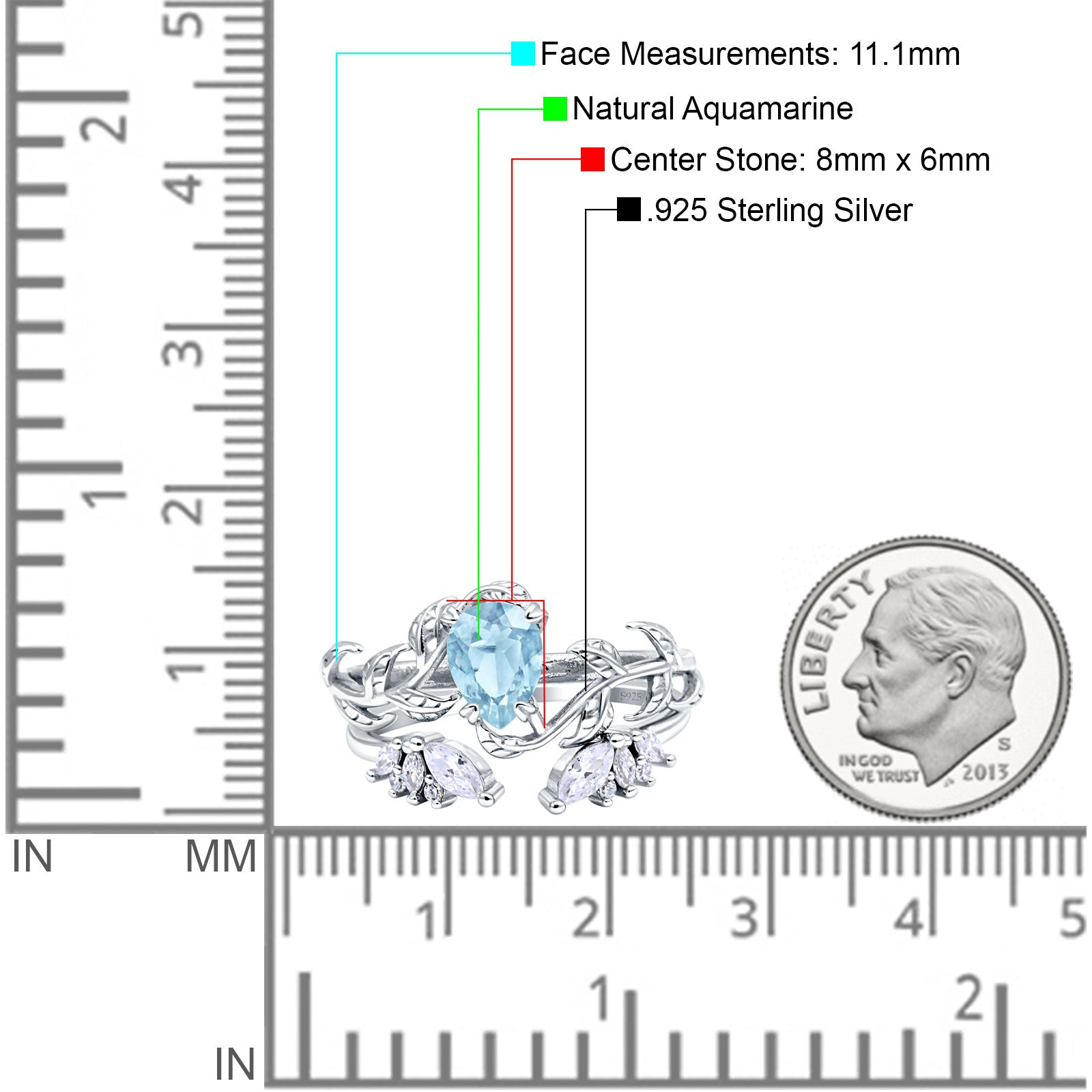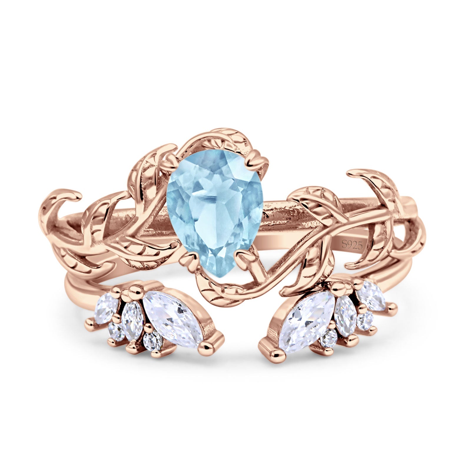 Teardrop Pear Natural Aquamarine Leaf Style Two Piece Ring 925 Sterling Silver