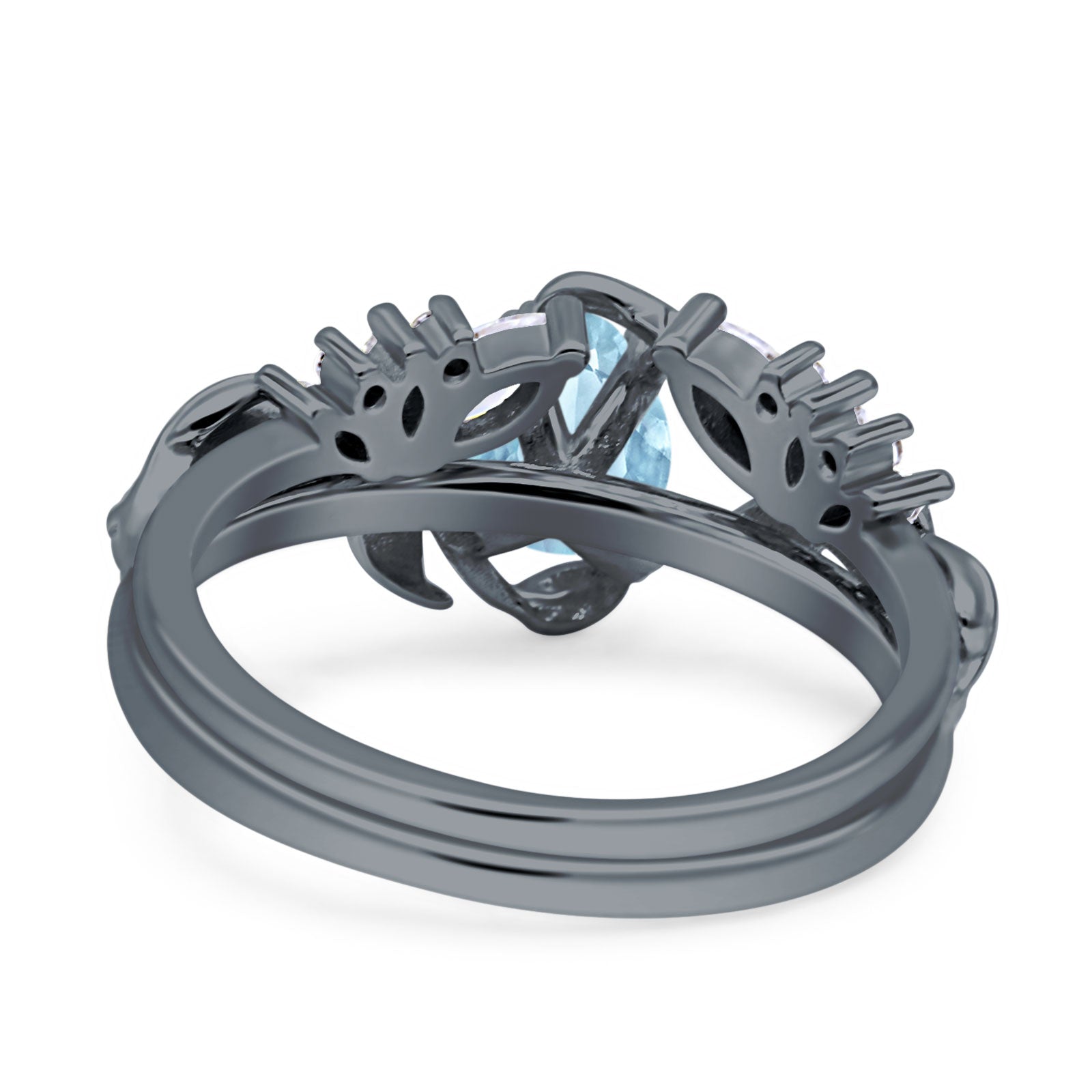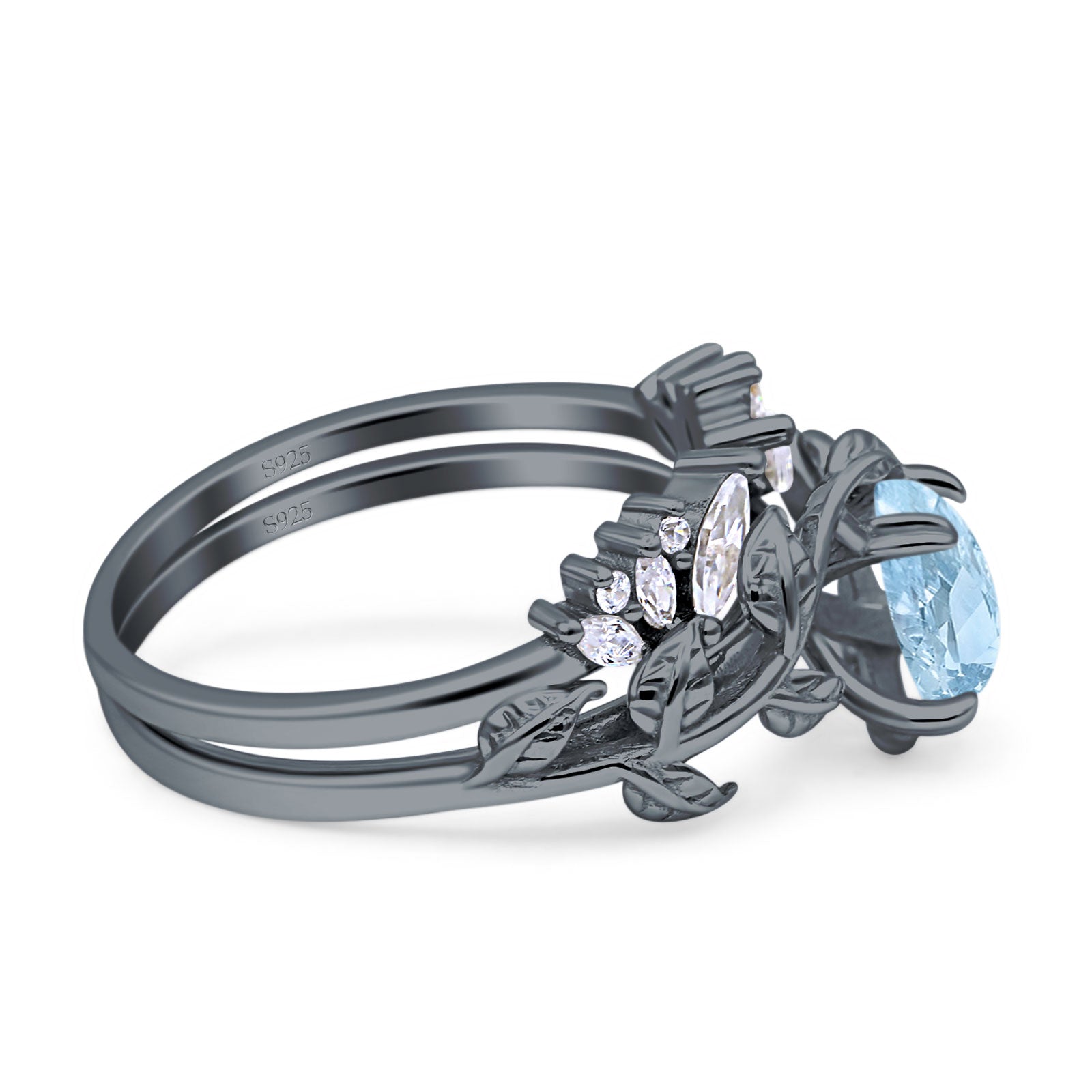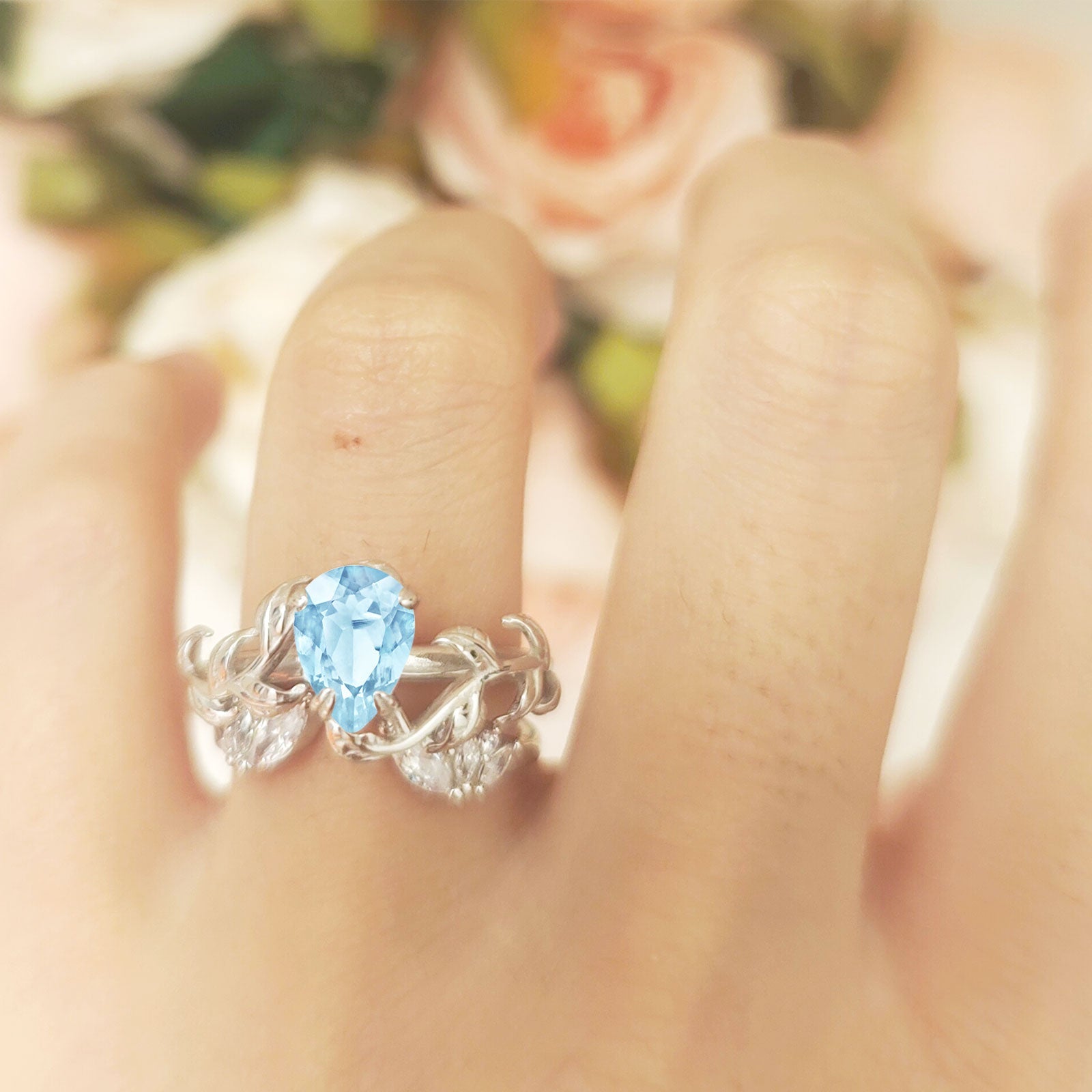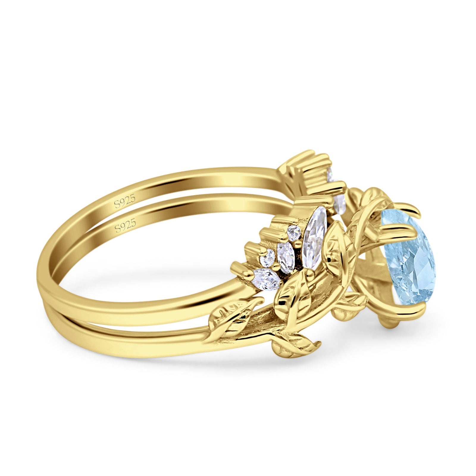 Teardrop Pear Natural Aquamarine Leaf Style Two Piece Ring 925 Sterling Silver