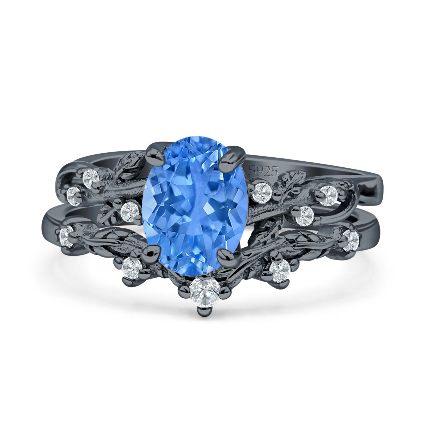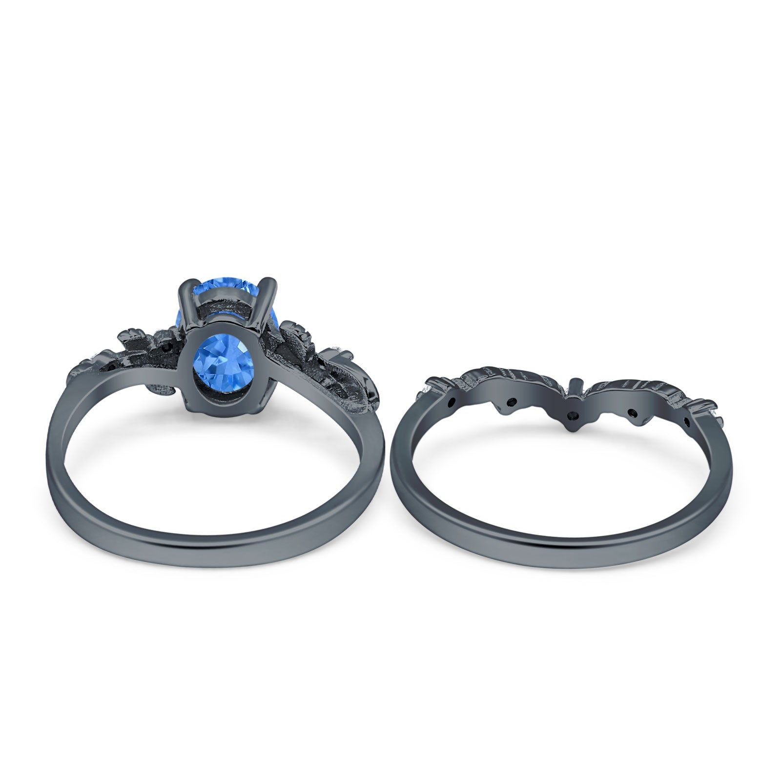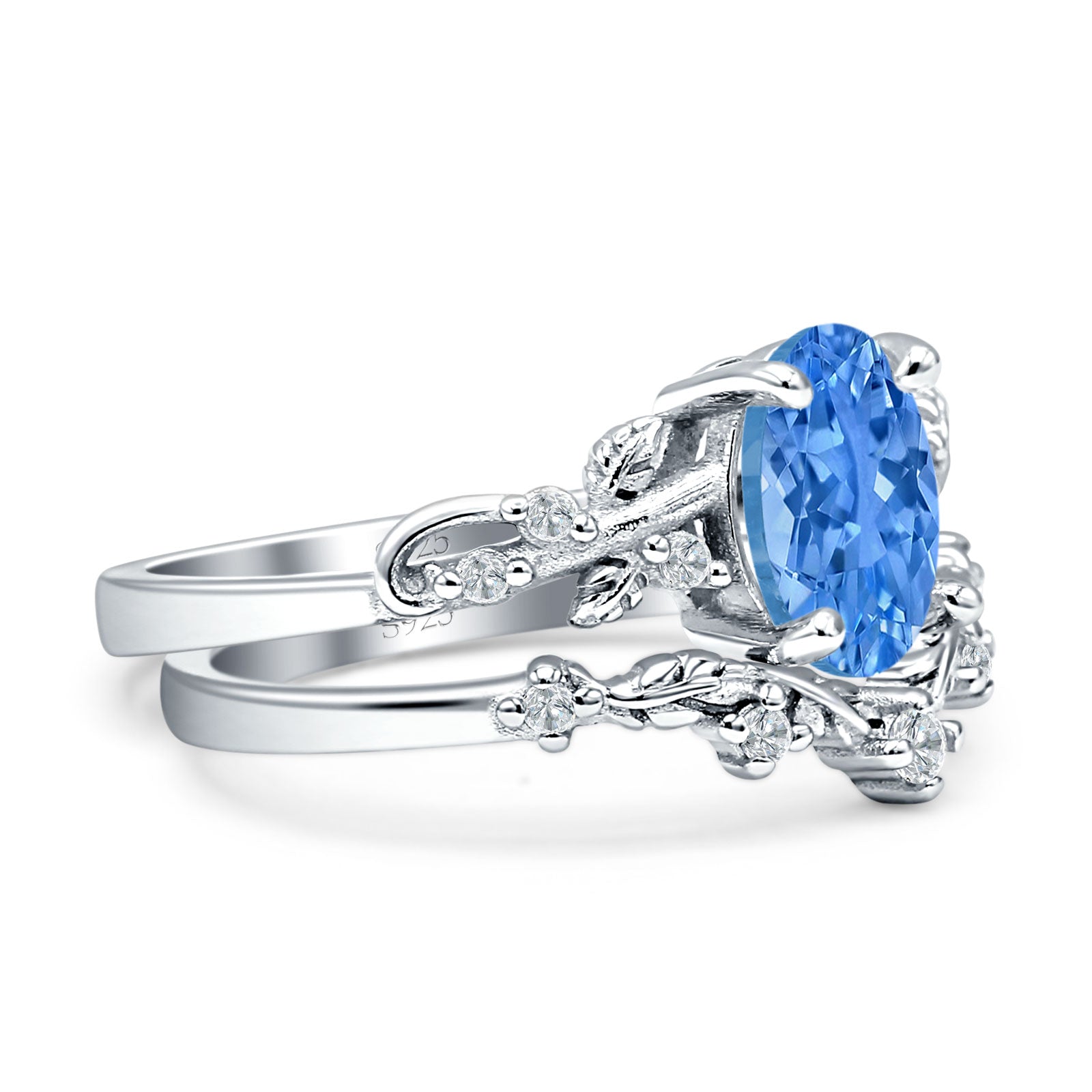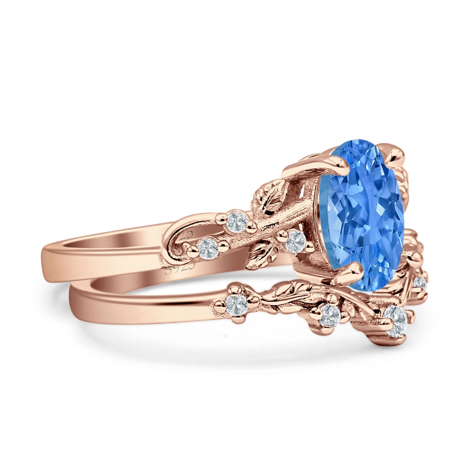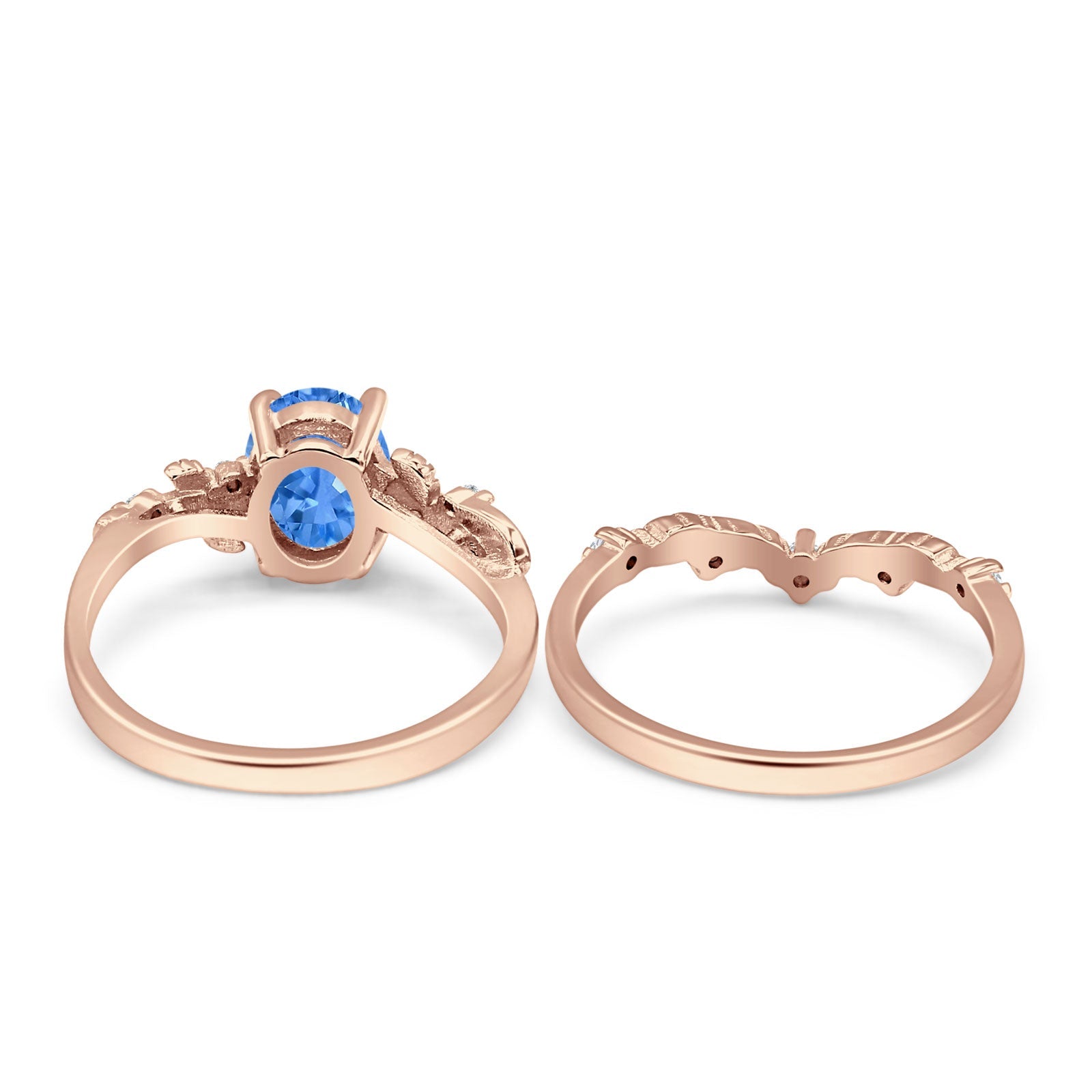 CZ & Blue Sapphire CZ Rose Tone Silver