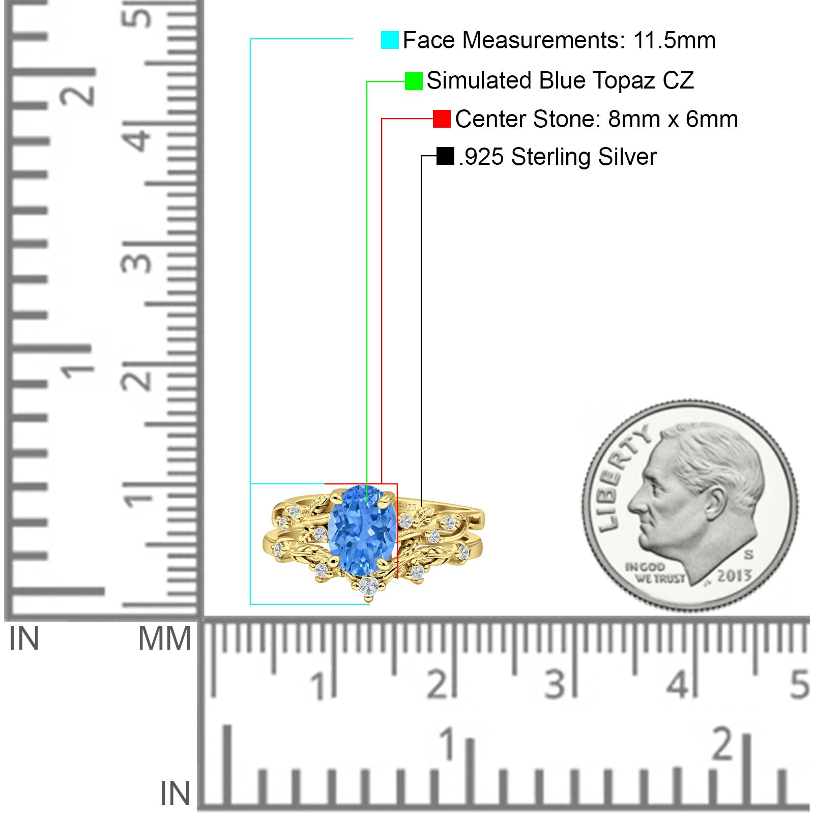 CZ & Blue Sapphire CZ Yellow Tone Silver