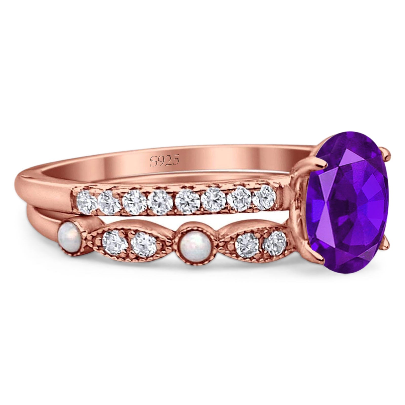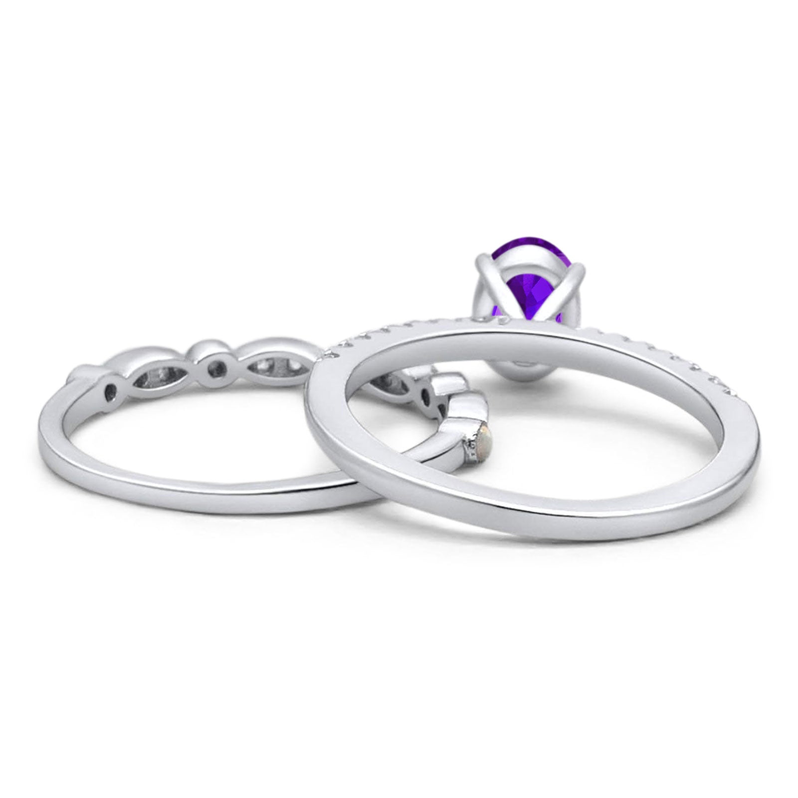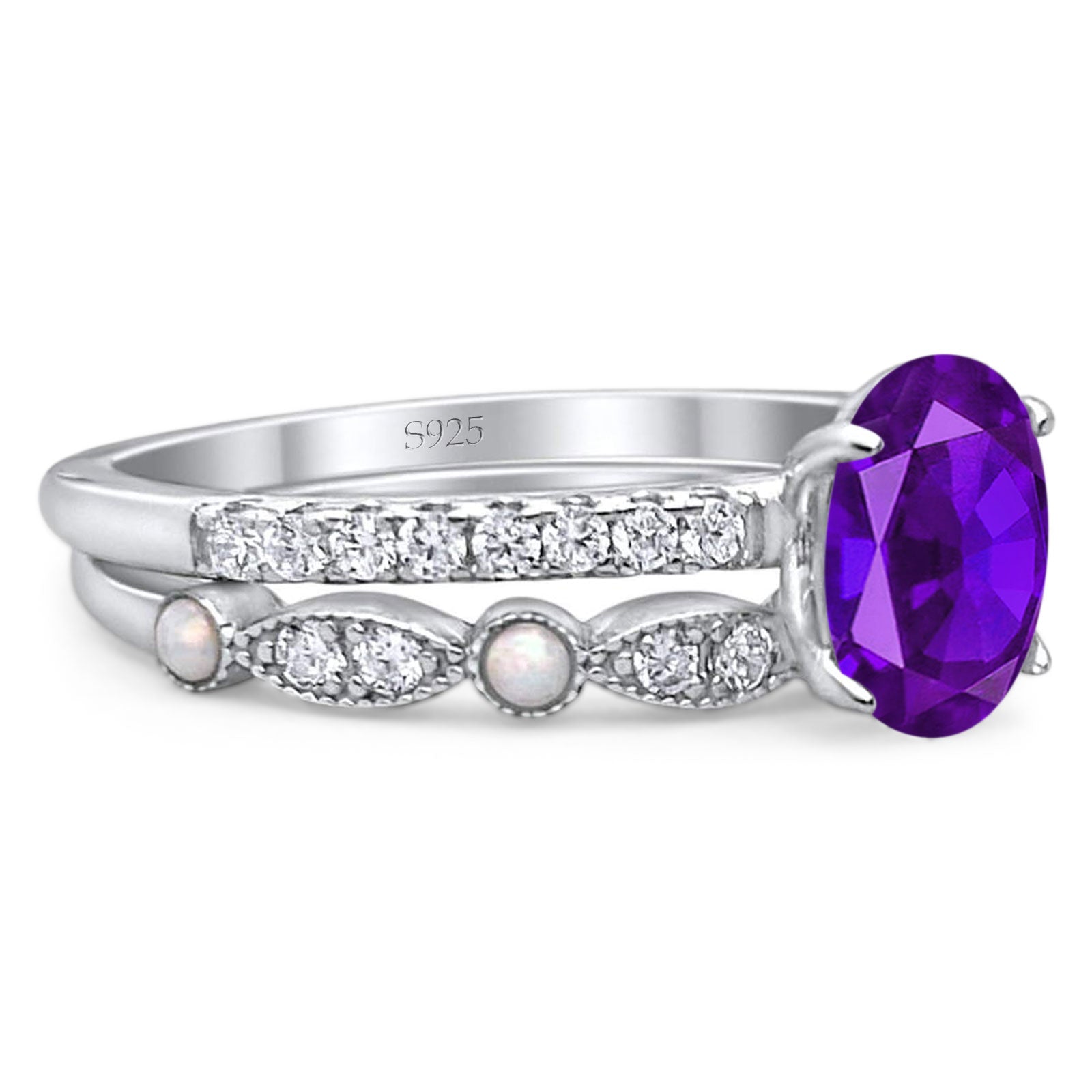 Two Piece Oval Natural Amethyst Bridal Ring 925 Sterling Silver