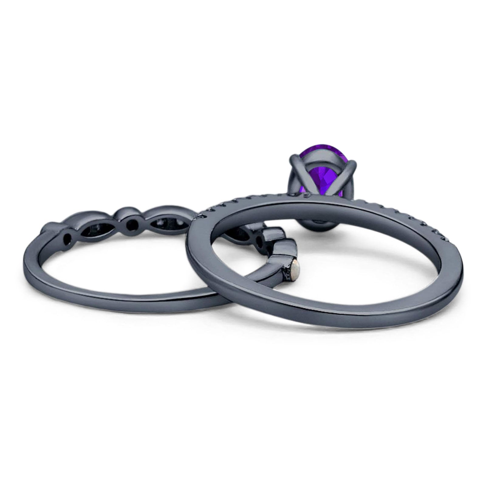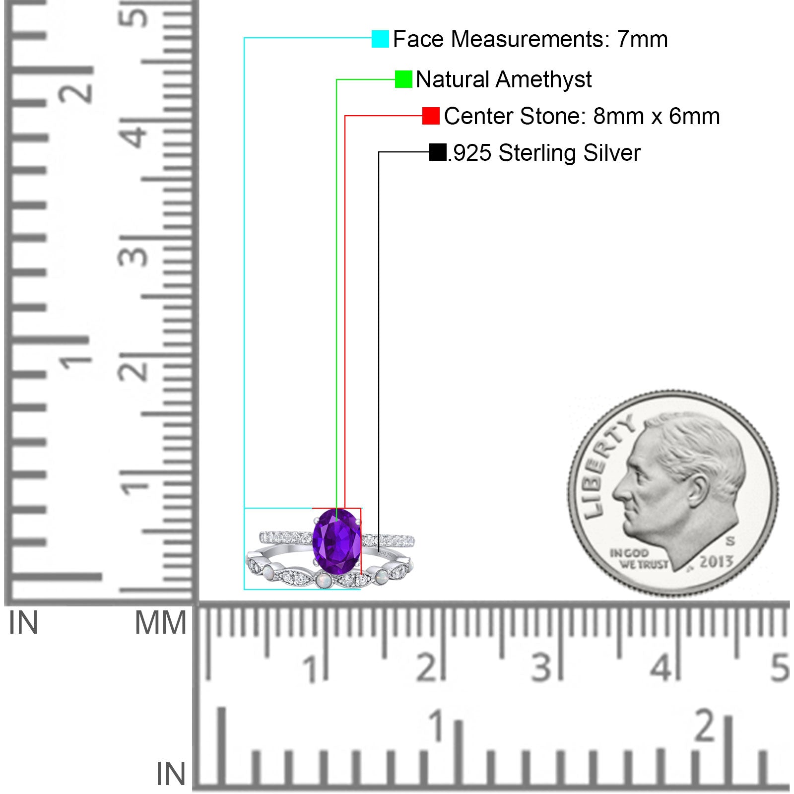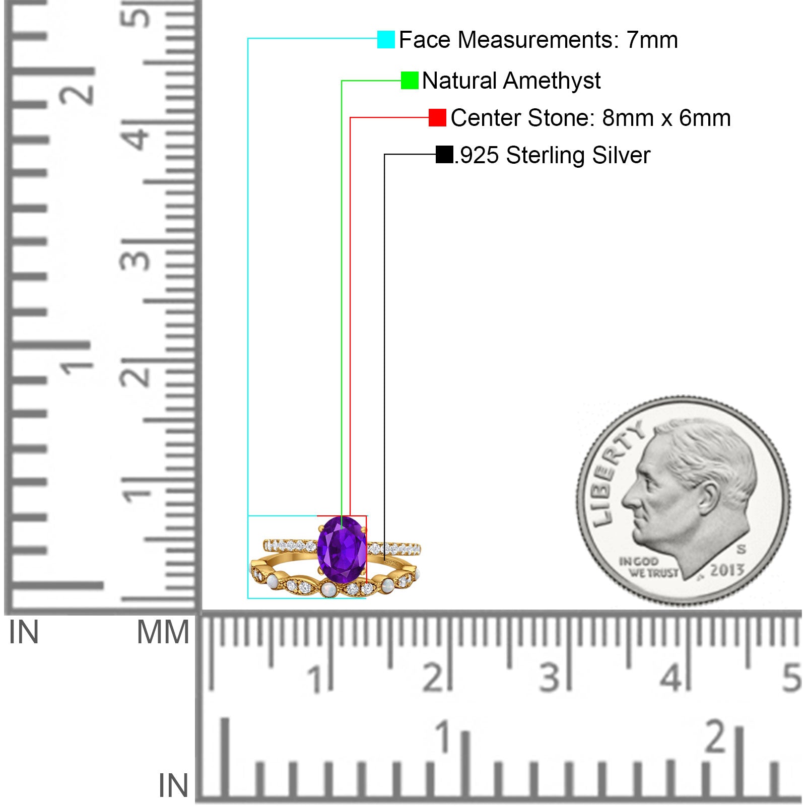 Two Piece Oval Natural Amethyst Bridal Ring 925 Sterling Silver