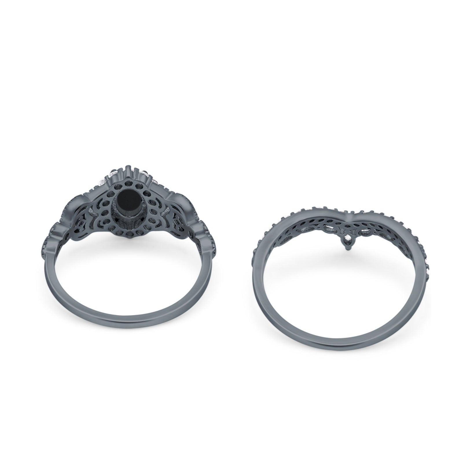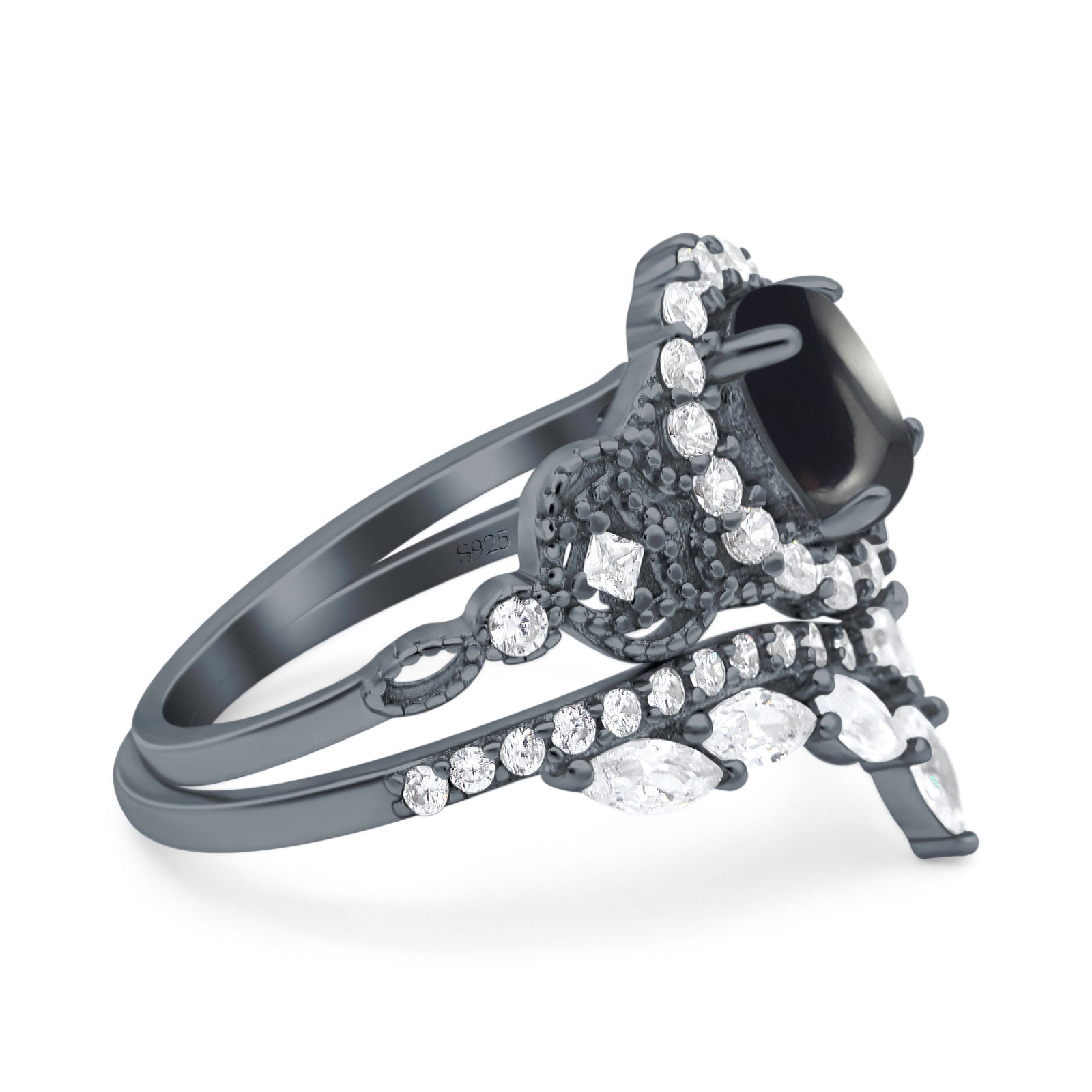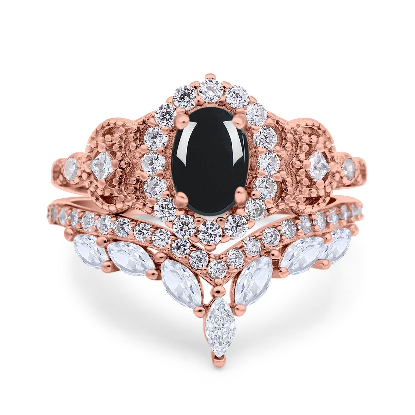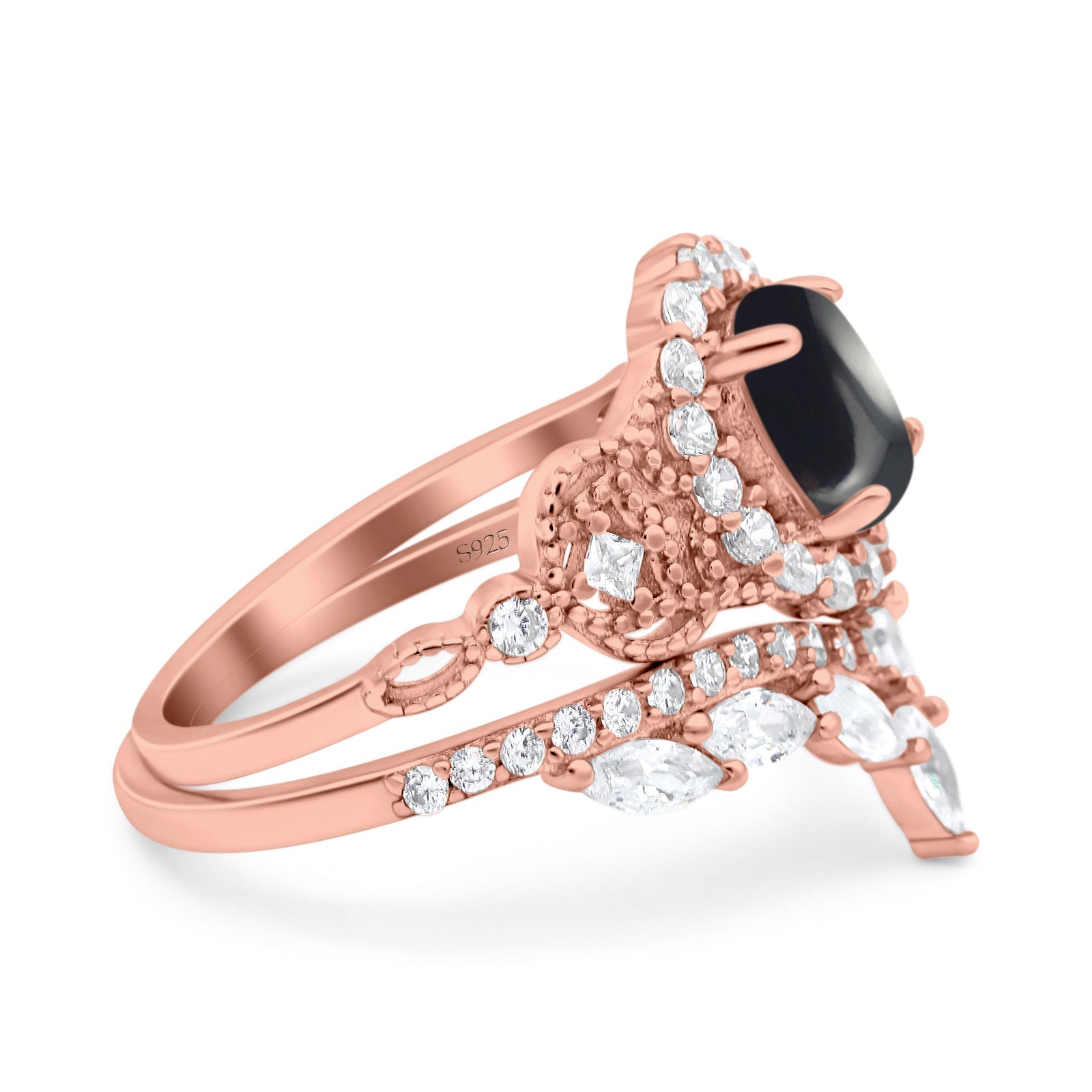 CZ & Blue Sapphire CZ Rose Tone Silver