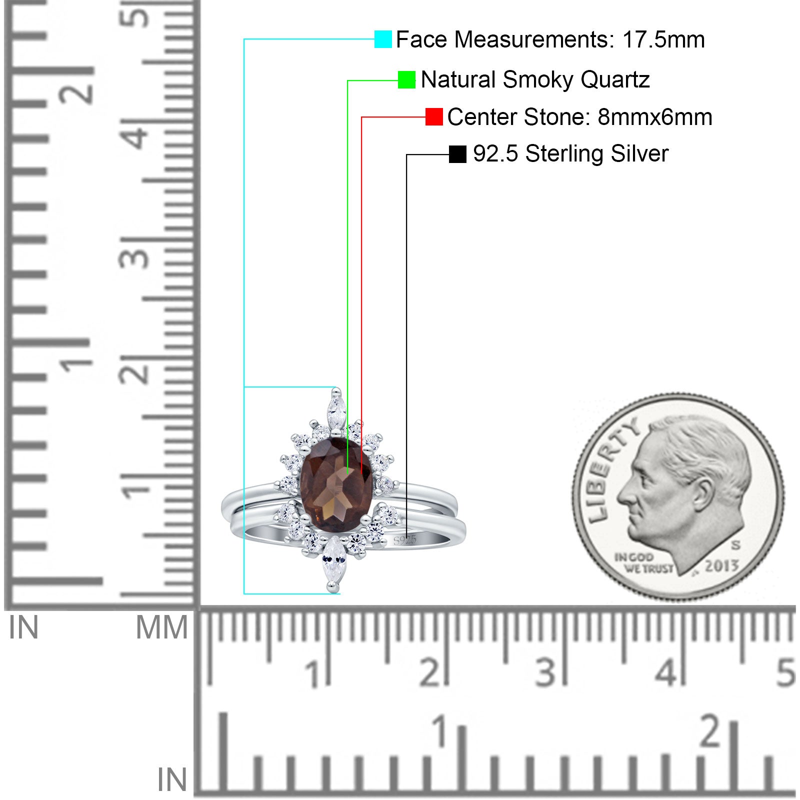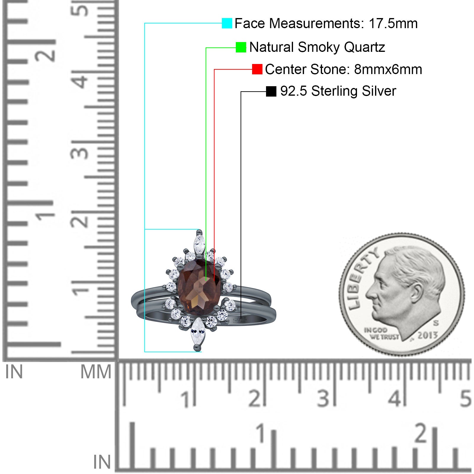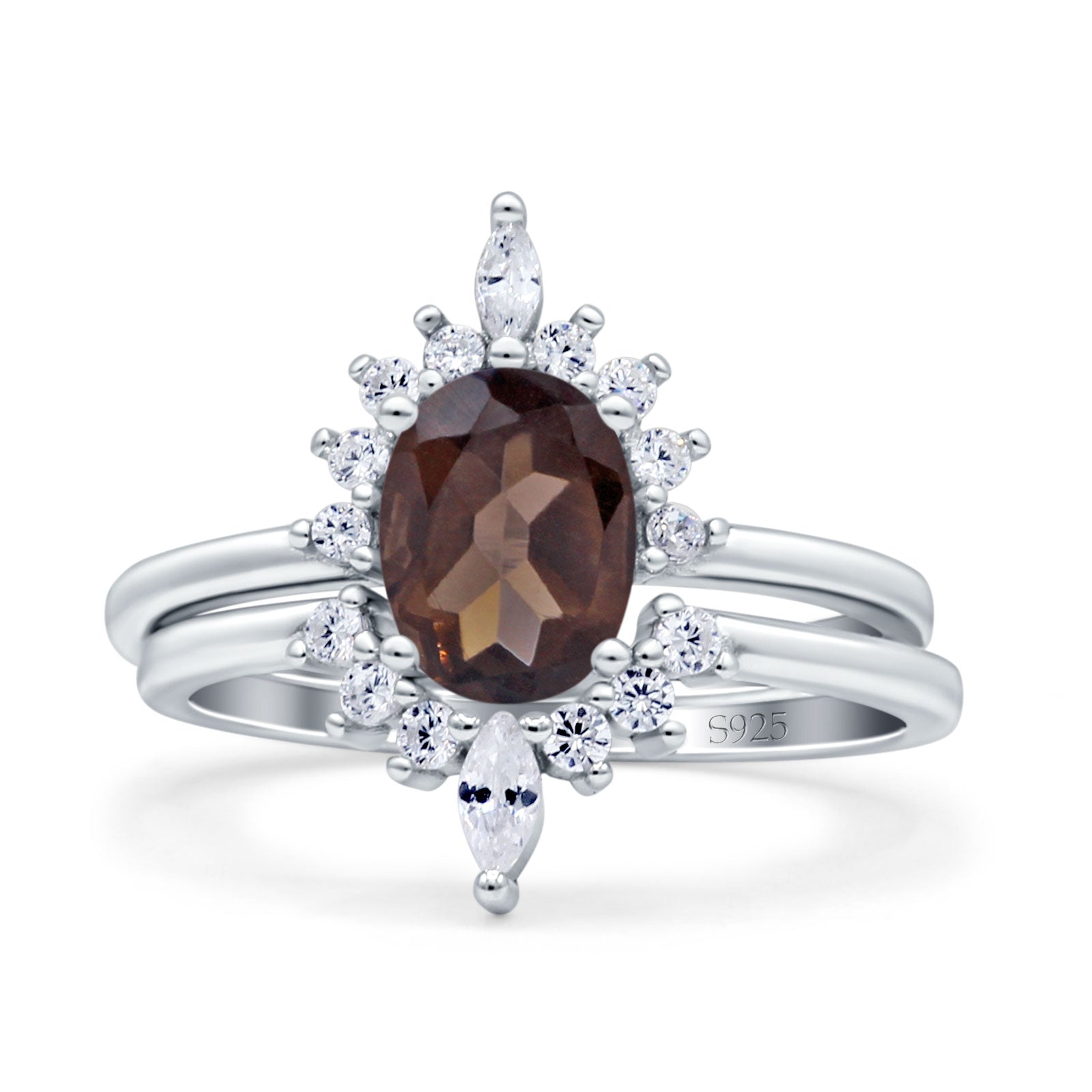 Two Piece Oval Natural Chocolate Smoky Quartz Ring Curved Contour Band 925 Sterlig Silver