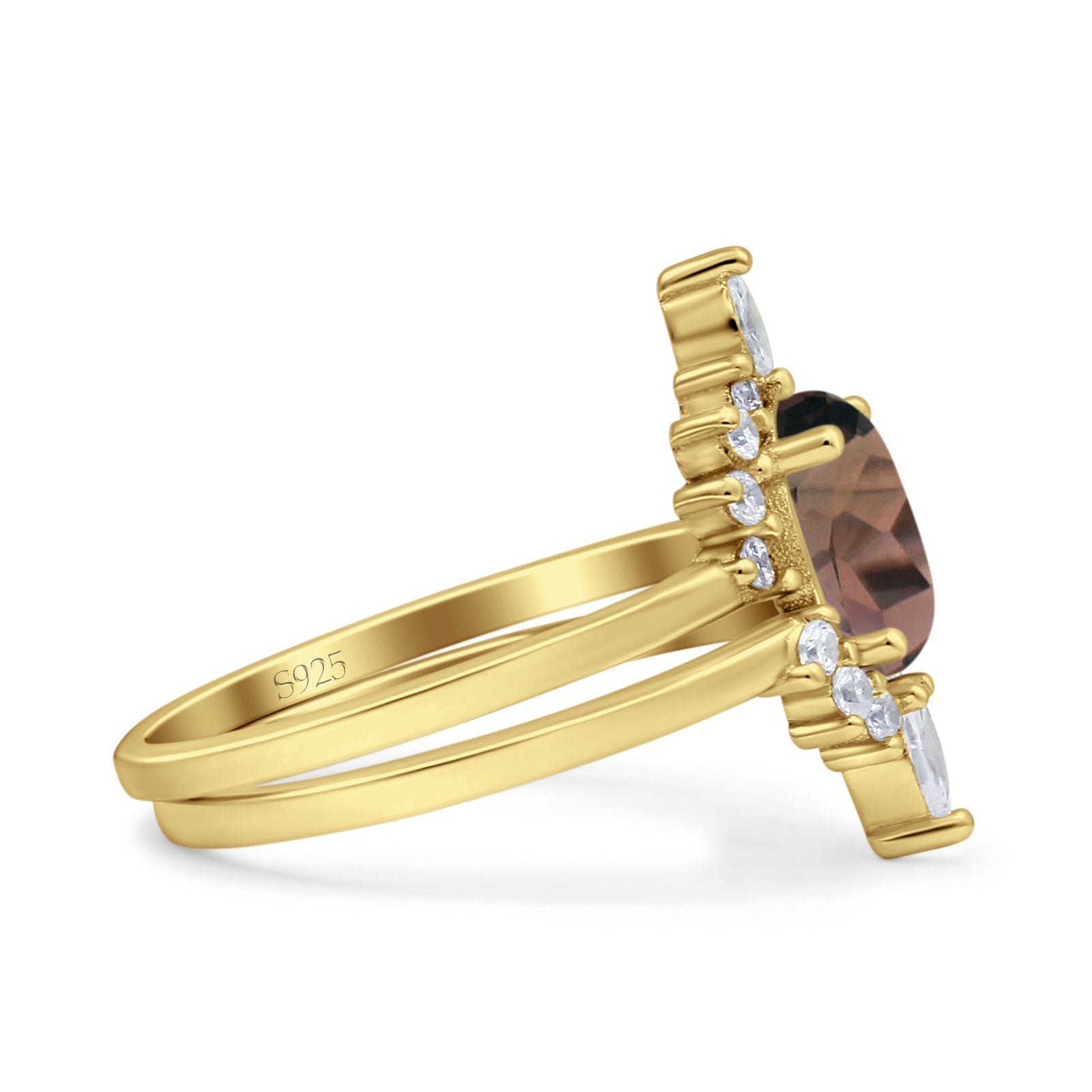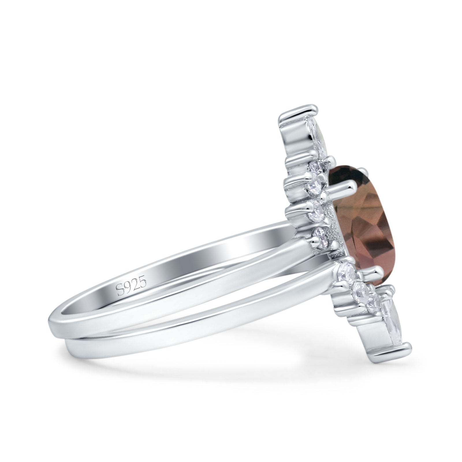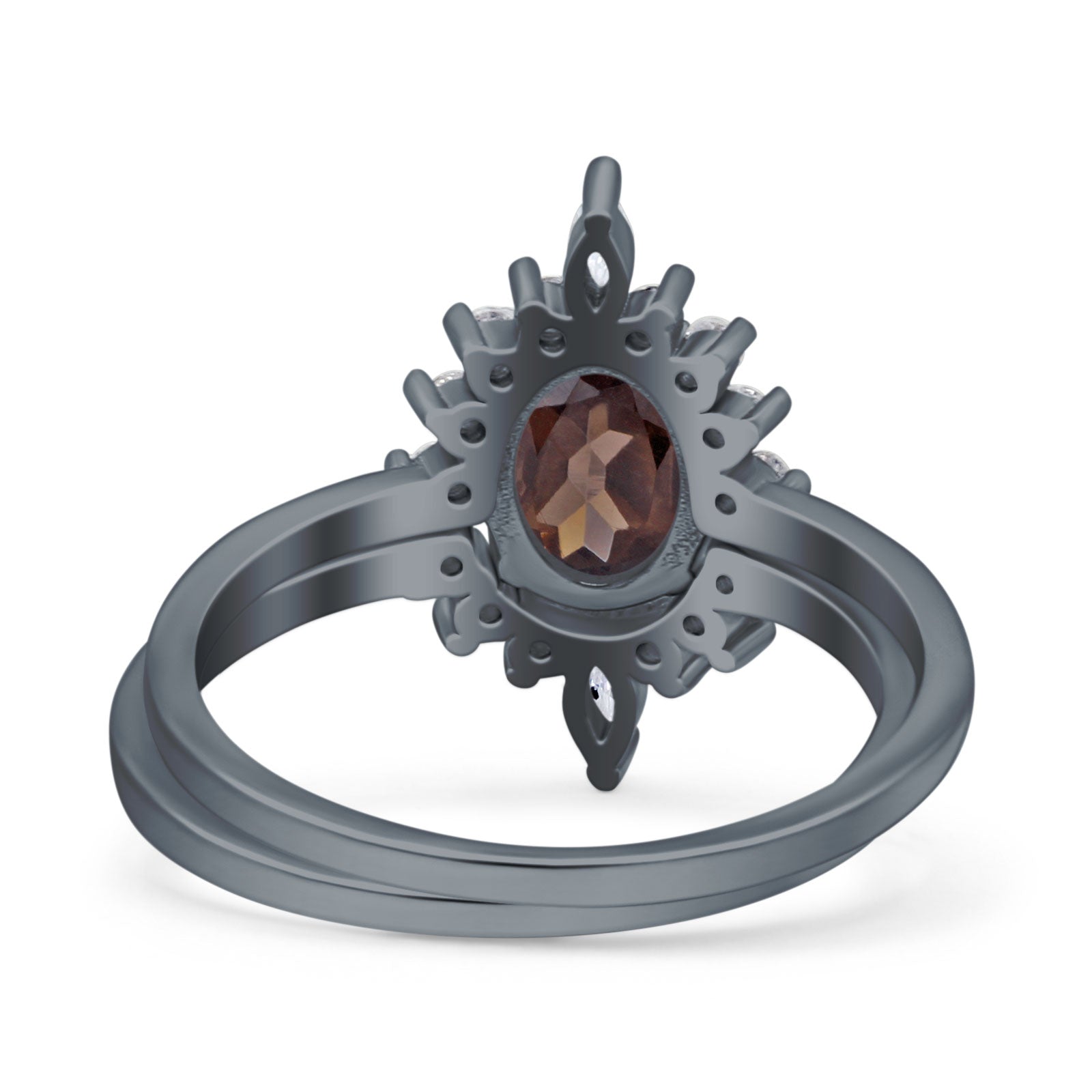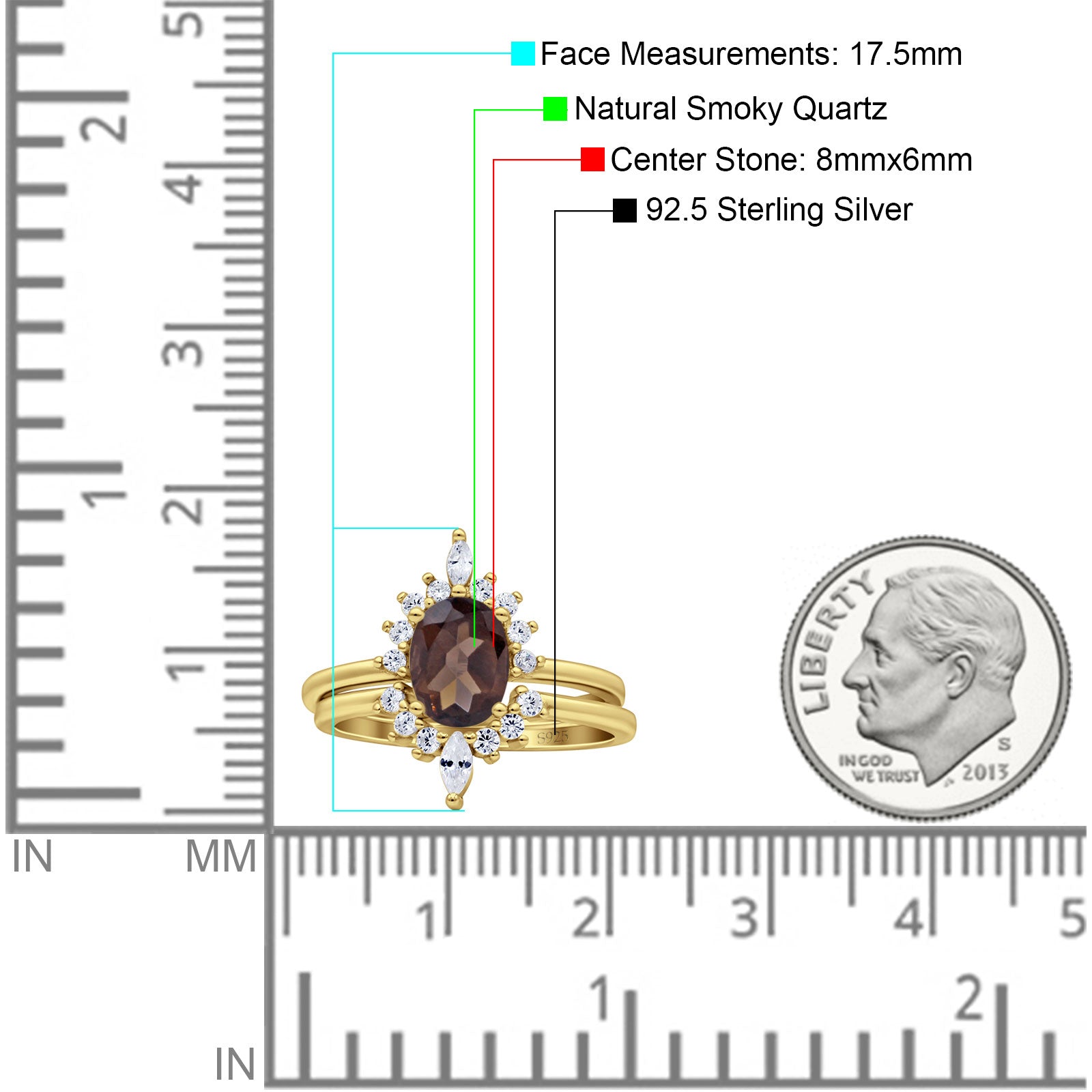 Two Piece Oval Natural Chocolate Smoky Quartz Ring Curved Contour Band 925 Sterlig Silver