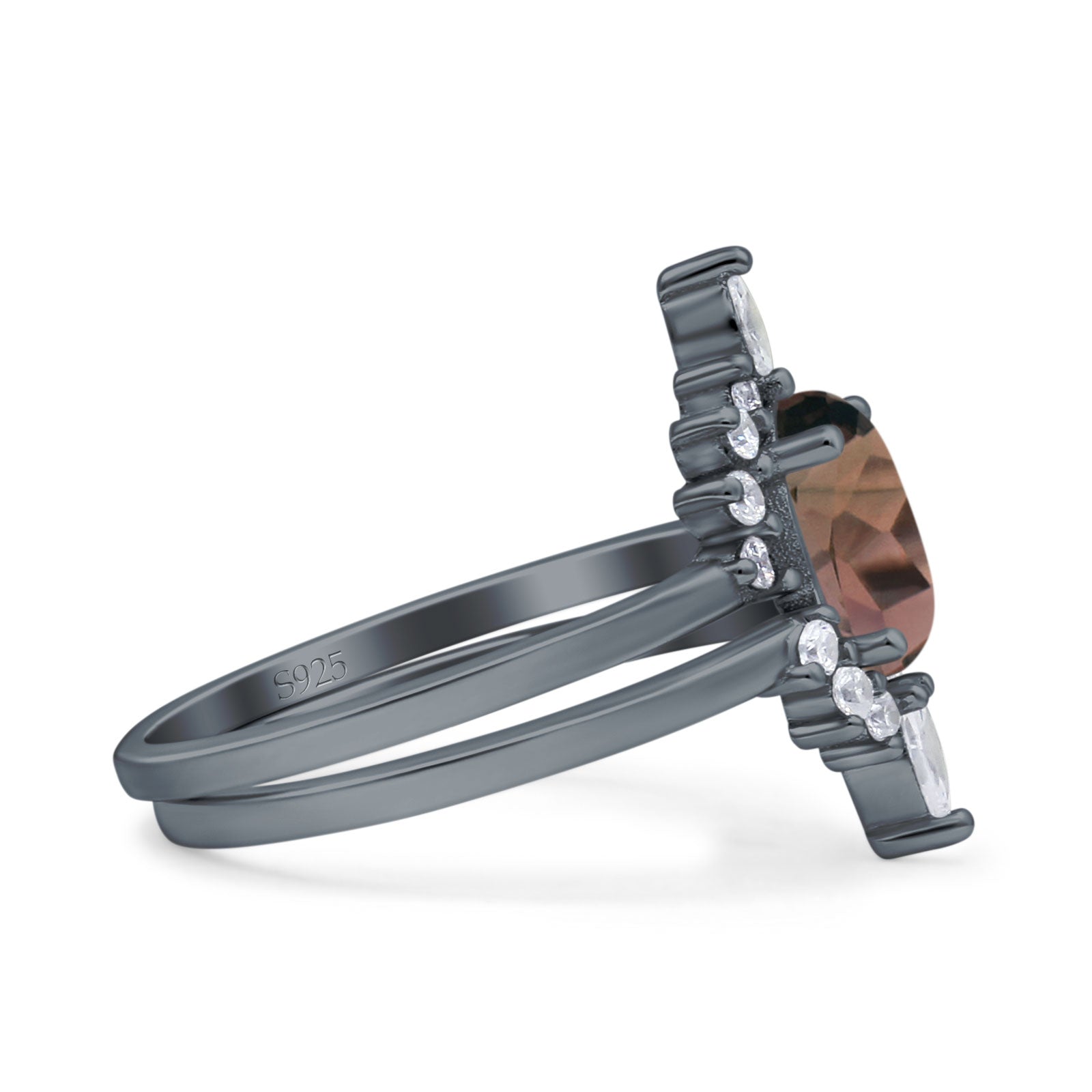 Natural Chocolate Smoky Quartz Black Tone Silver