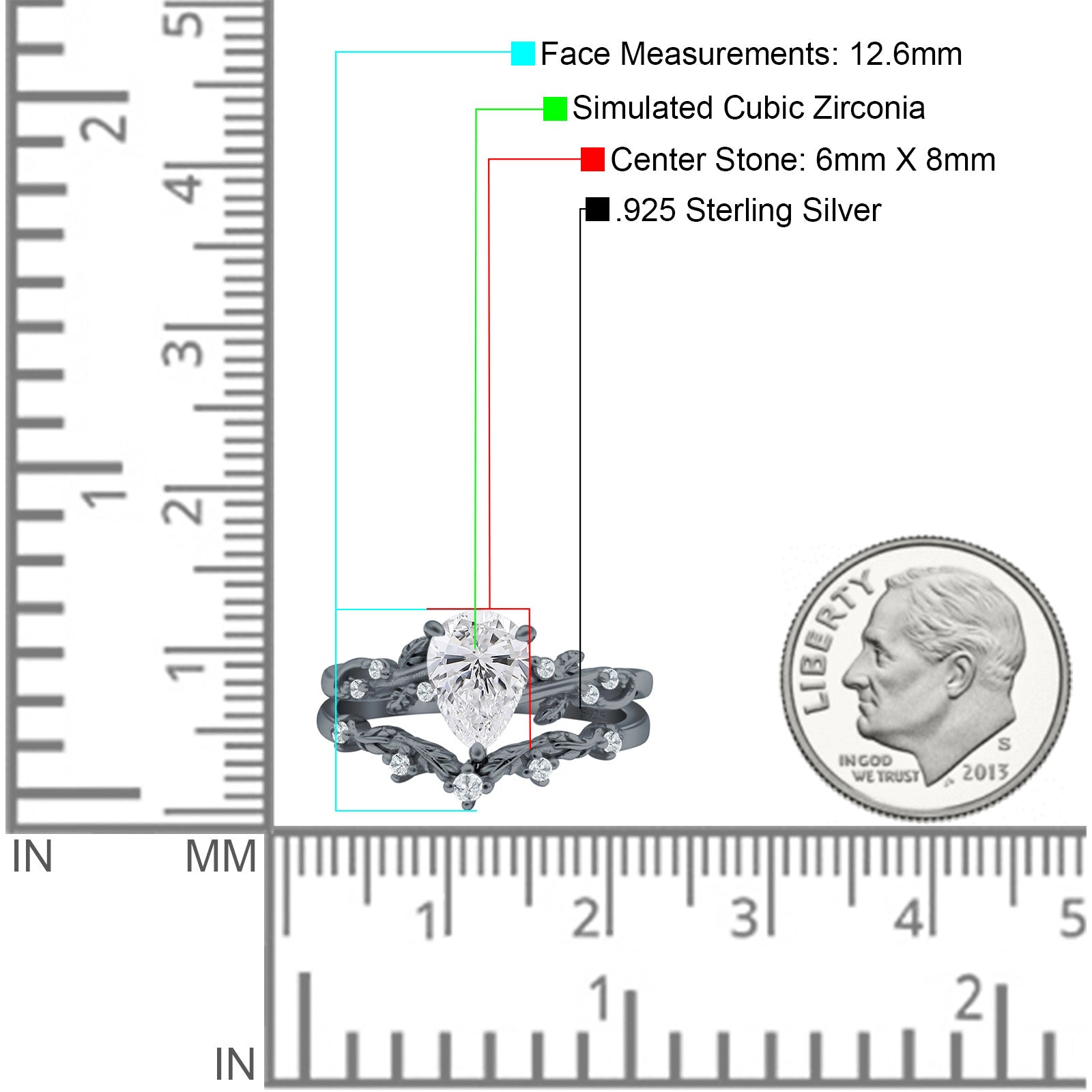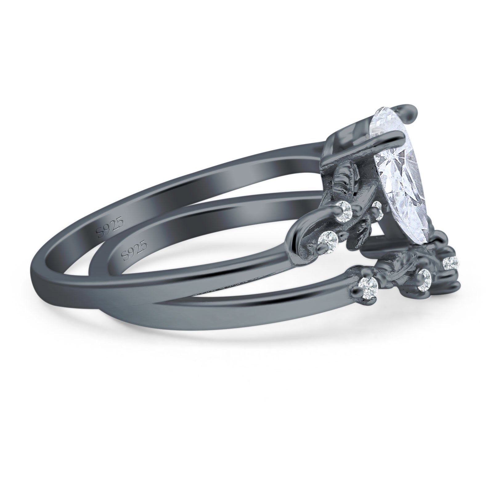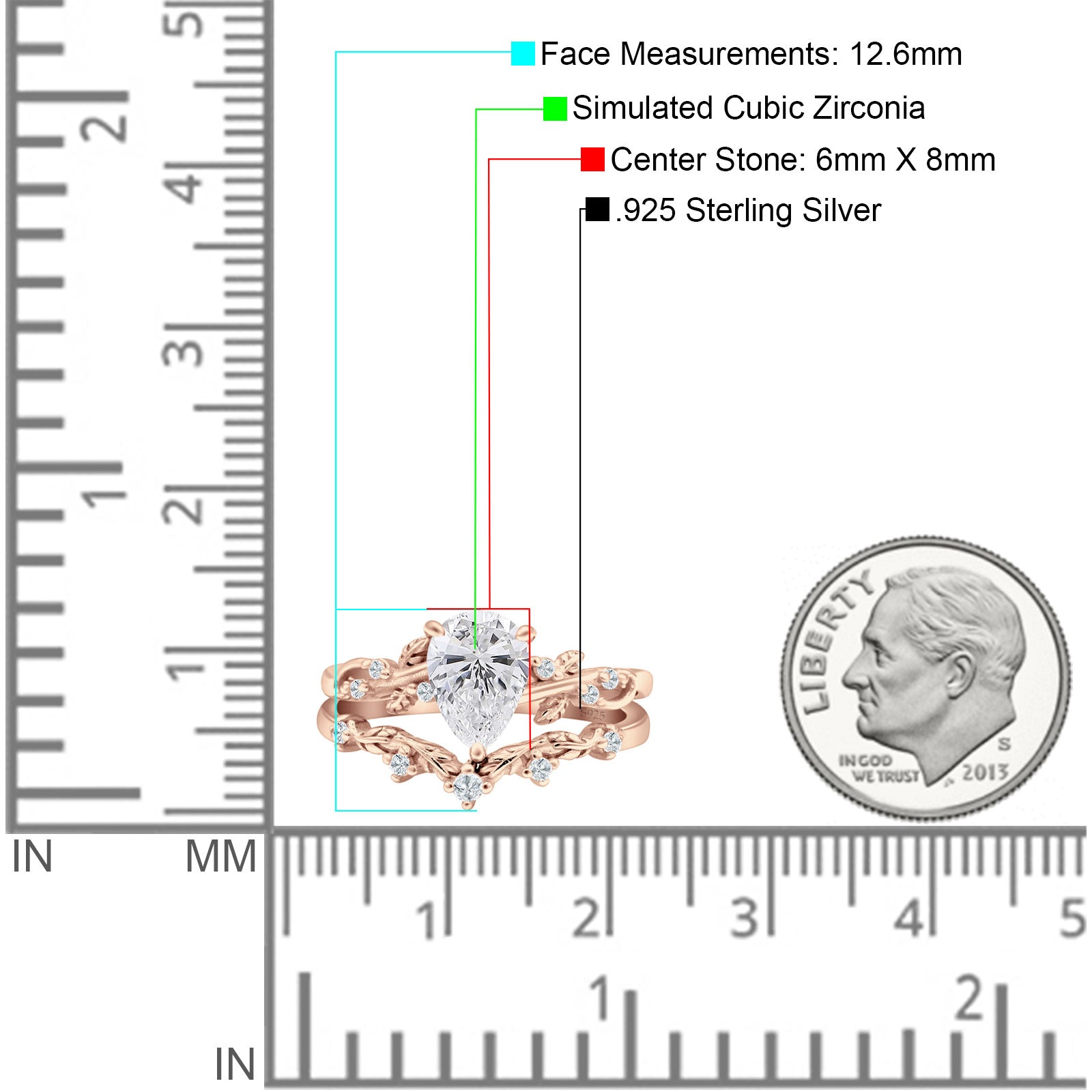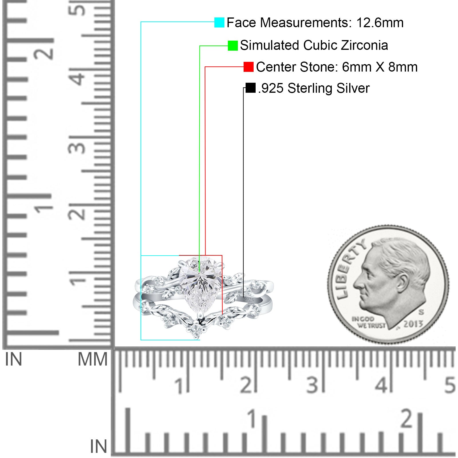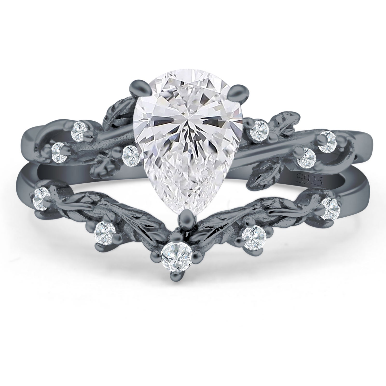 Two Piece Pear Cubic Zirconia Leaf Style Chevron Rings 925 Sterling Silver