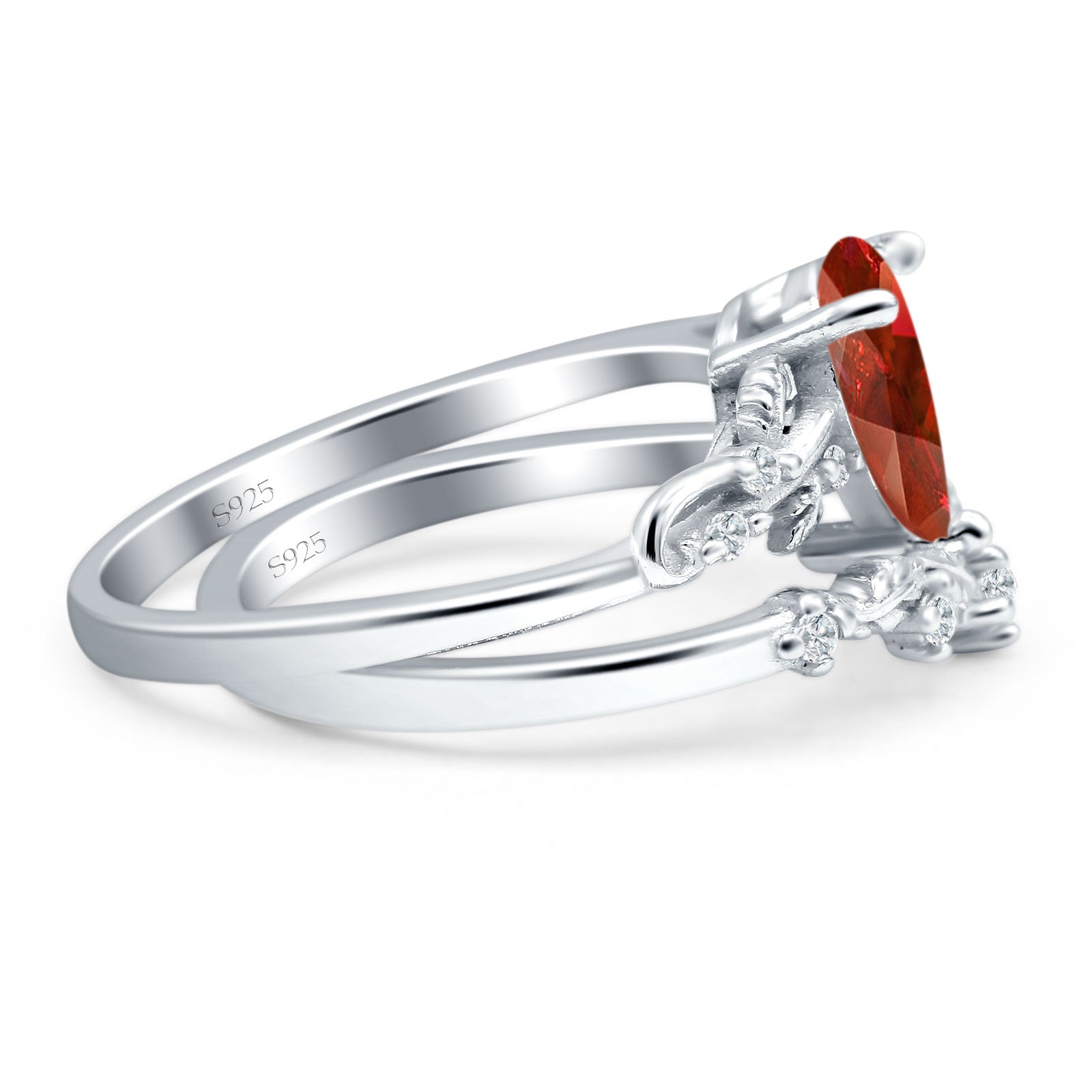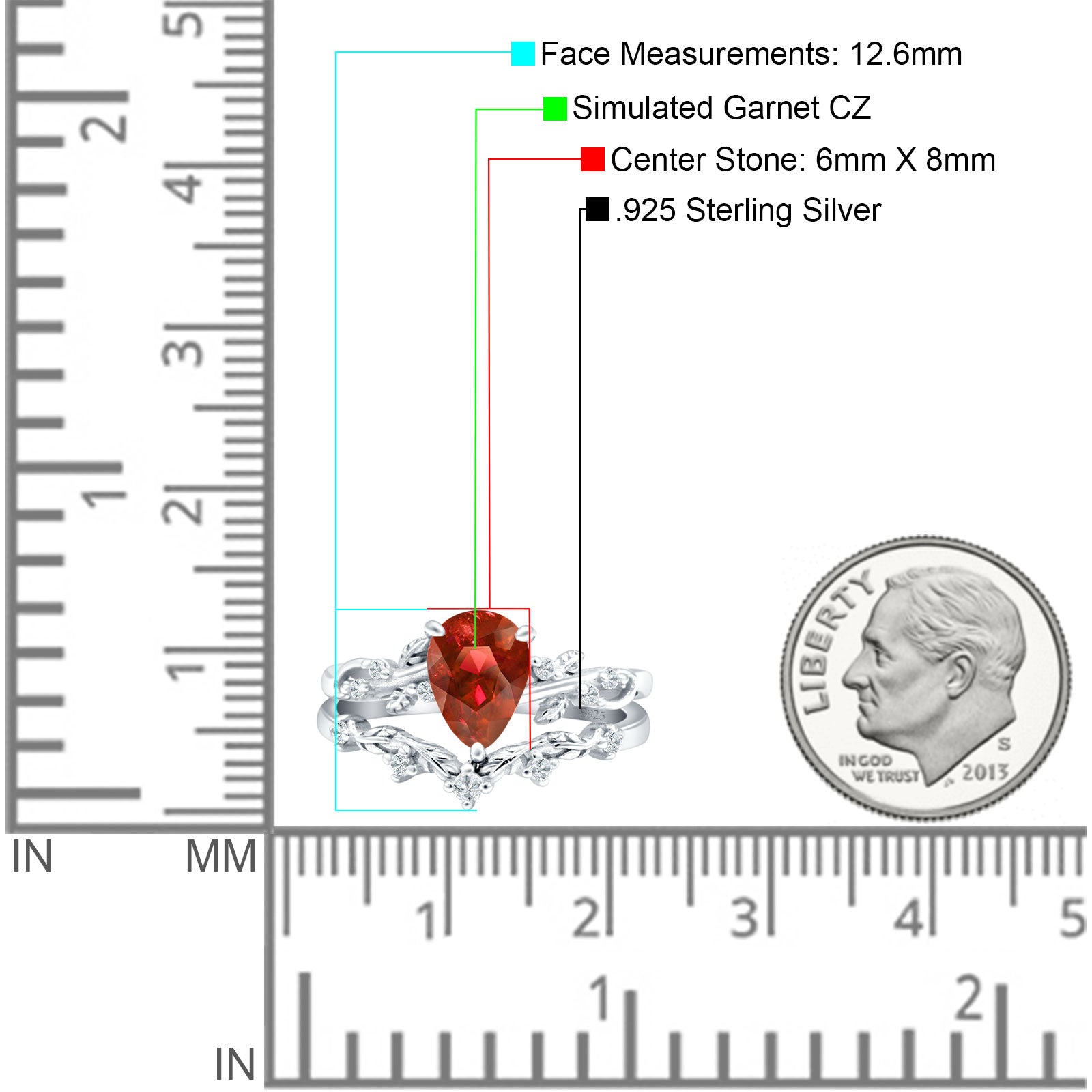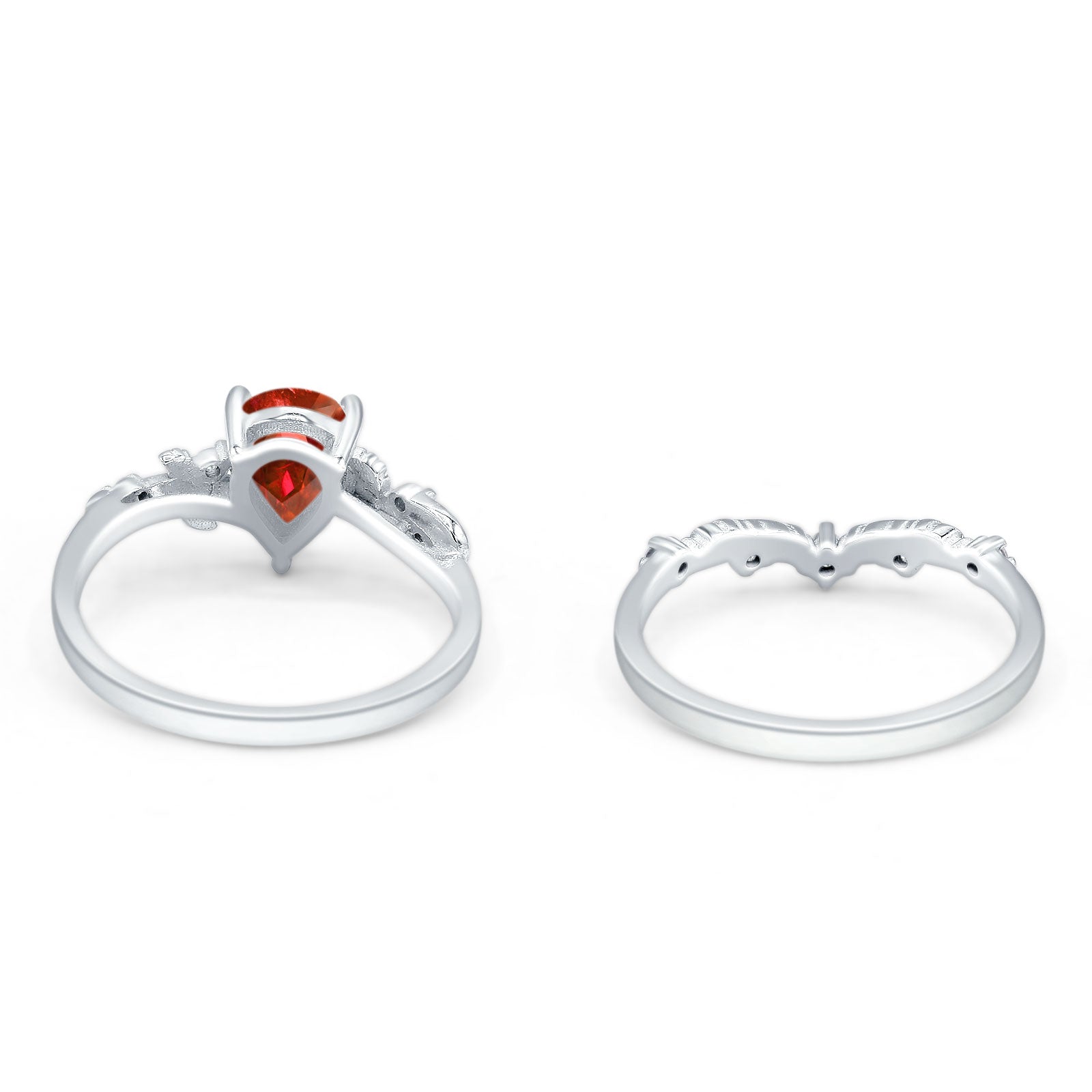 Two Piece Pear Garnet CZ Leaf Style Chevron Rings 925 Sterling Silver