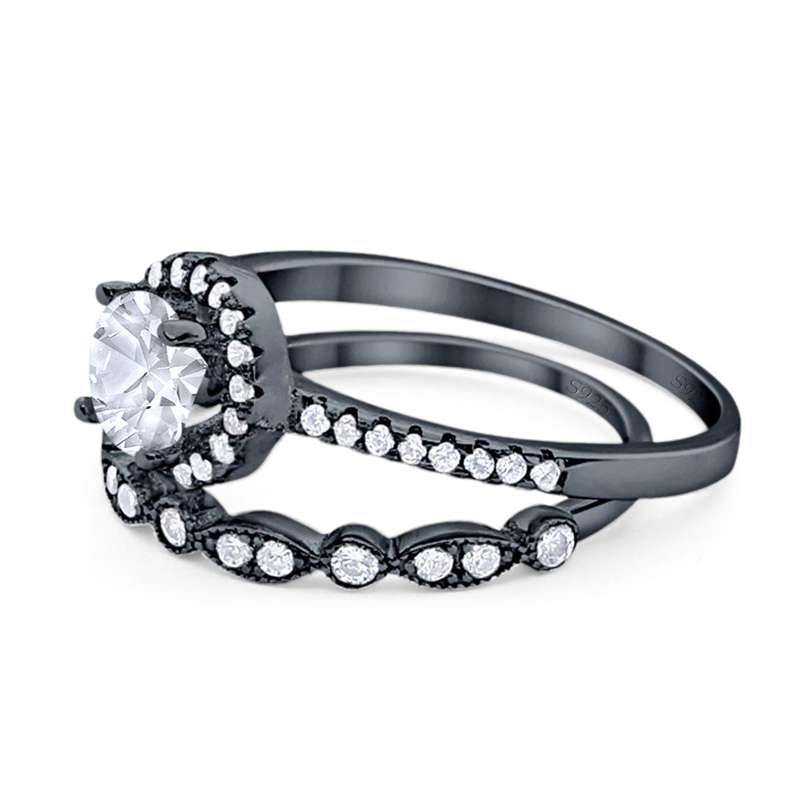 CZ & Blue Sapphire CZ Black Tone Silver