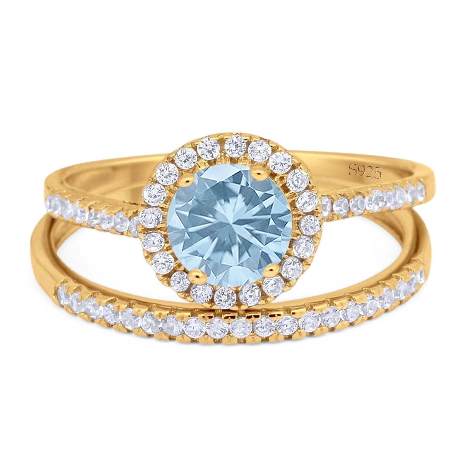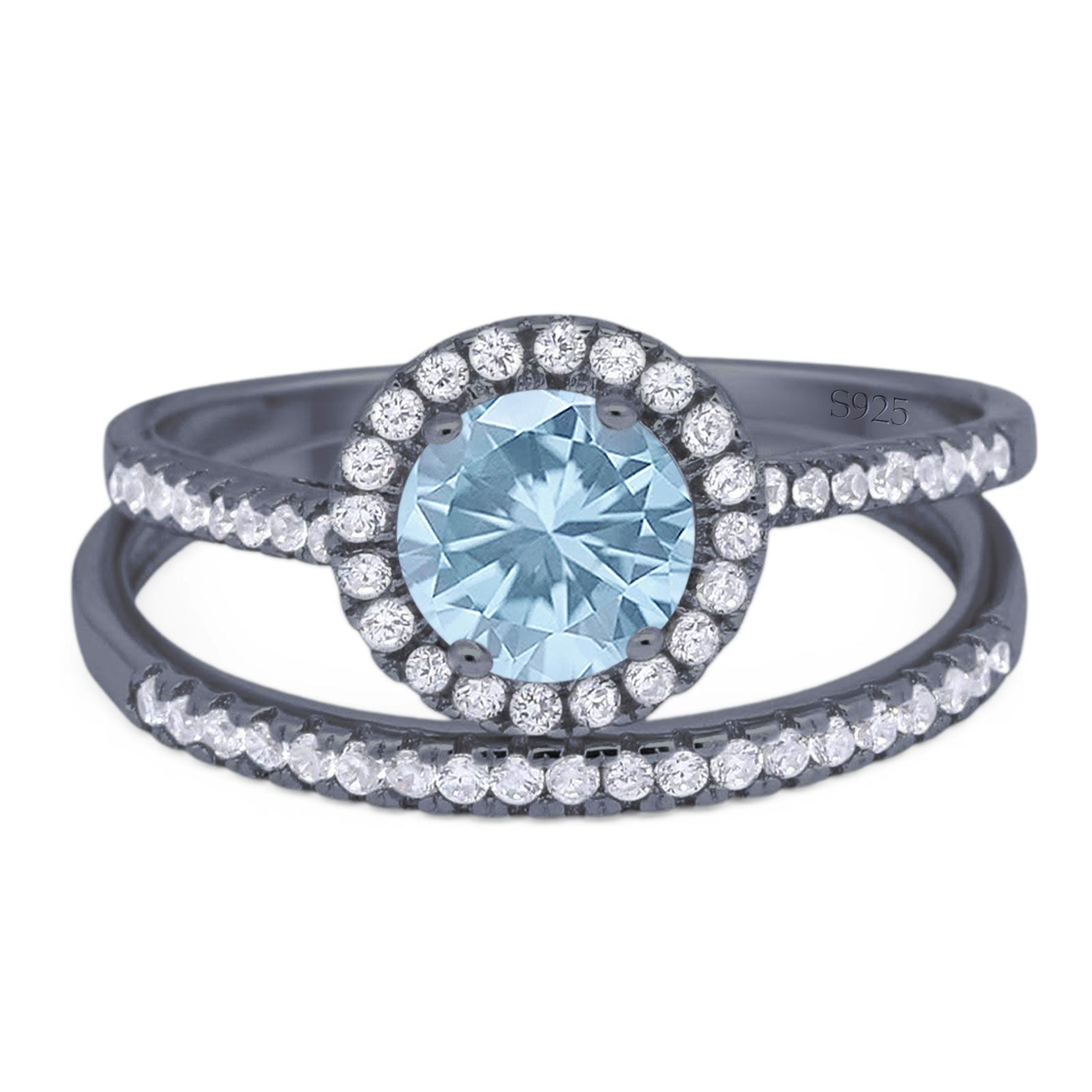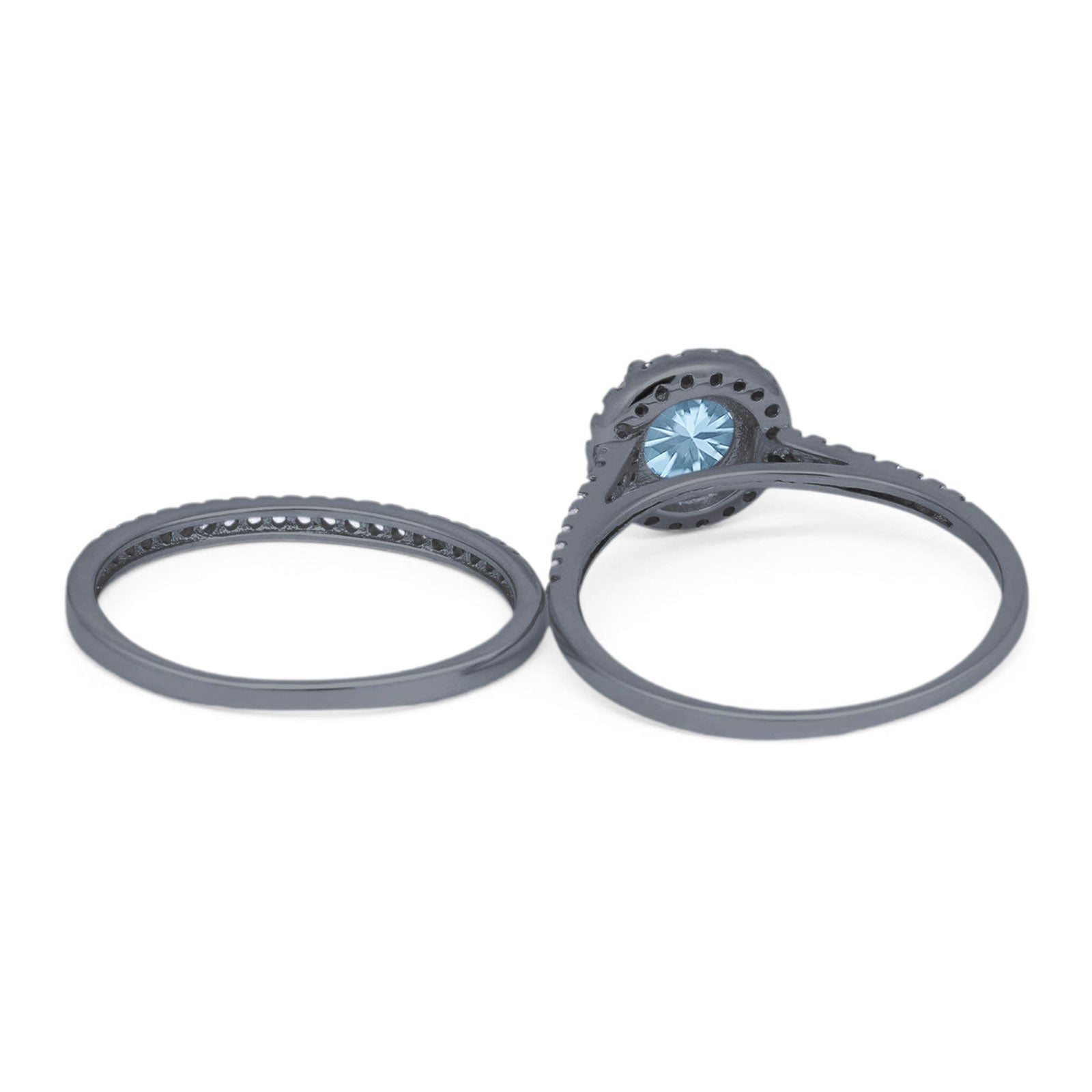 Two Piece Round Natural Aquamarine Wedding Set Ring 925 Sterling Silver