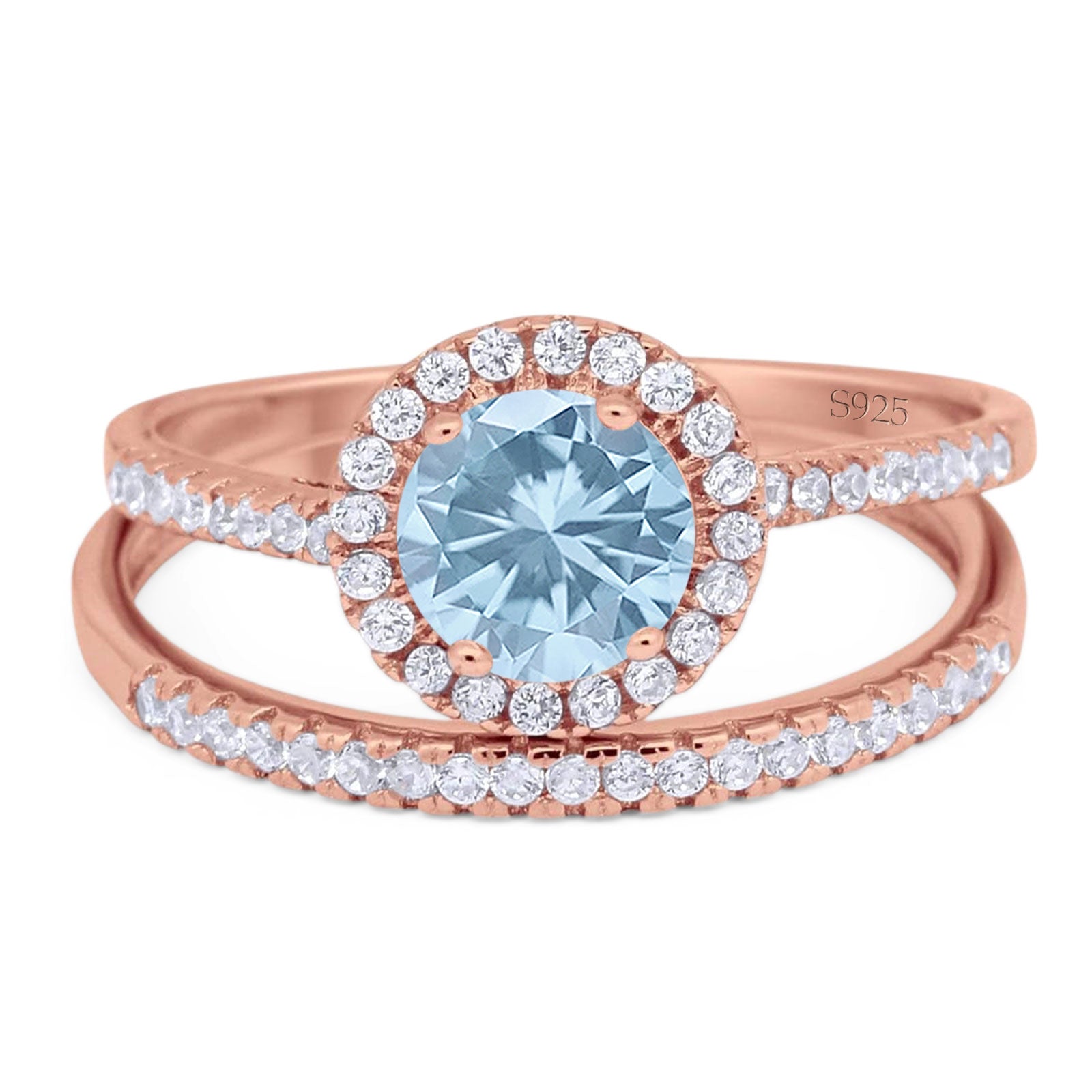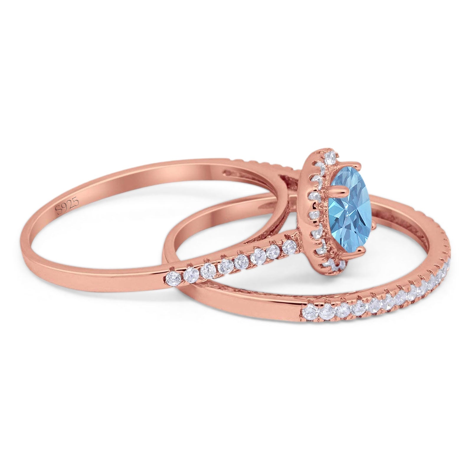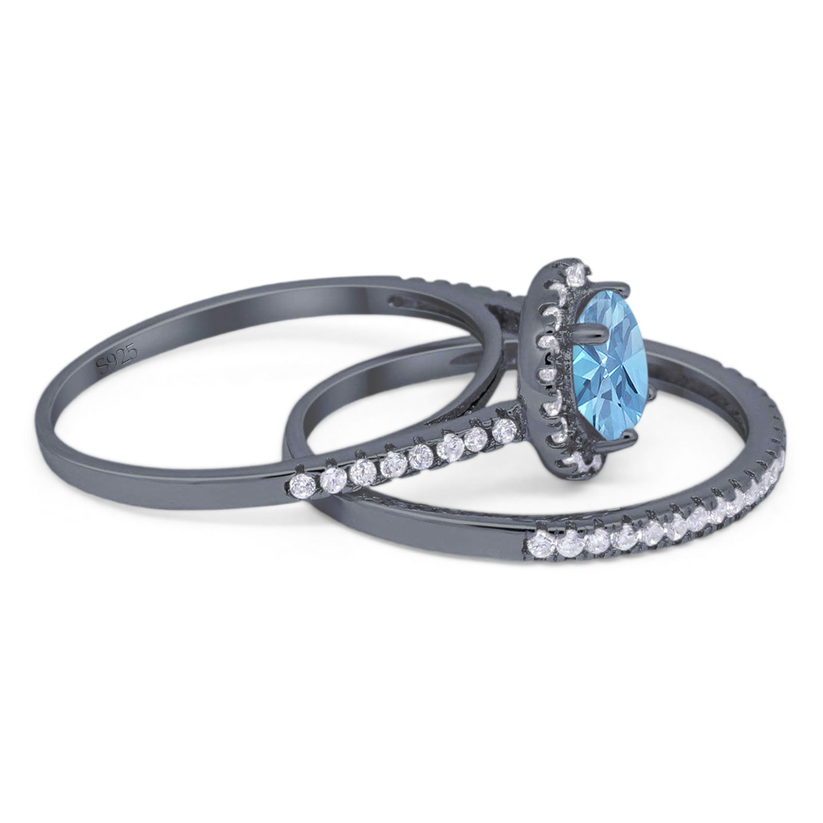 Two Piece Round Natural Aquamarine Wedding Set Ring 925 Sterling Silver