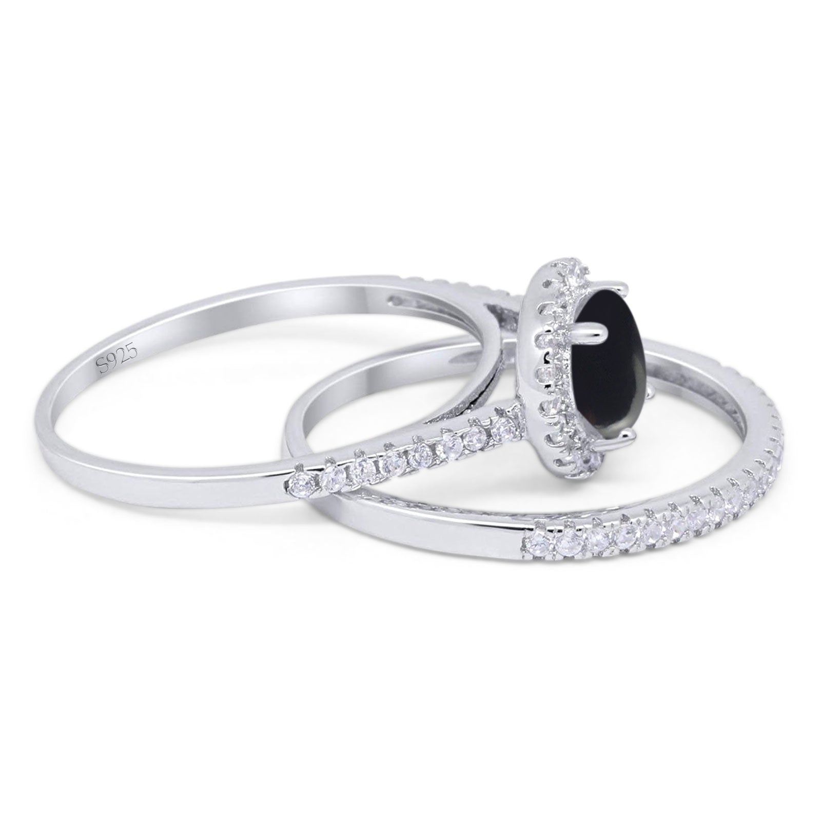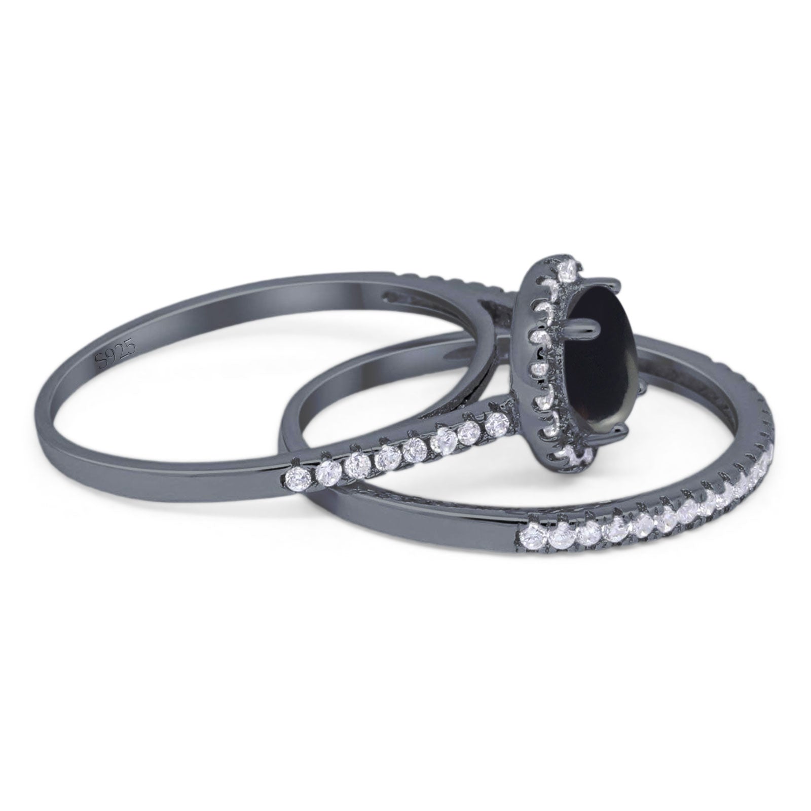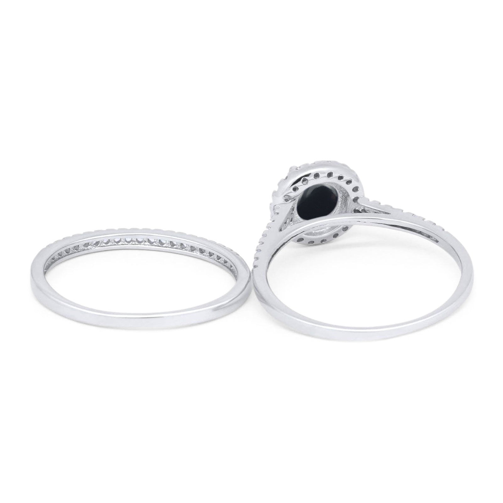 Two Piece Round Natural Black Onyx Wedding Set Ring 925 Sterling Silver