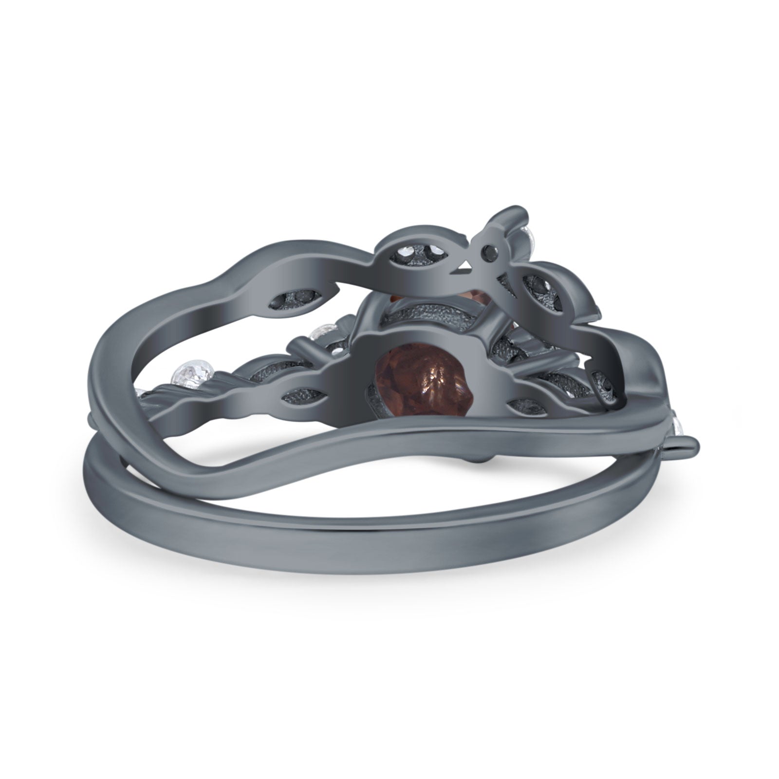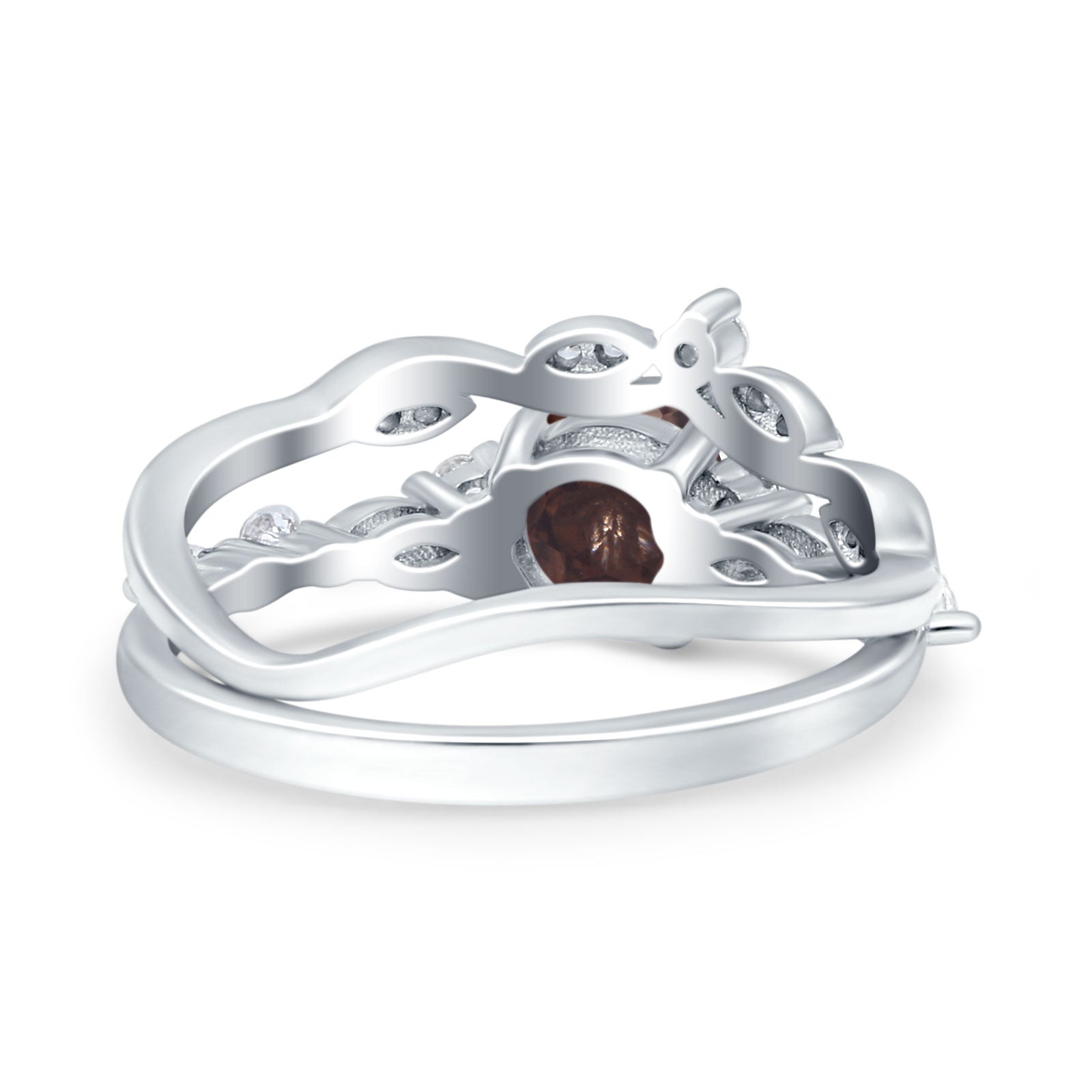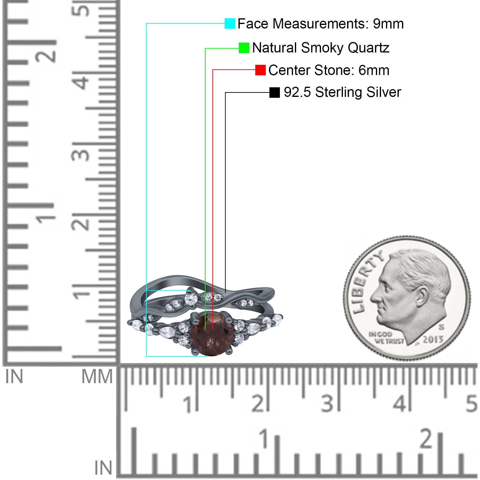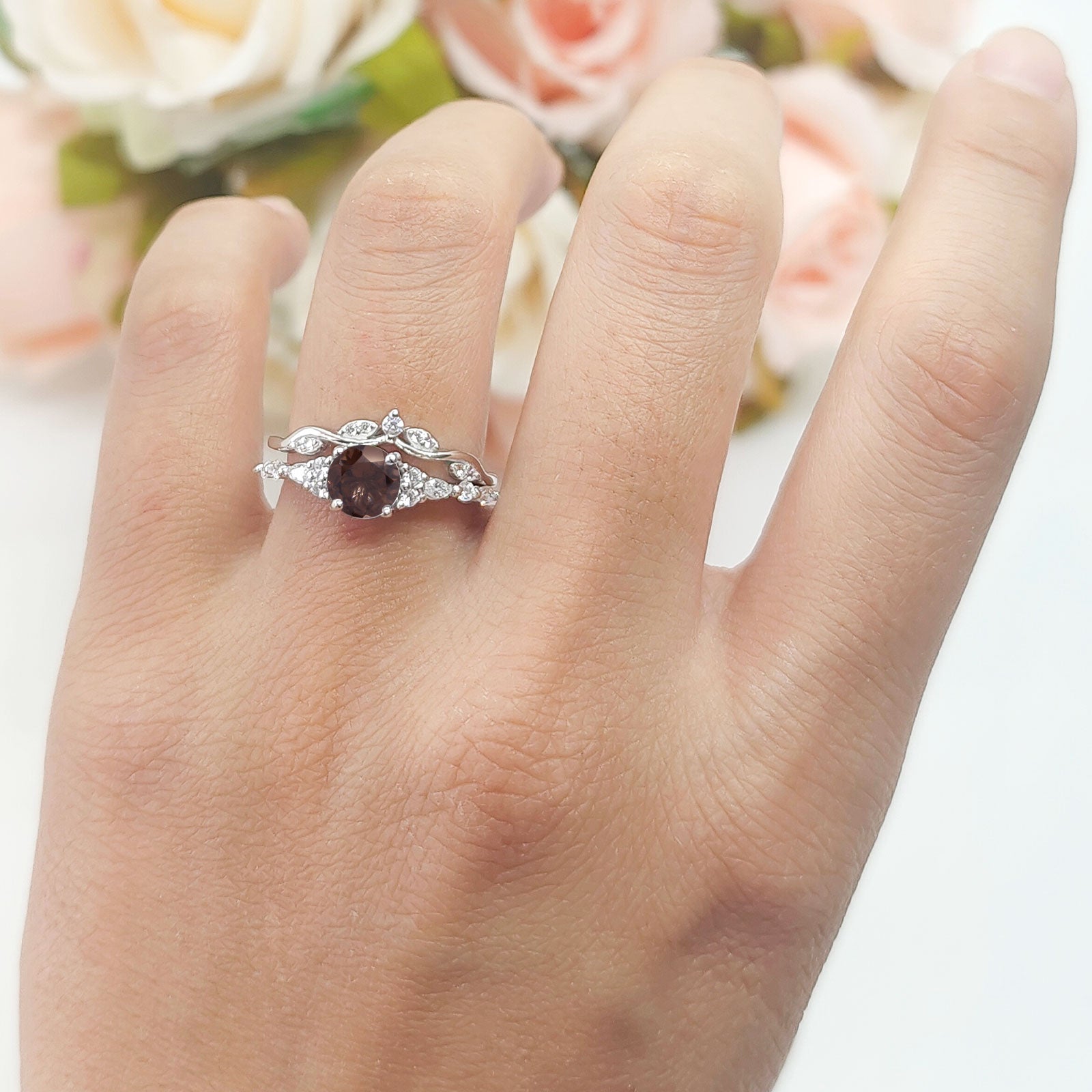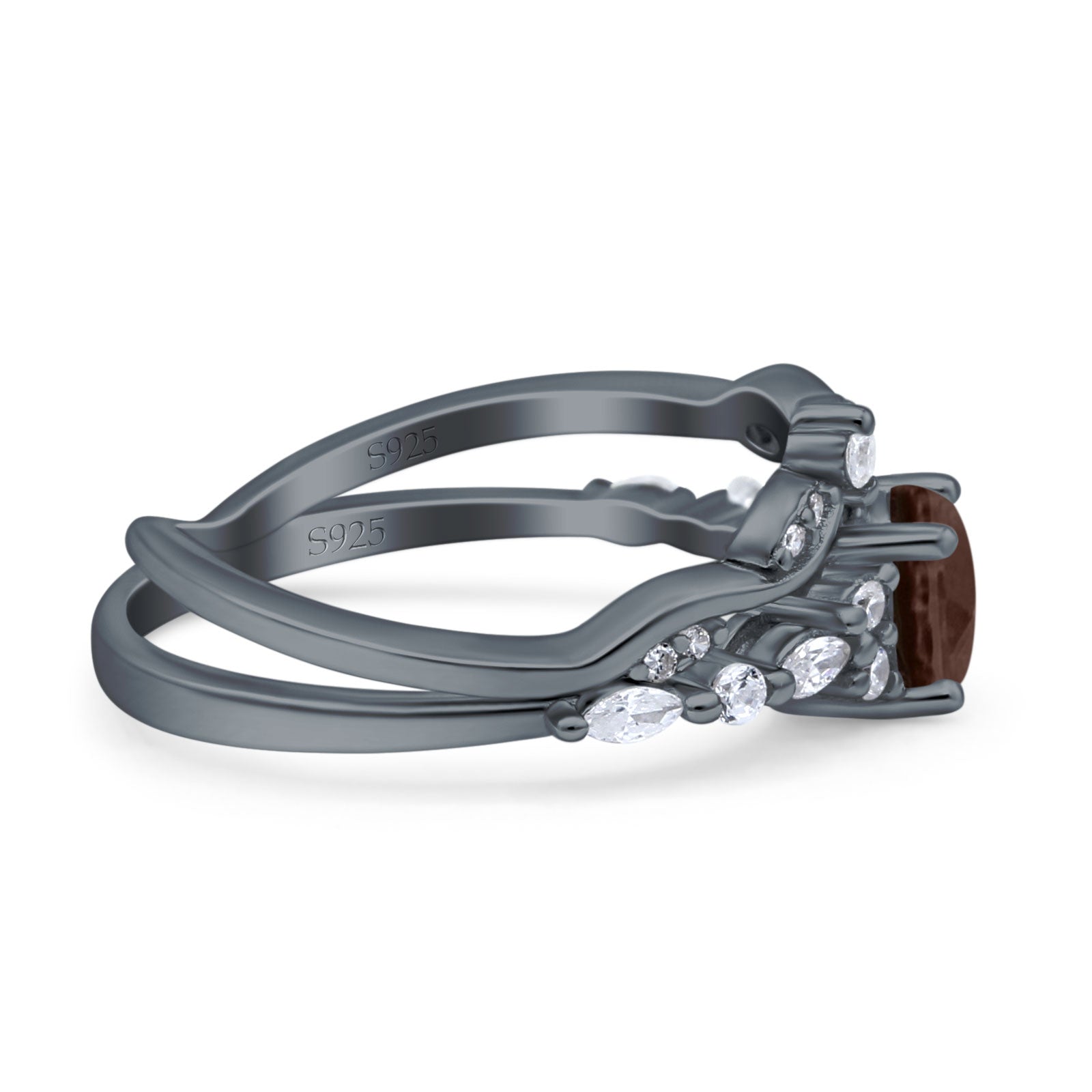 Two Piece Round Natural Chocolate Smoky Quartz Marquise Style Bridal Ring 925 Sterling Silver