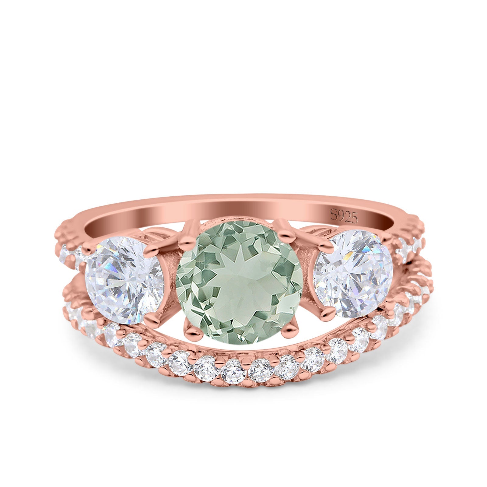 Natural Green Amethyst Prasiolite Engagement Ring
