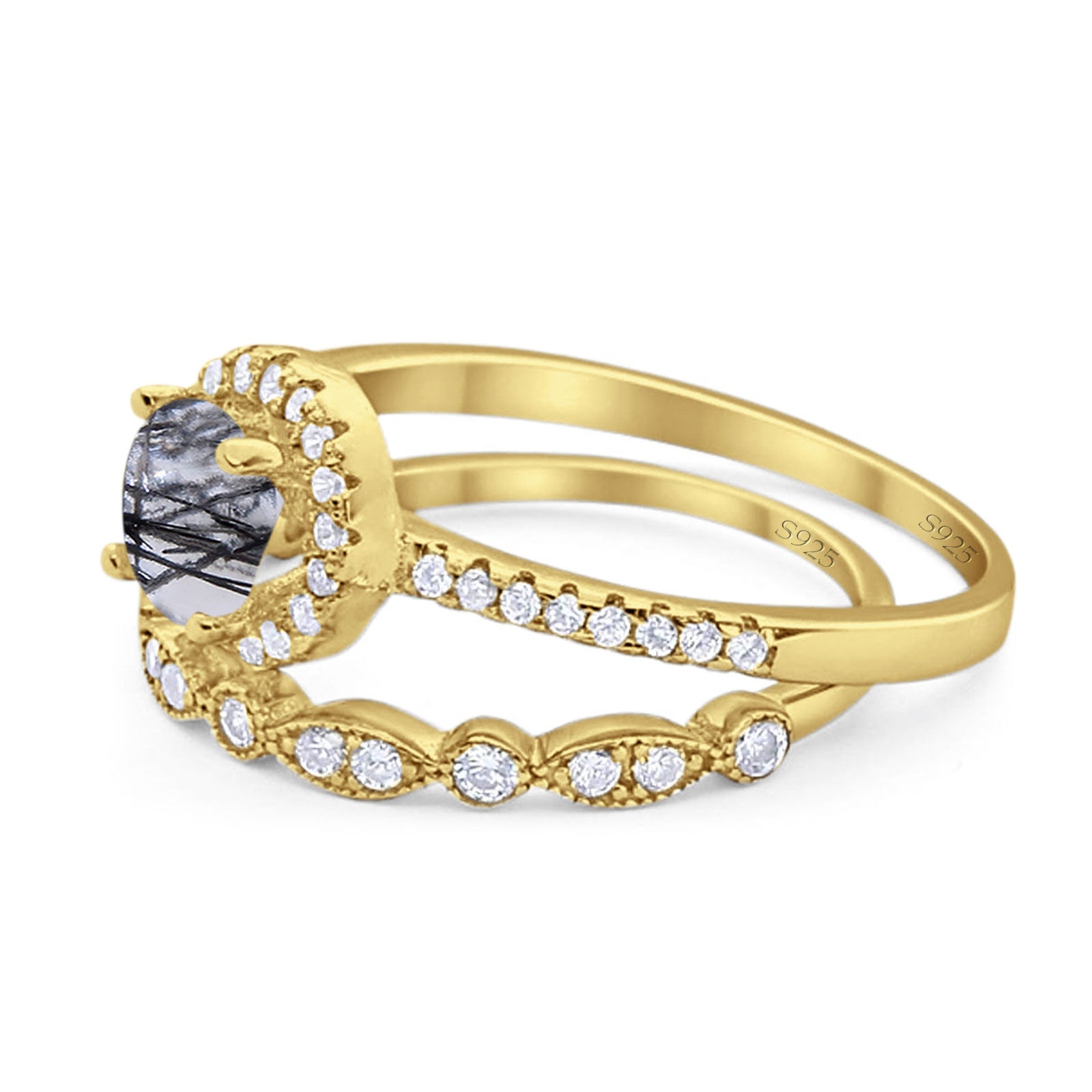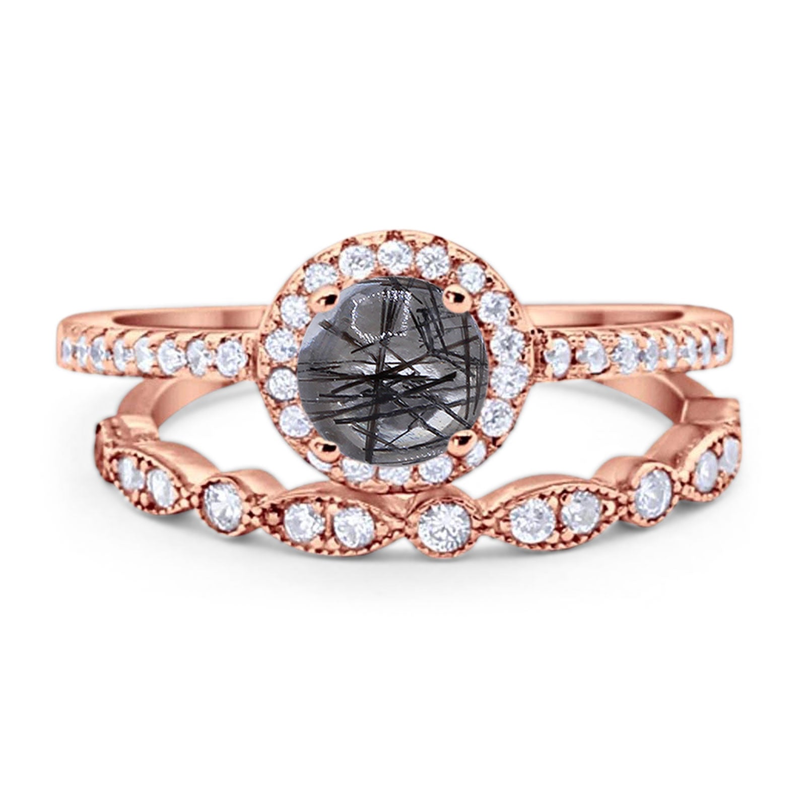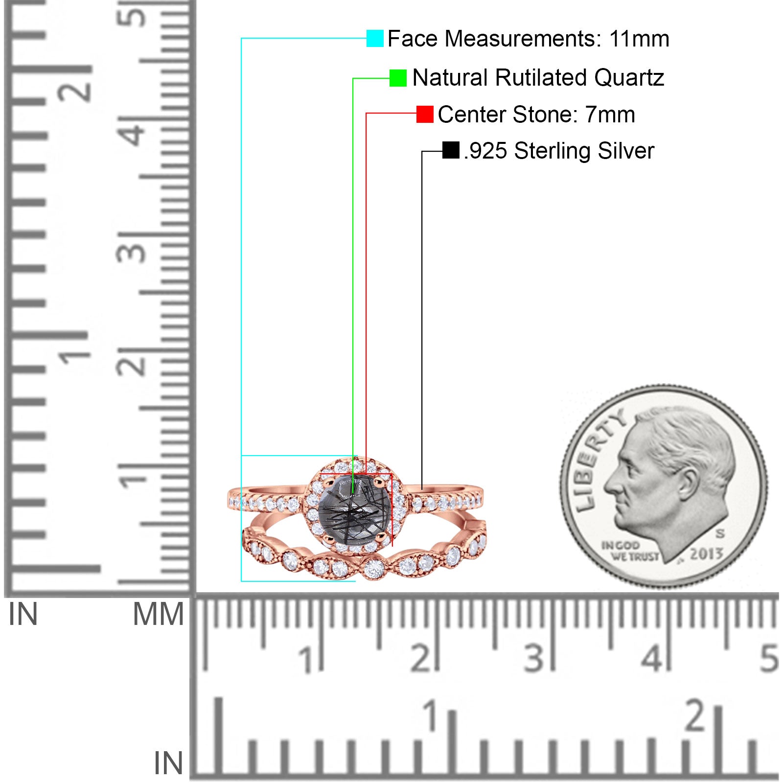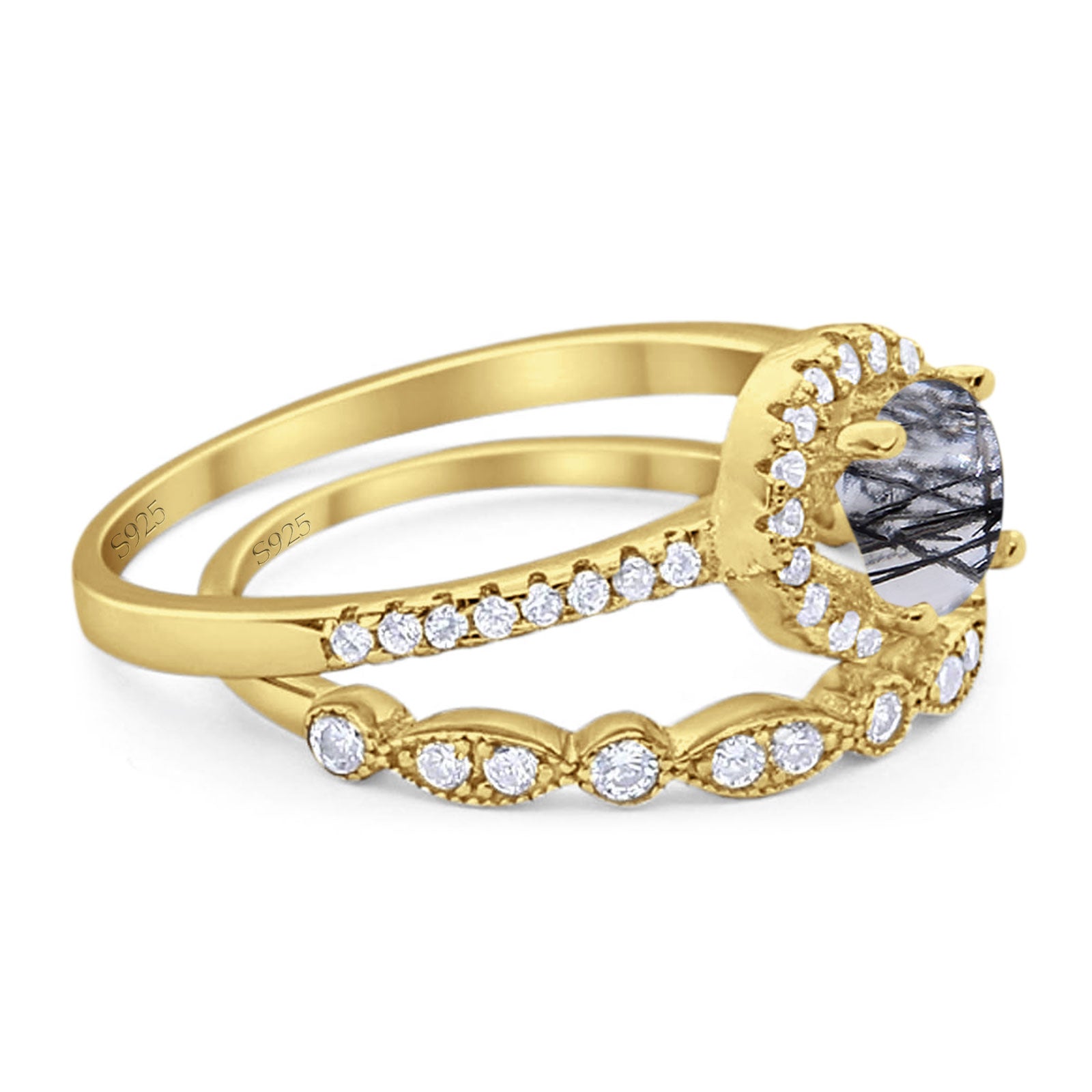 Two Piece Round Natural Rutilated Quartz Bridal Ring 925 Sterling Silver