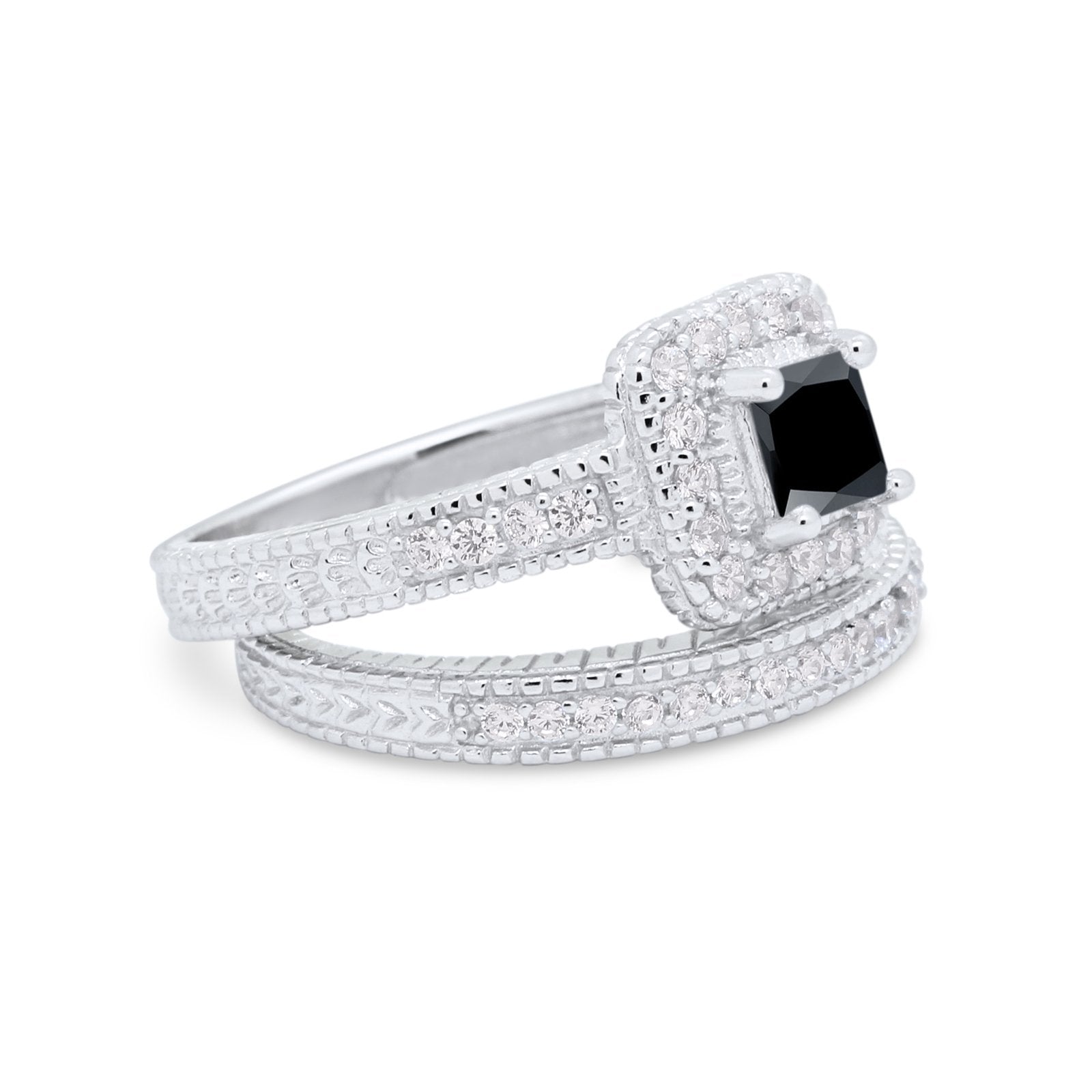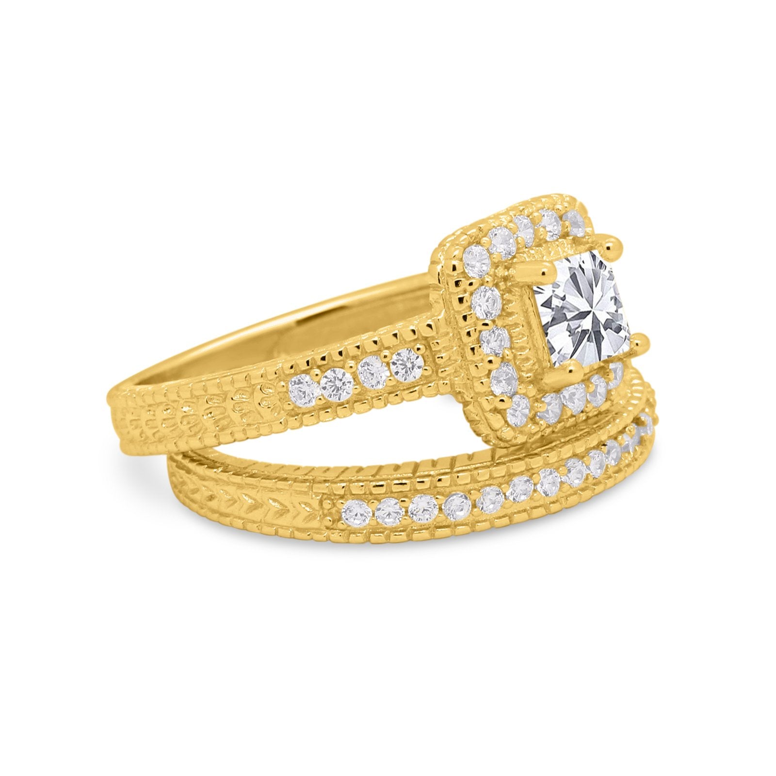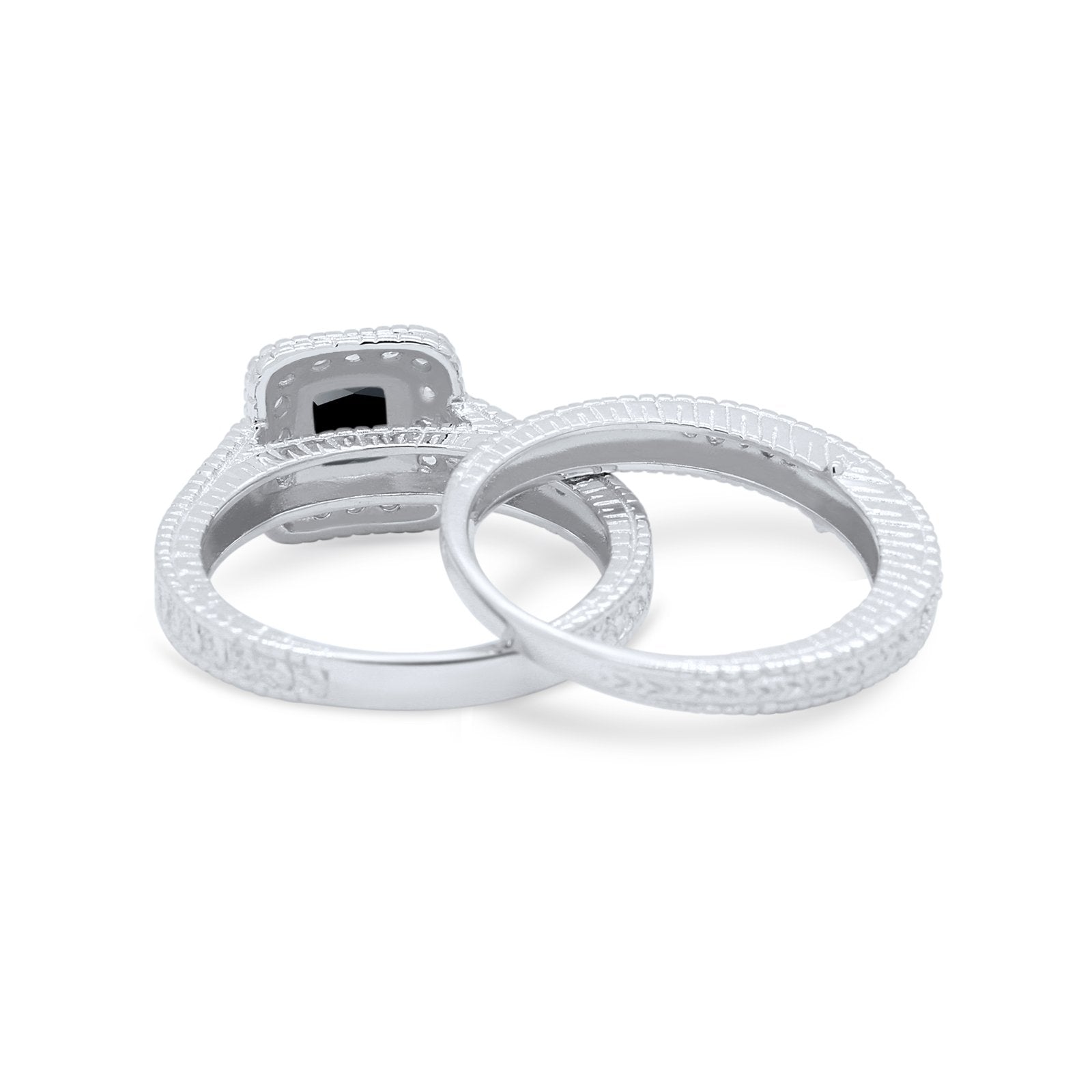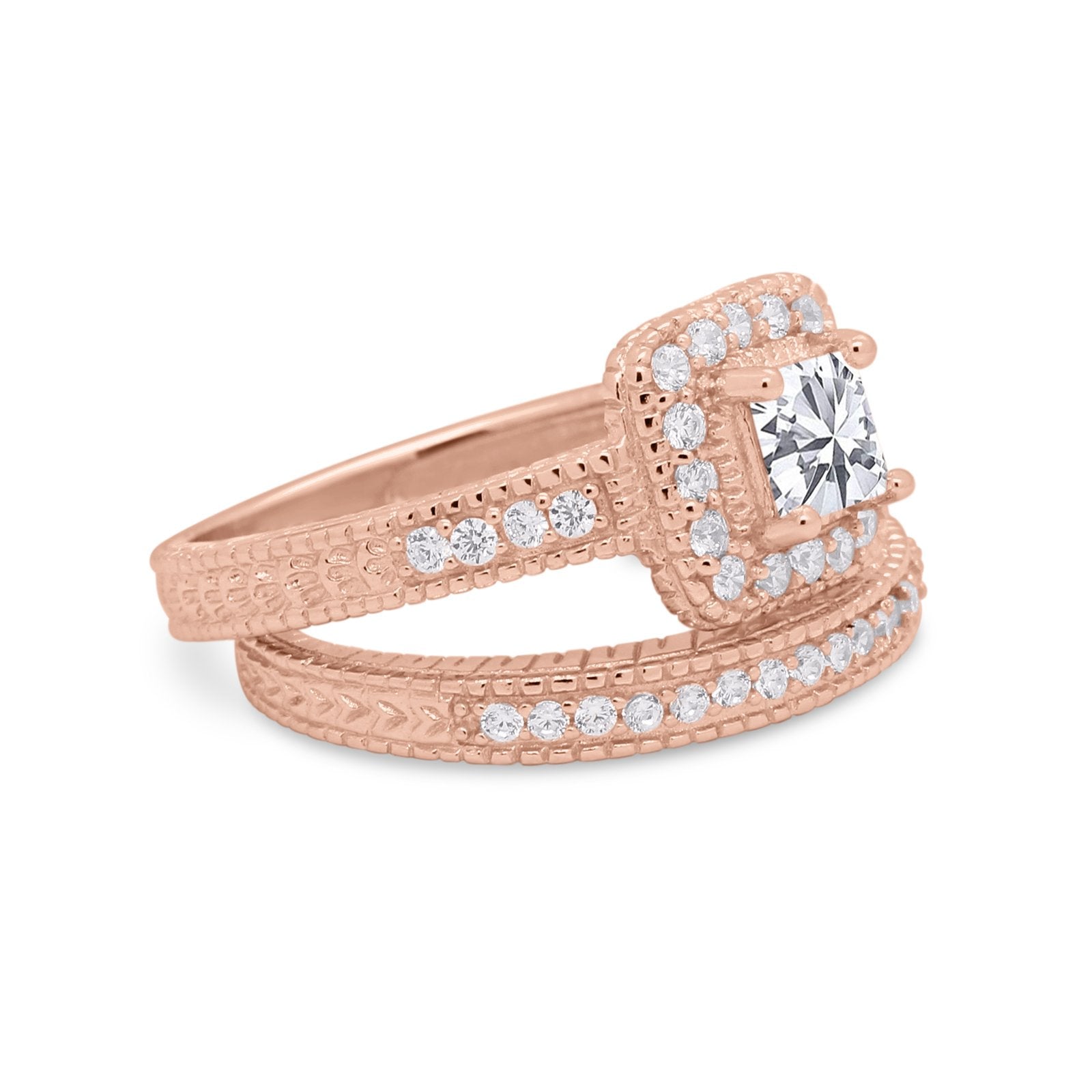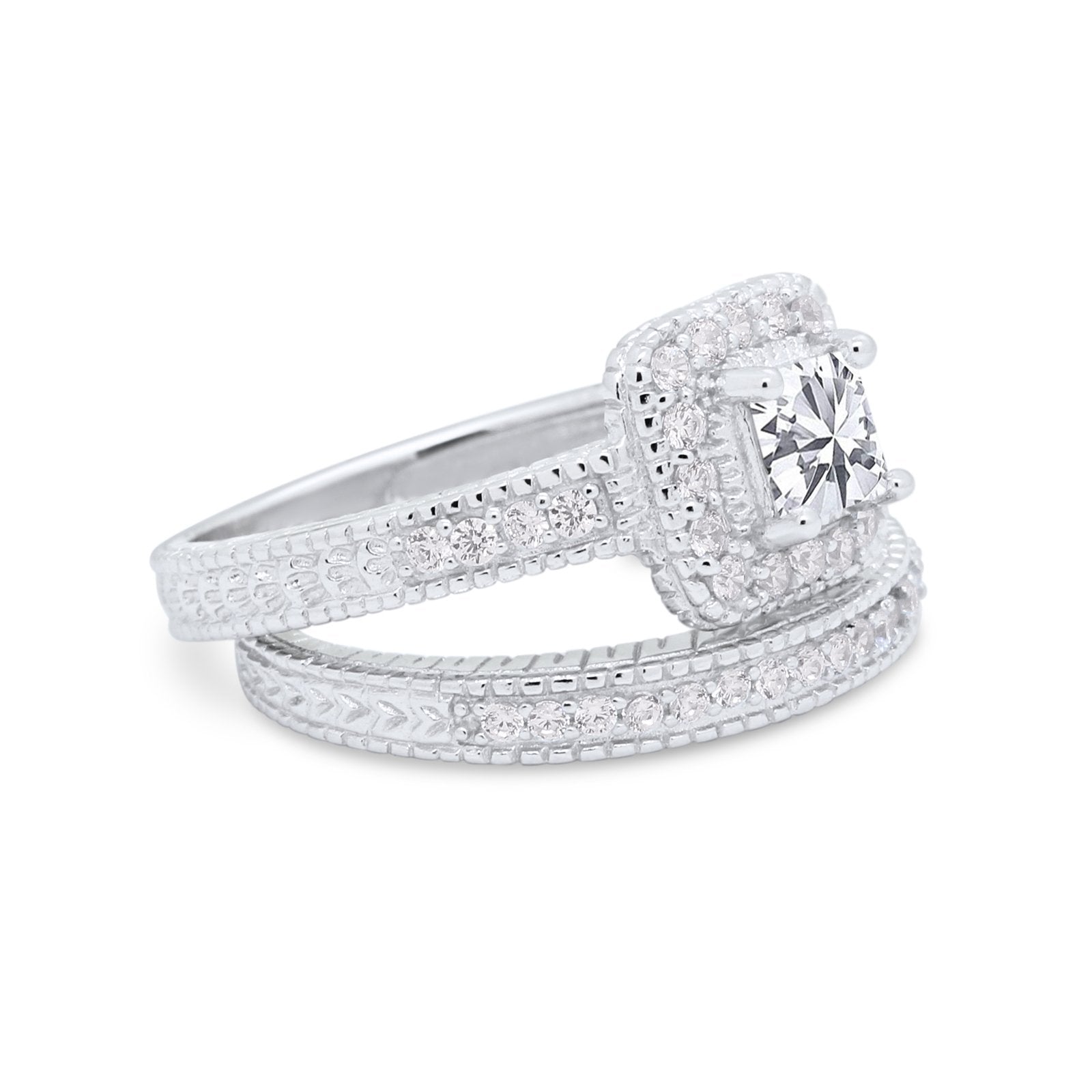Two Piece Vintage Style Wedding Ring 925 Sterling Silver Simulated Cubic Zirconia