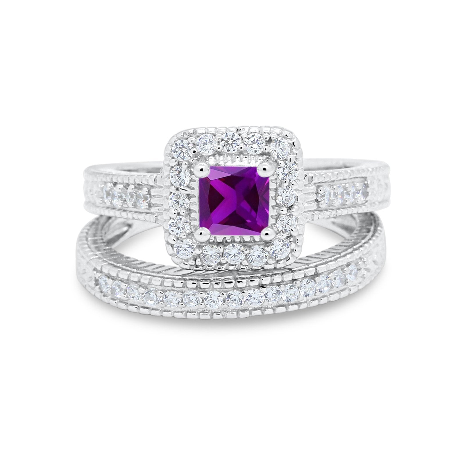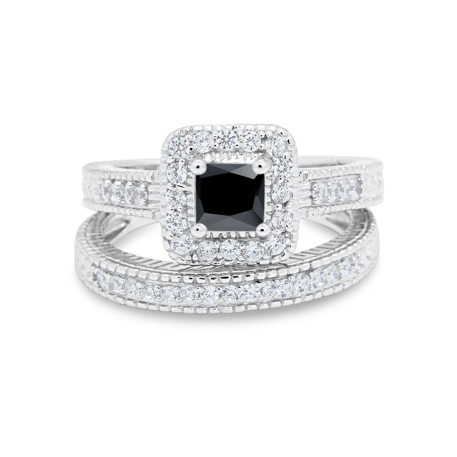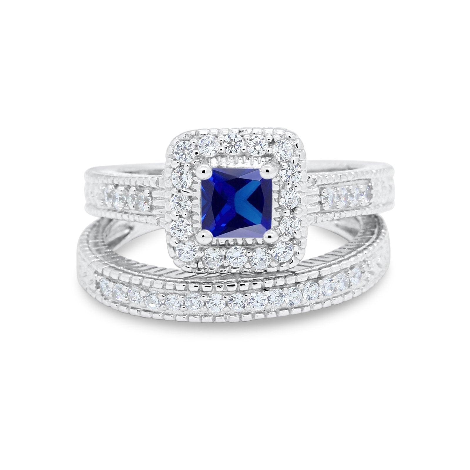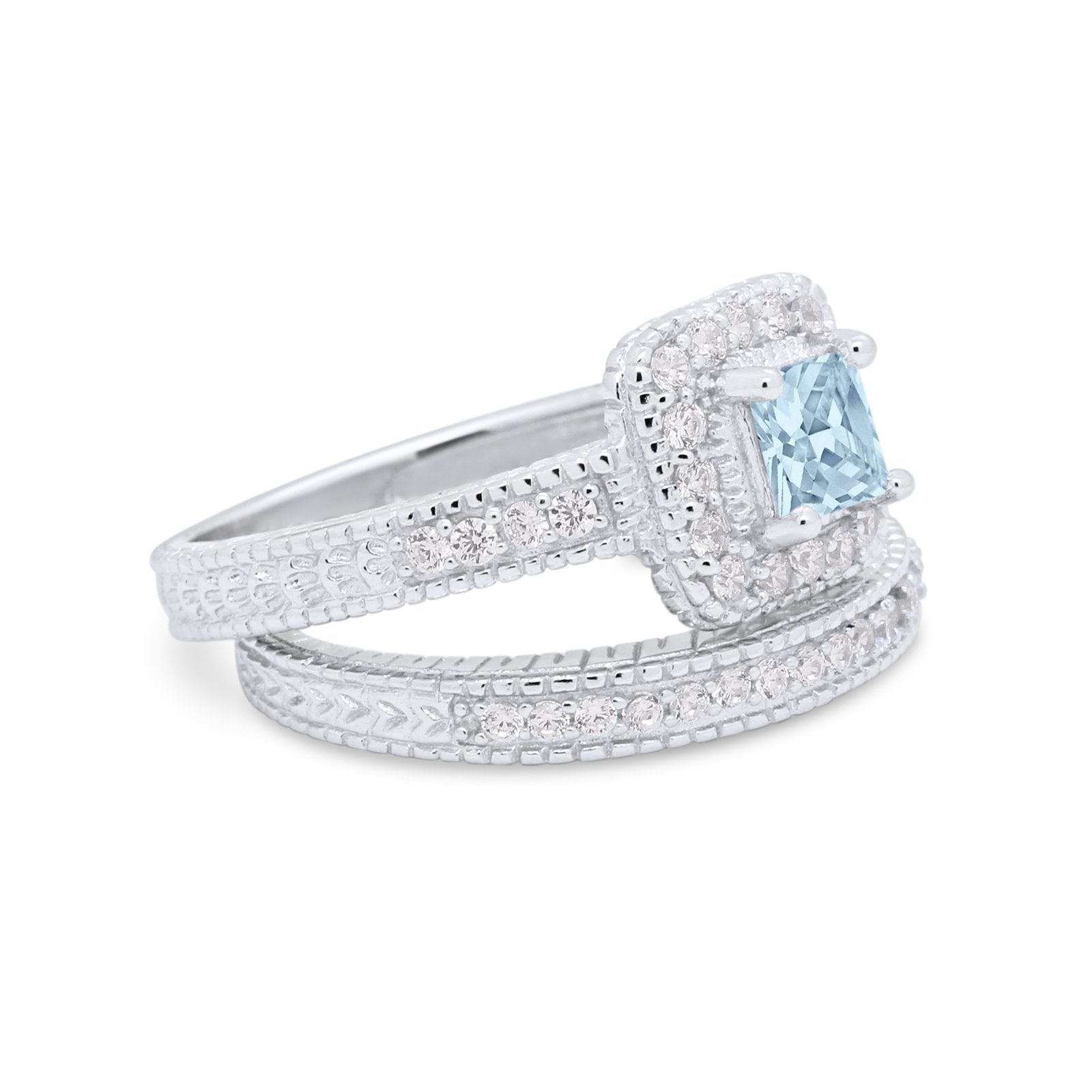 Two Piece Vintage Style Wedding Ring 925 Sterling Silver Simulated Cubic Zirconia
