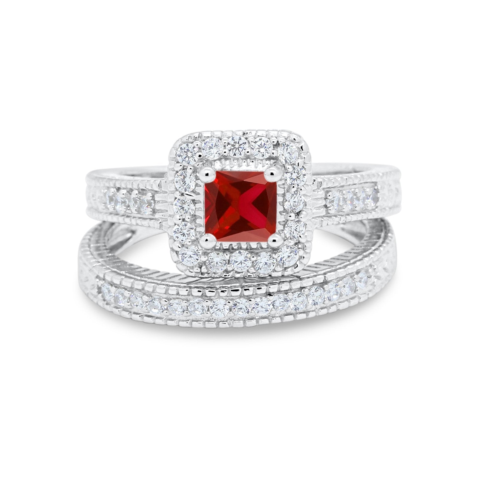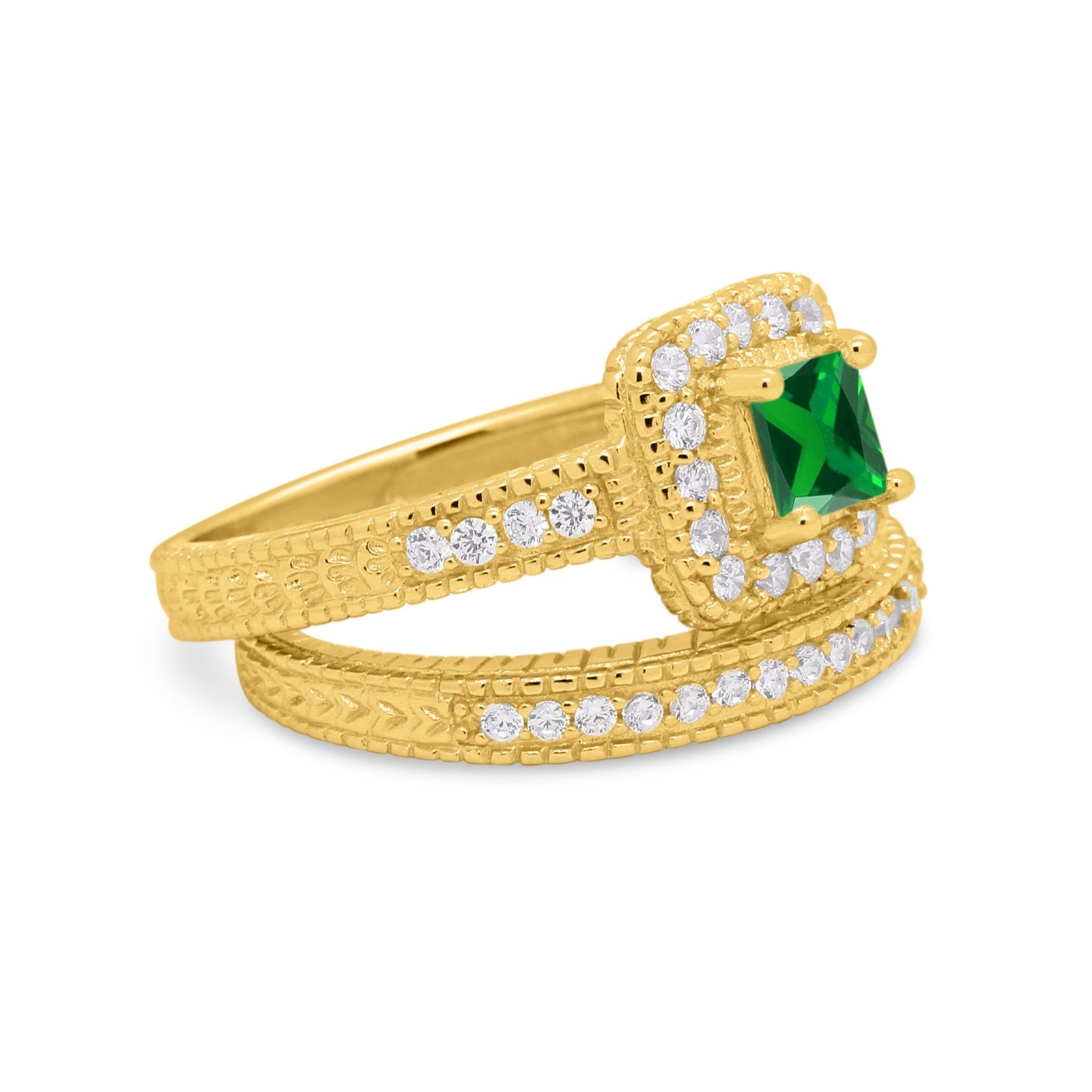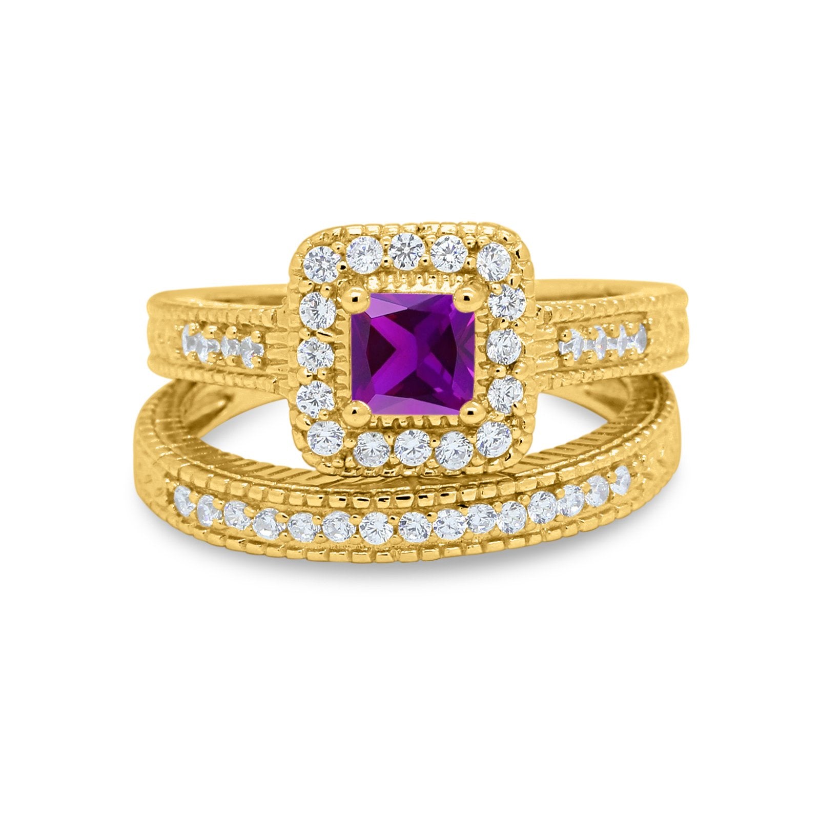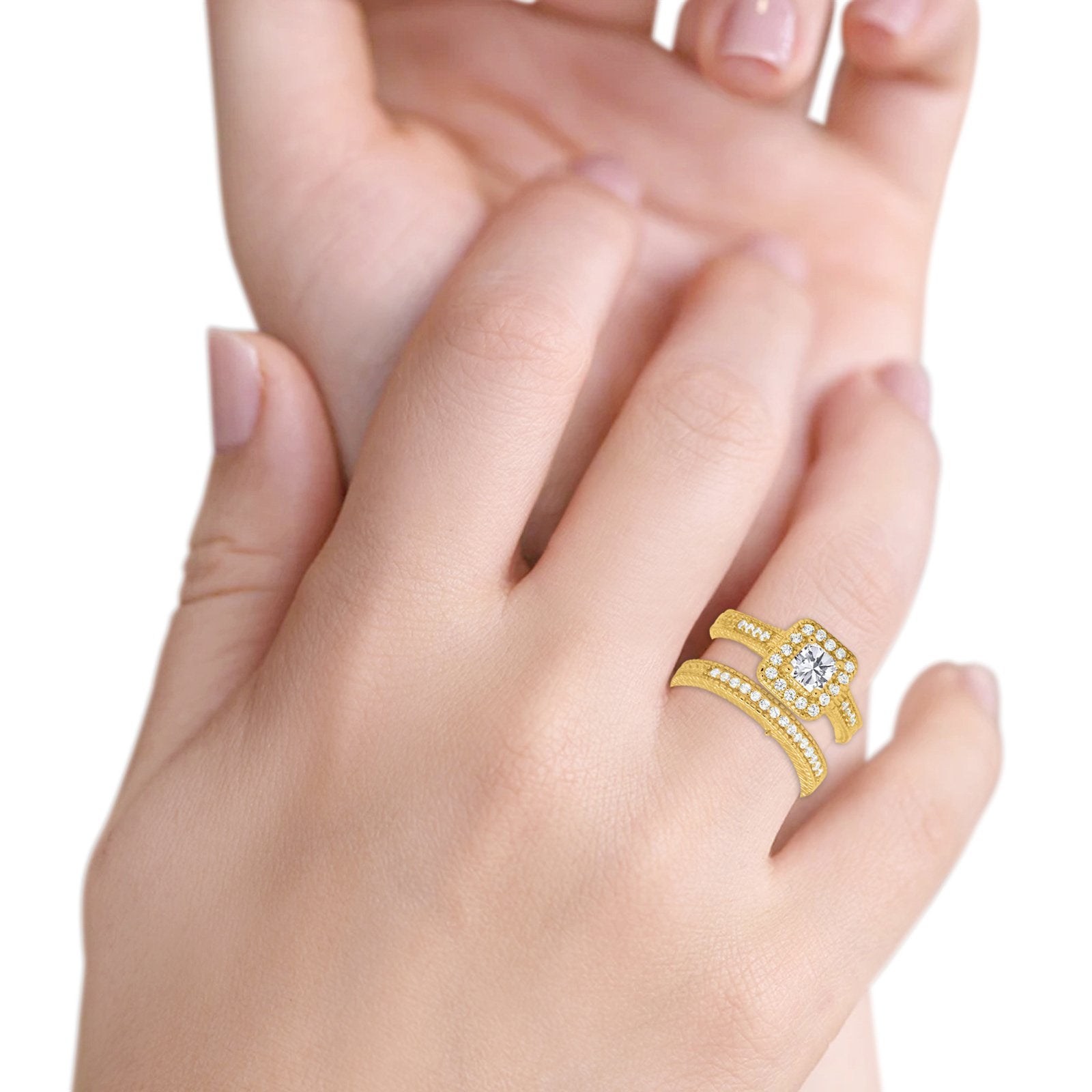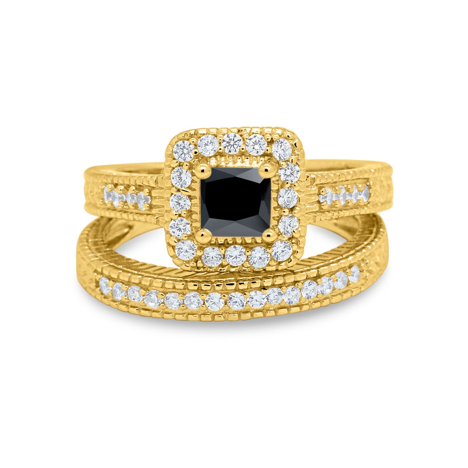 Two Piece Vintage Style Wedding Ring 925 Sterling Silver Simulated Cubic Zirconia