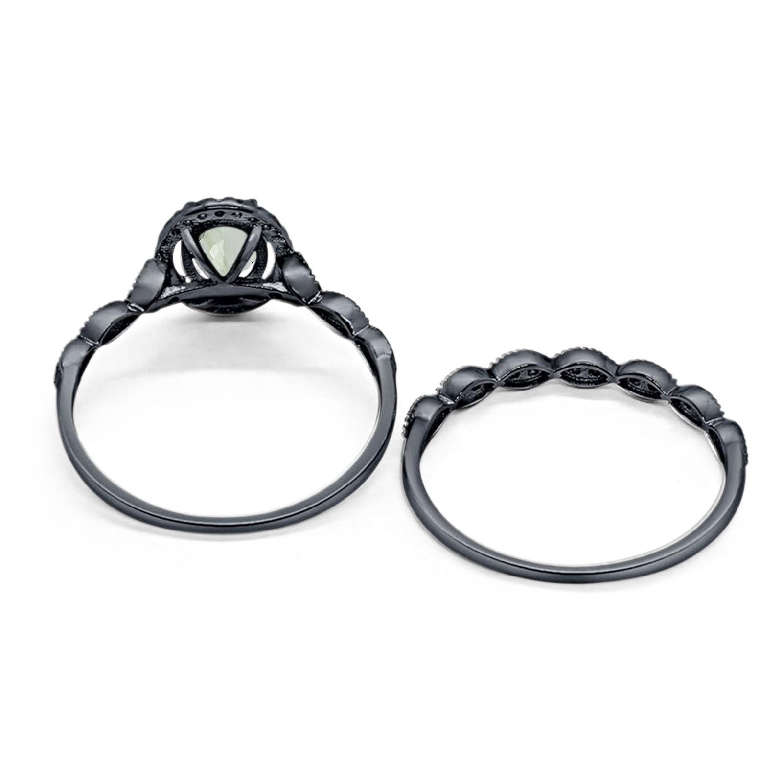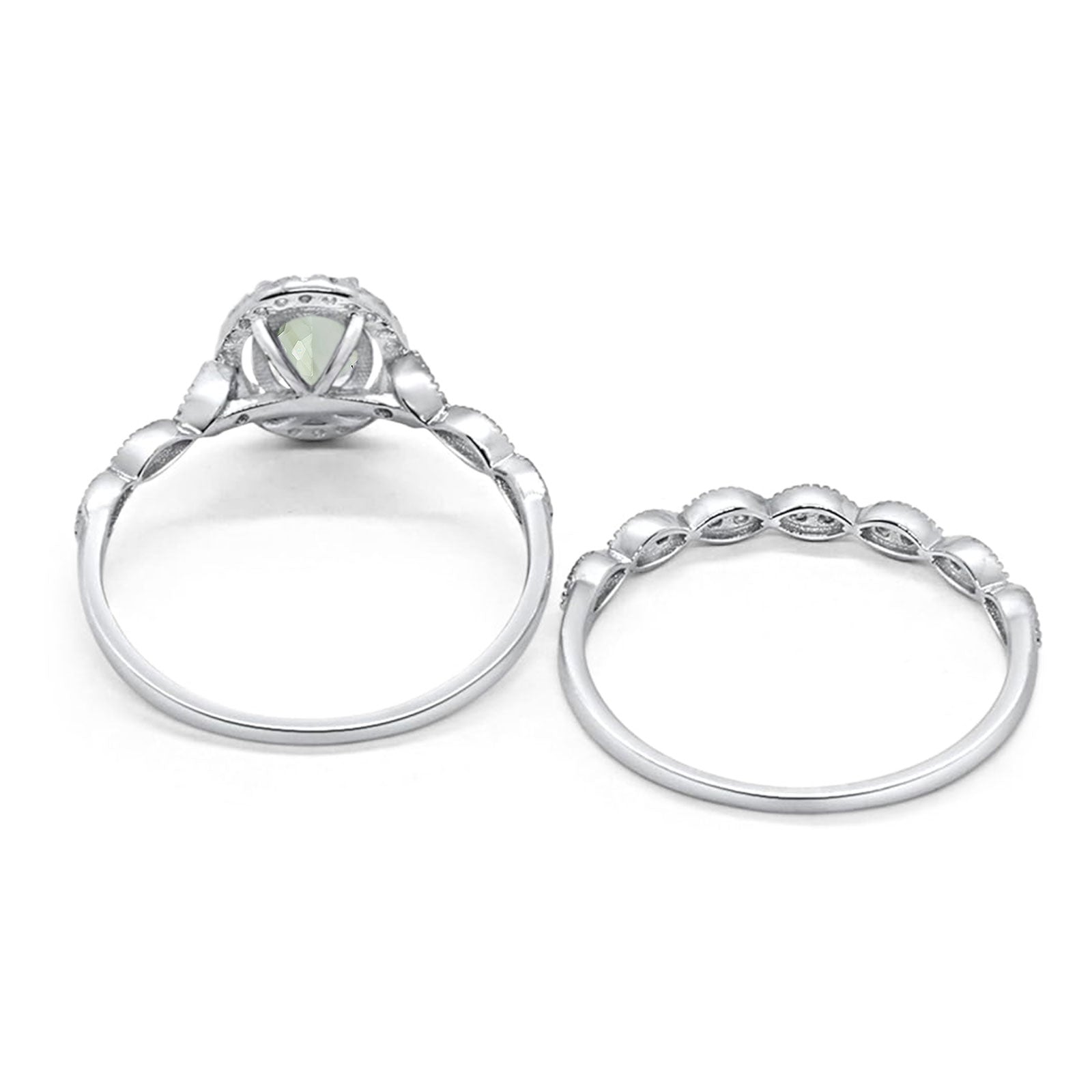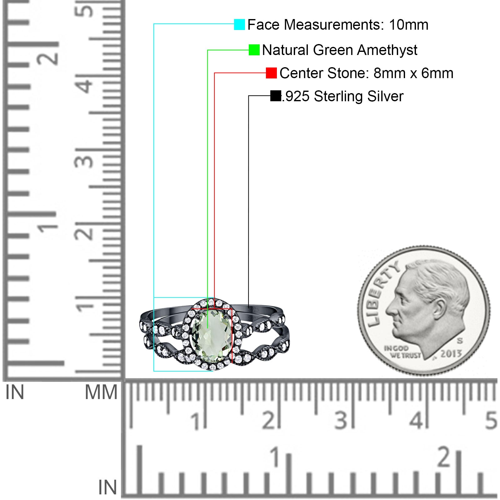 Vintage Style Two Piece Oval Natural Green Amethyst Prasiolite Bridal Set Ring 925 Sterling Silver