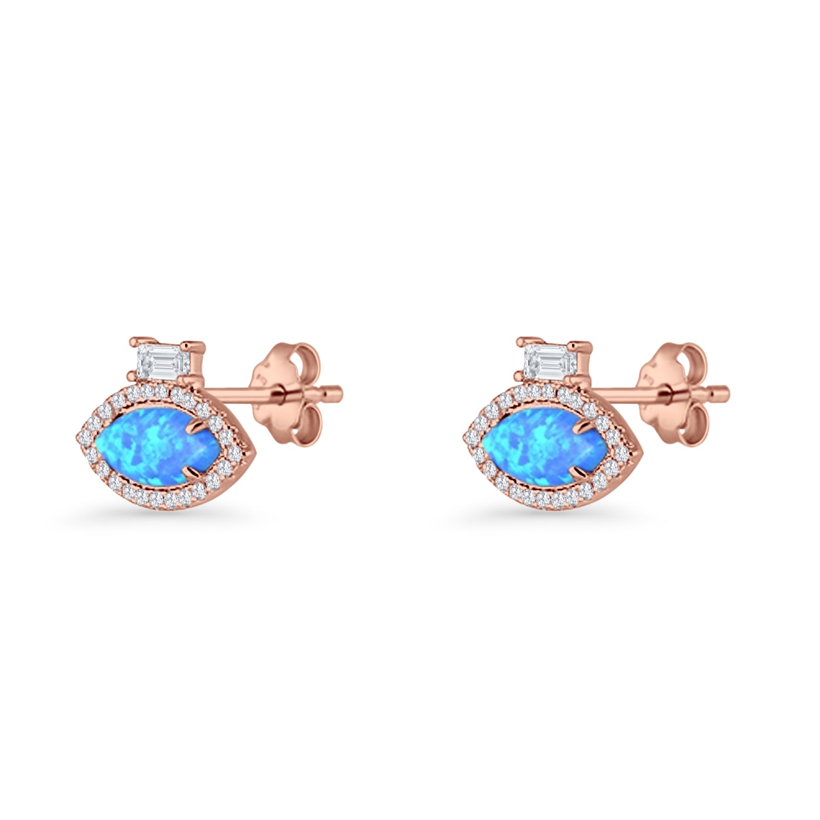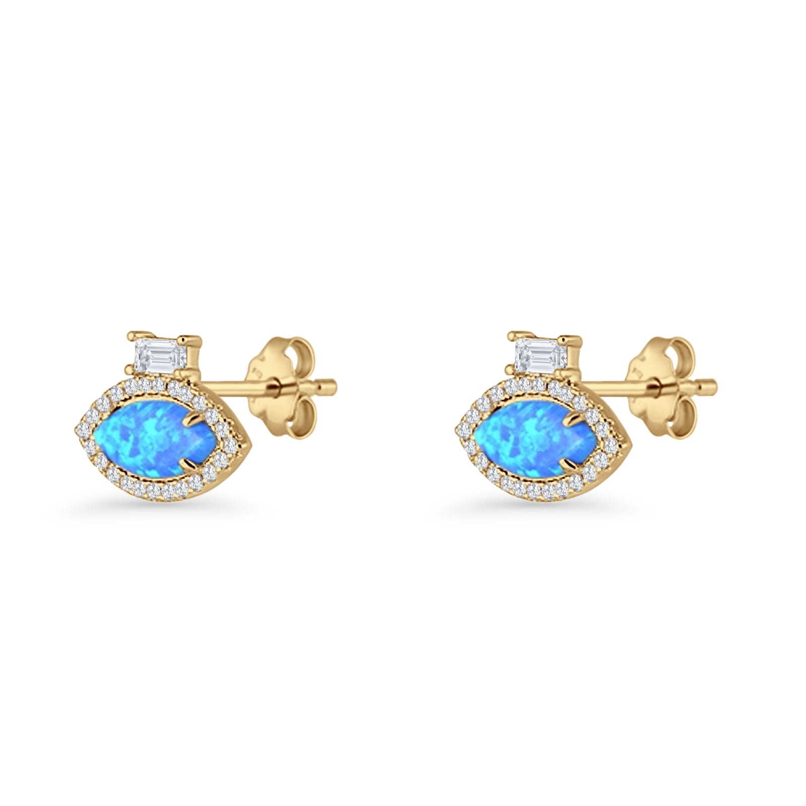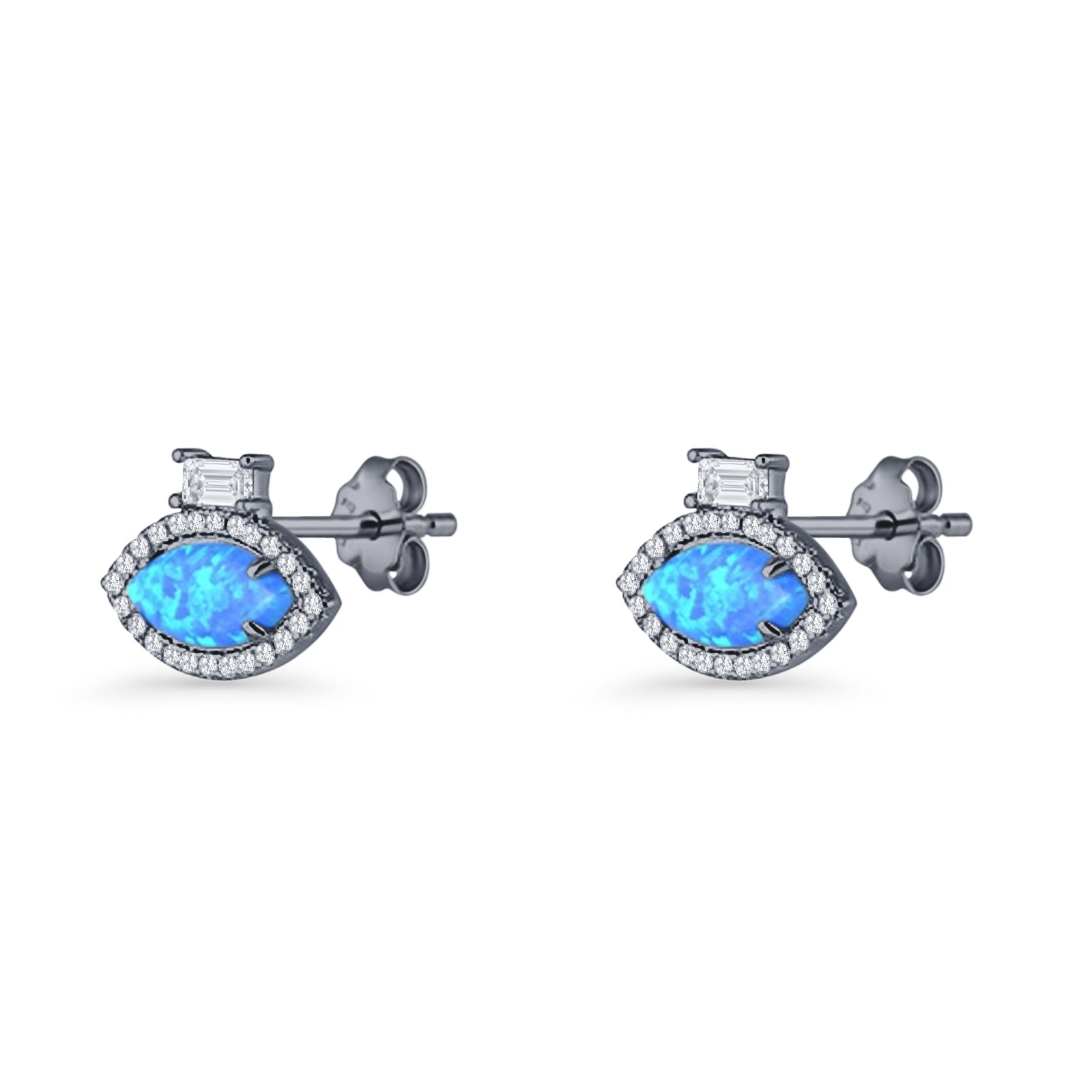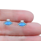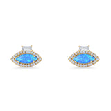 Evil Eye Stud Earrings Marquise Blue Opal & Baguette Cubic Zirconia 925 Sterling Silver