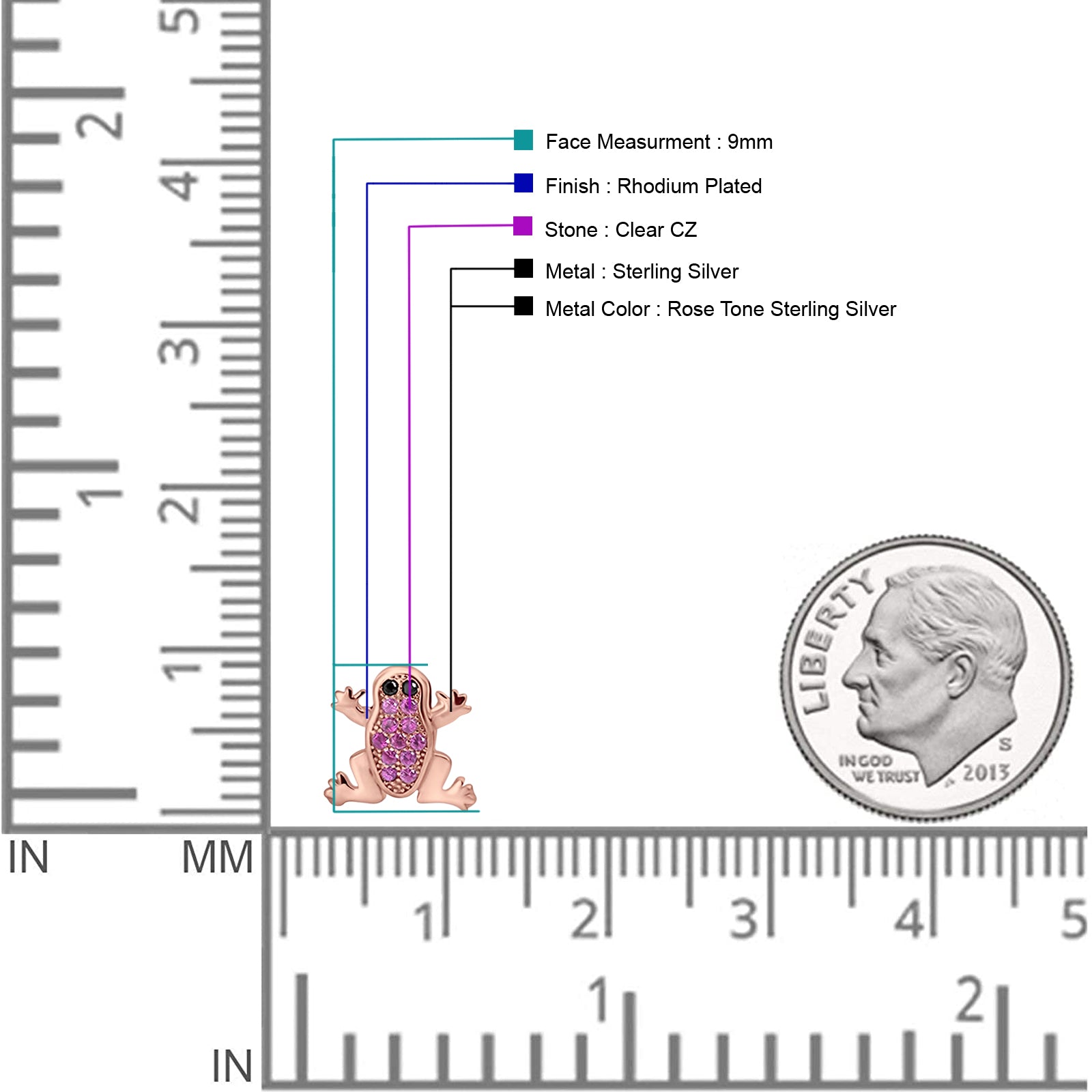 Frog Stud Earrings 9mm Cluster Cubic Zirconia 925 Sterling Silver