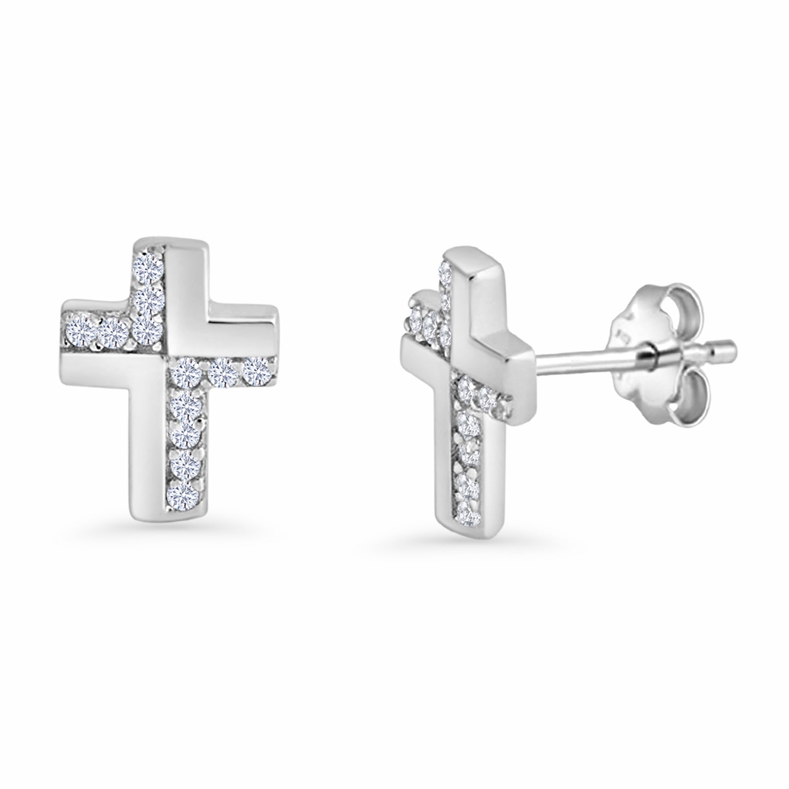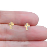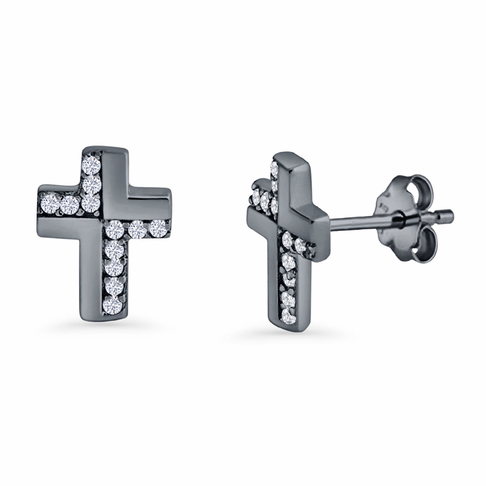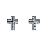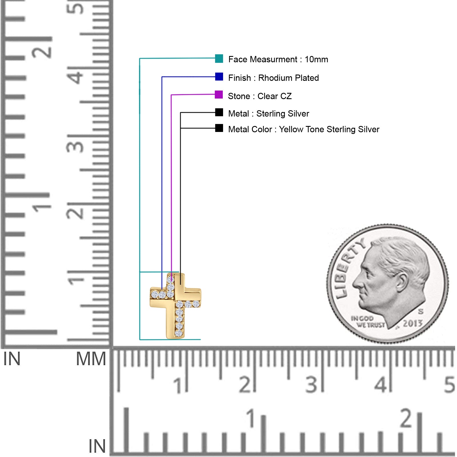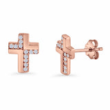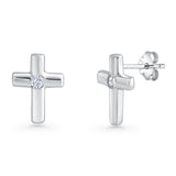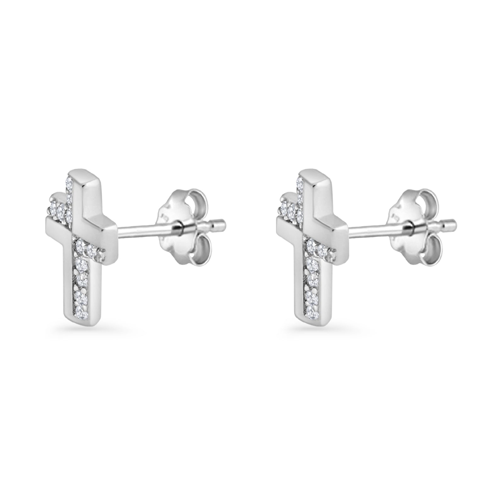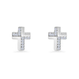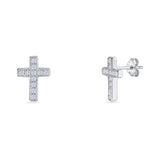 Minimalist 10mm Cross Stud Earrings Cubic Zirconia 925 Sterling Silver
