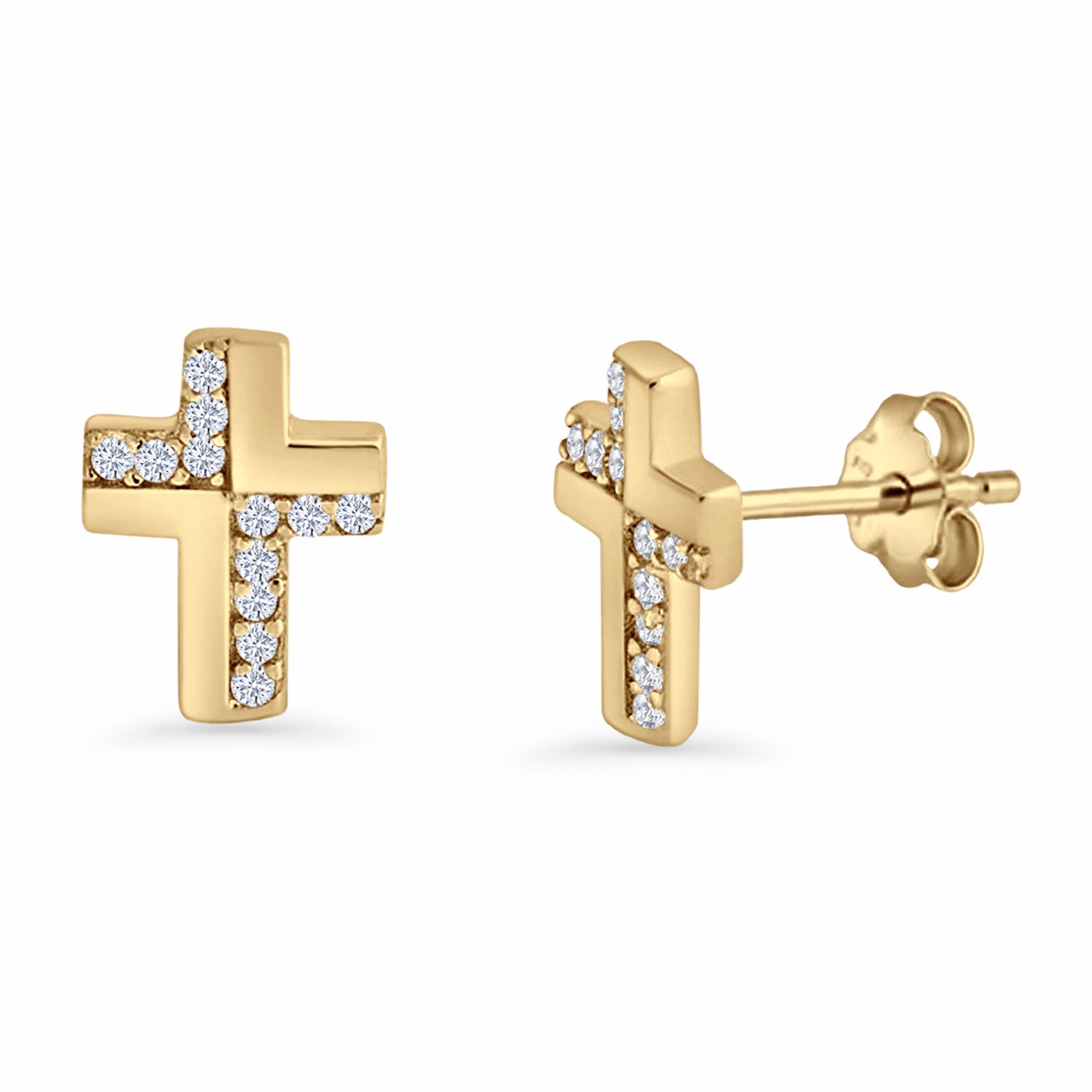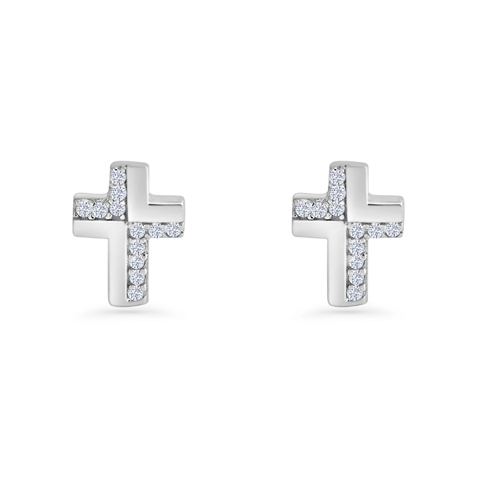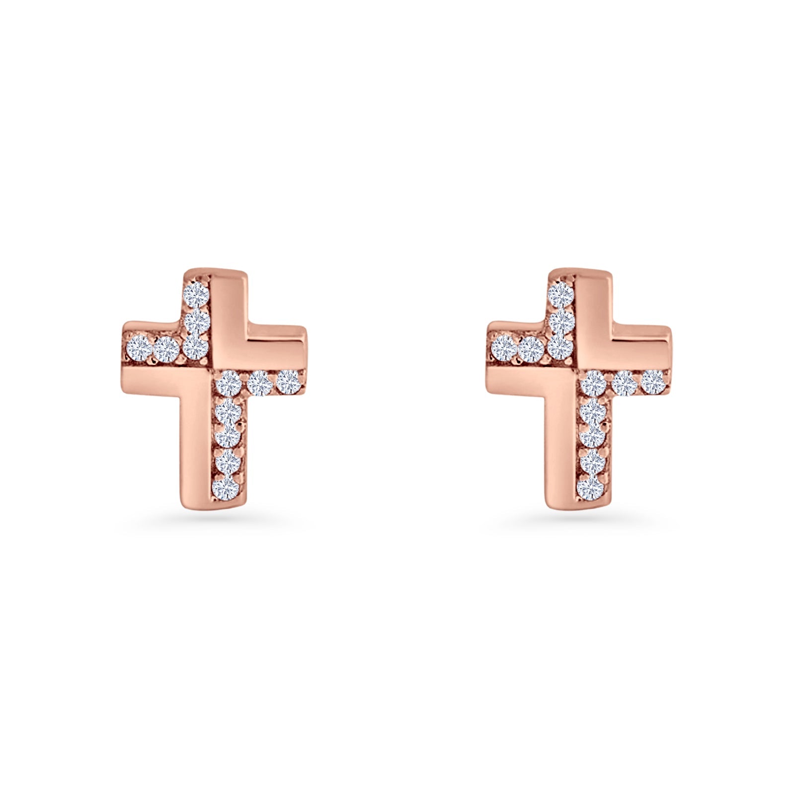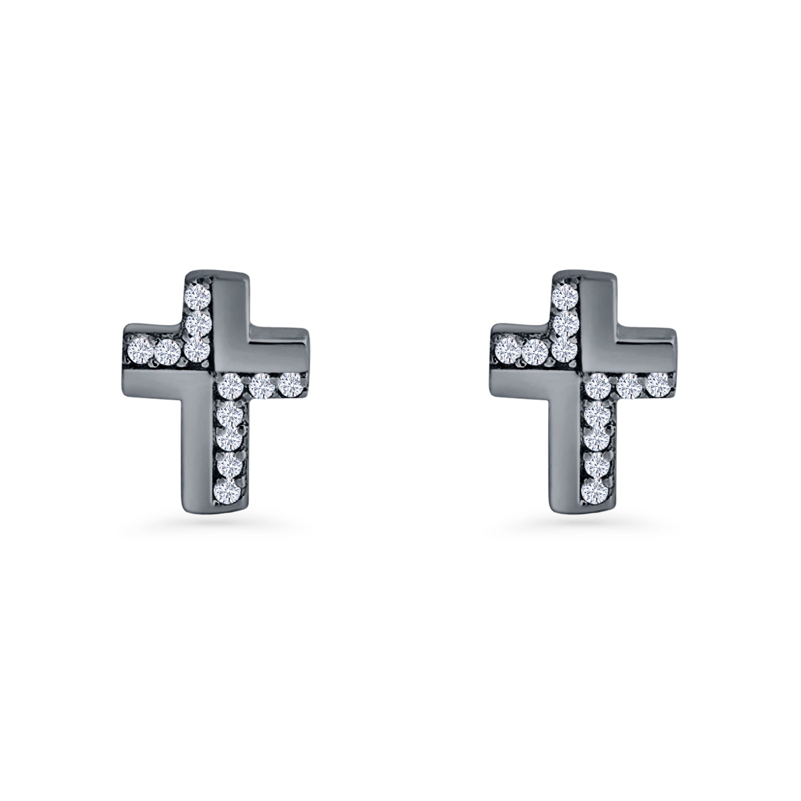 Minimalist 10mm Cross Stud Earrings Cubic Zirconia 925 Sterling Silver