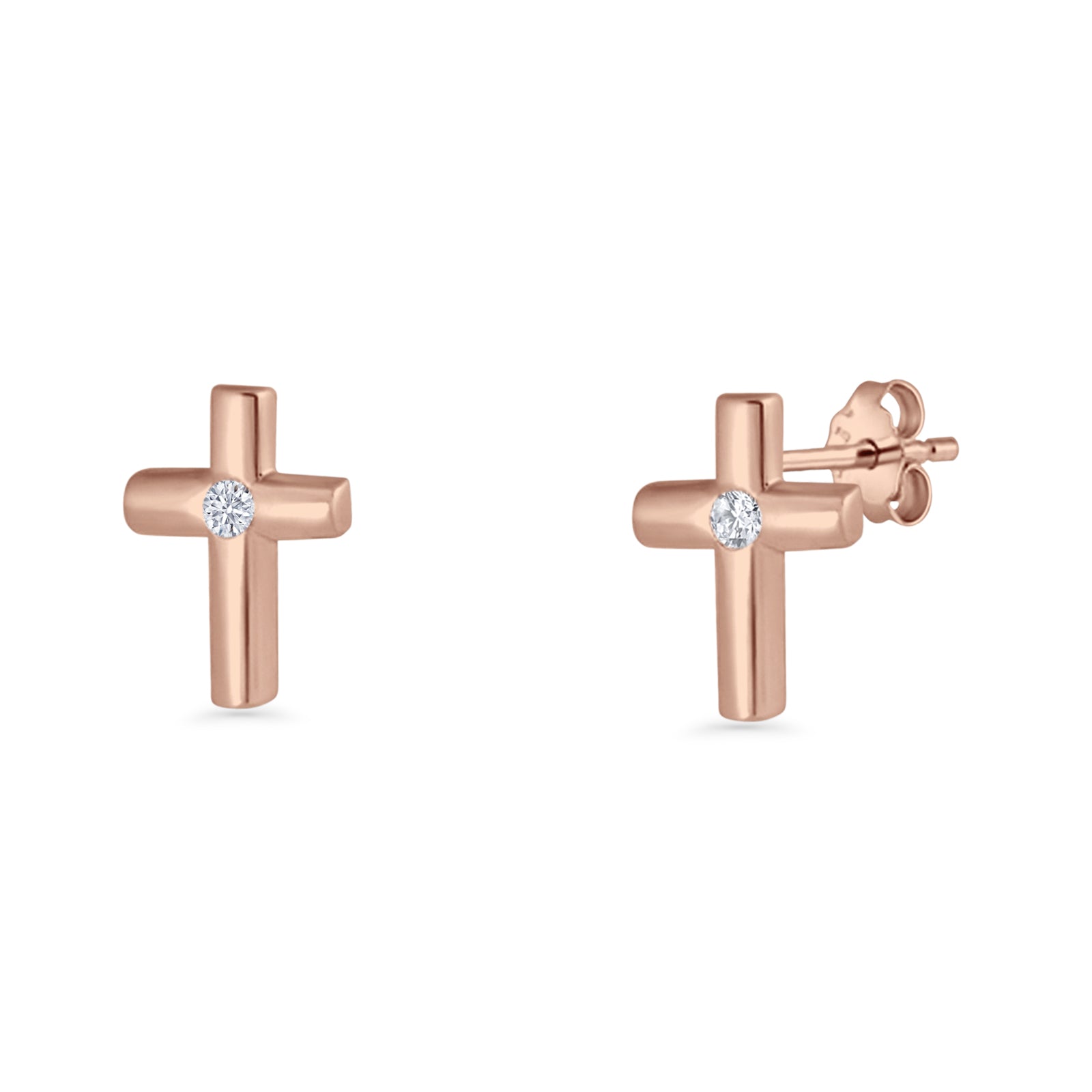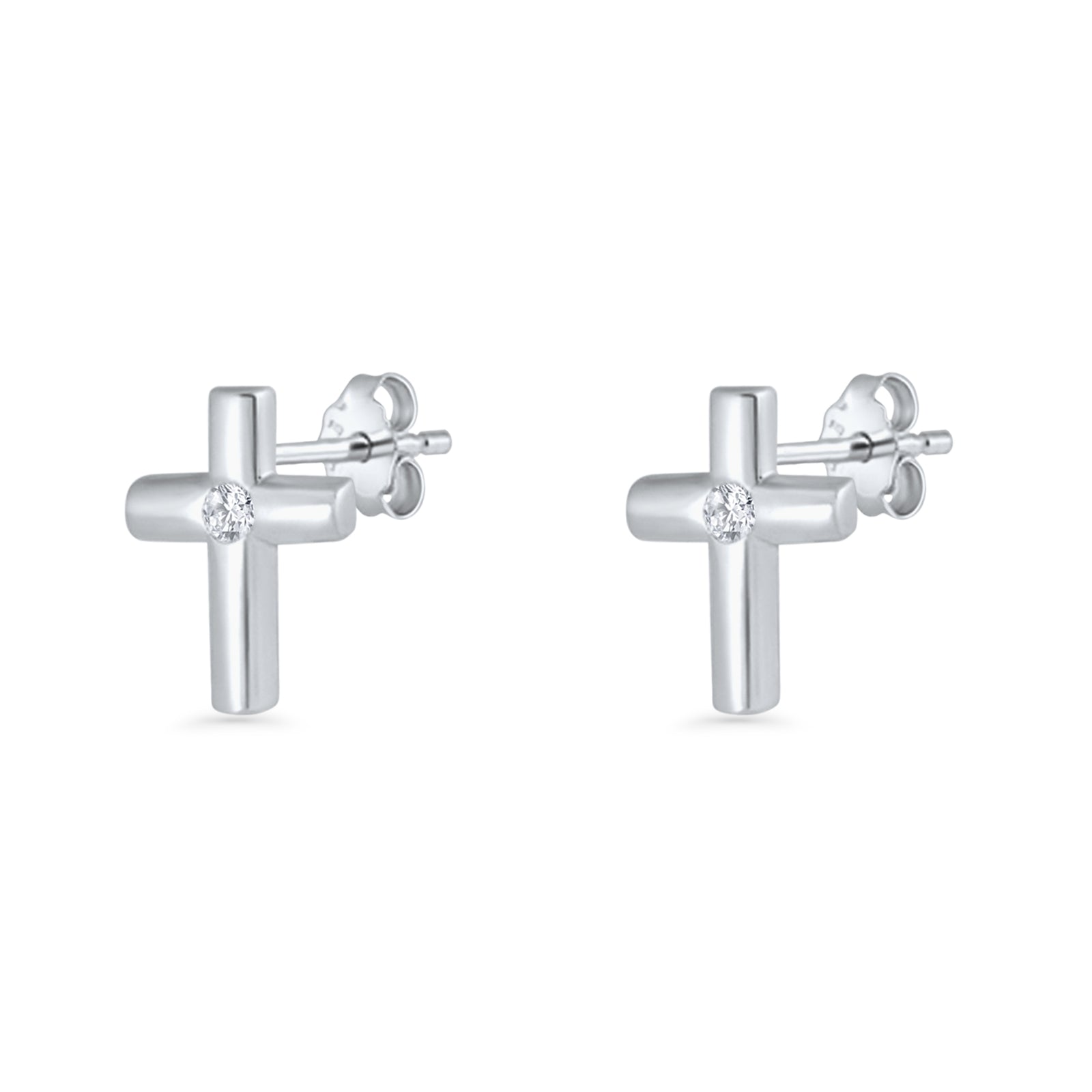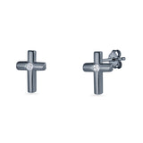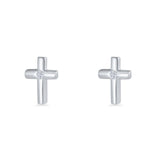 Minimalist 10mm Cross Stud Earrings Cubic Zirconia 925 Sterling Silver