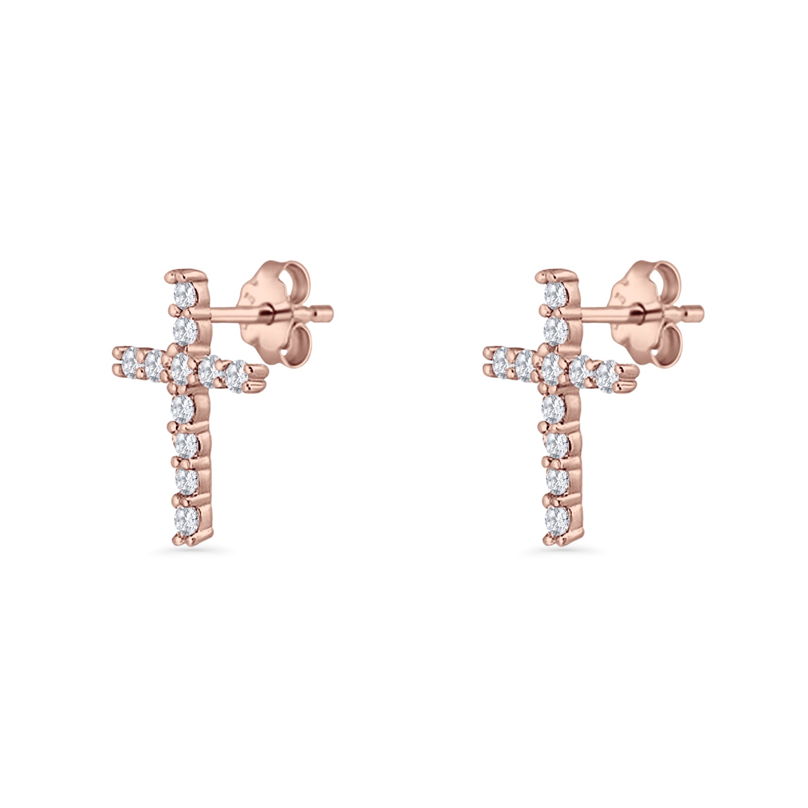 CZ & Blue Sapphire CZ Rose Tone Silver